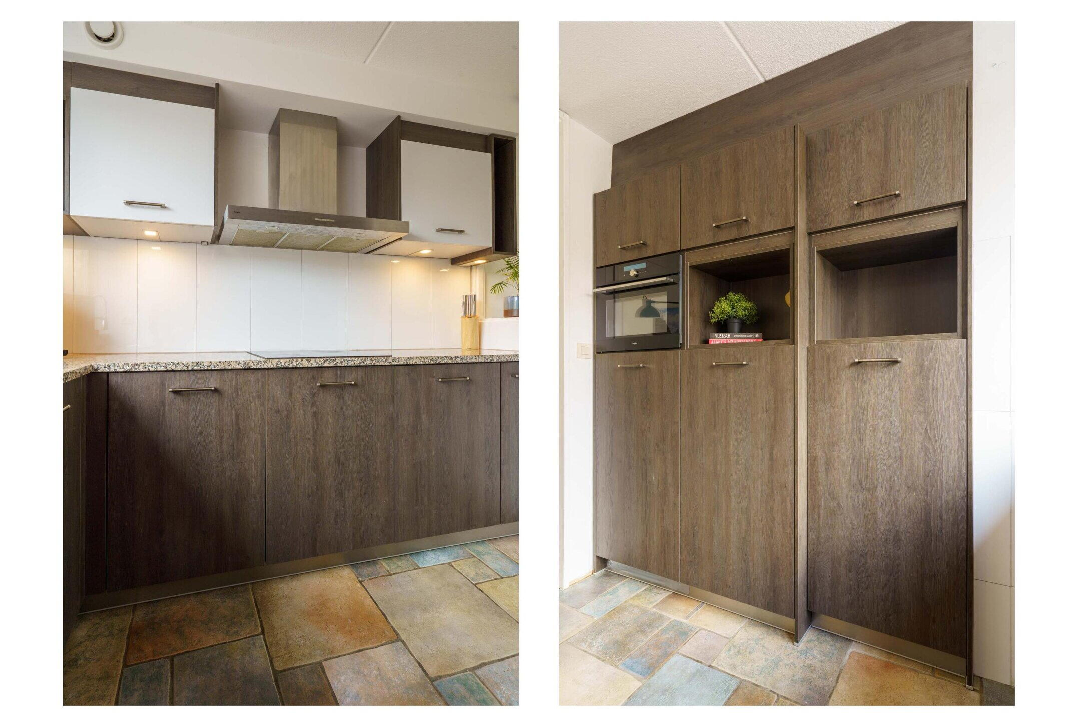 • Keuken aan de voorzijde met groot raam en inbouwkeuken in U-opstelling met veel bergruimte