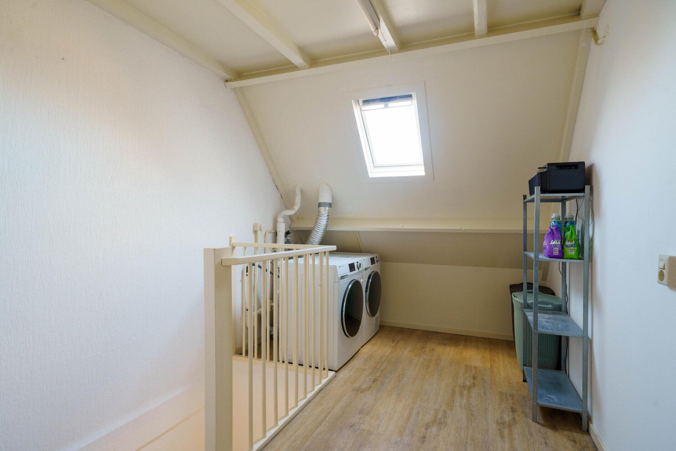 Ruime overloop met aansluitingen voor de wasmachine en een bergvliering. Vanuit de overloop heeft u tevens toegang tot de ruime vierde slaapkamer.