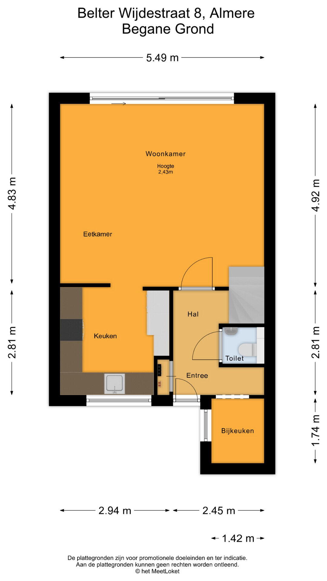 - 108 m² (19.7 meter diep en 5.5 meter breed)