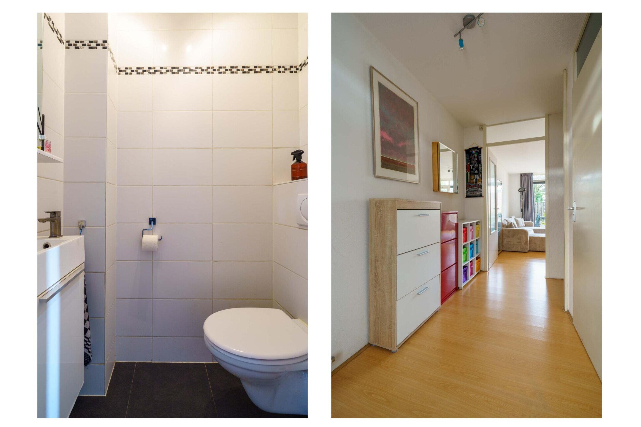 Via de entree bereikt u de ruime hal met meterkast, toilet en toegang tot de woonkamer.