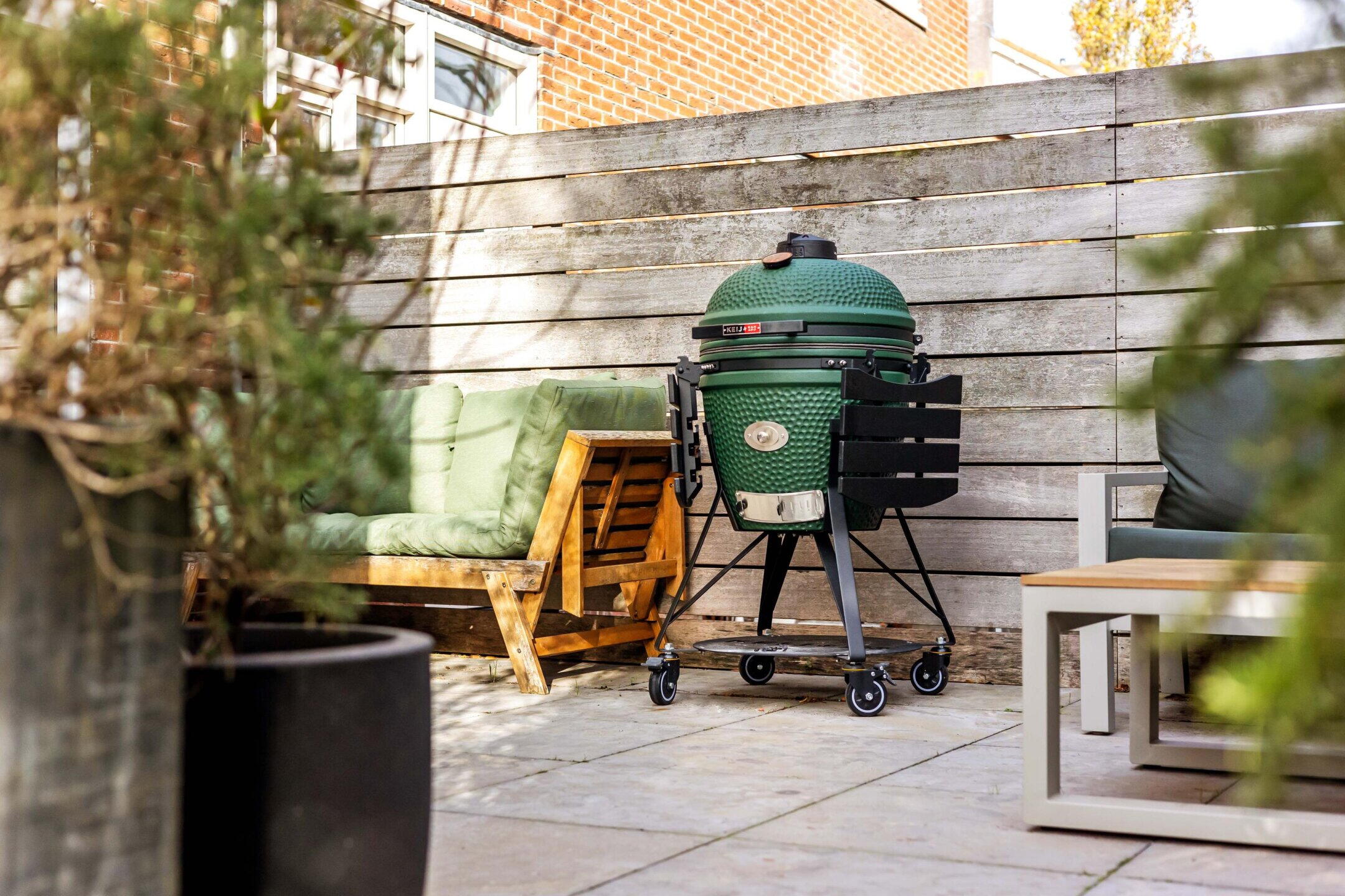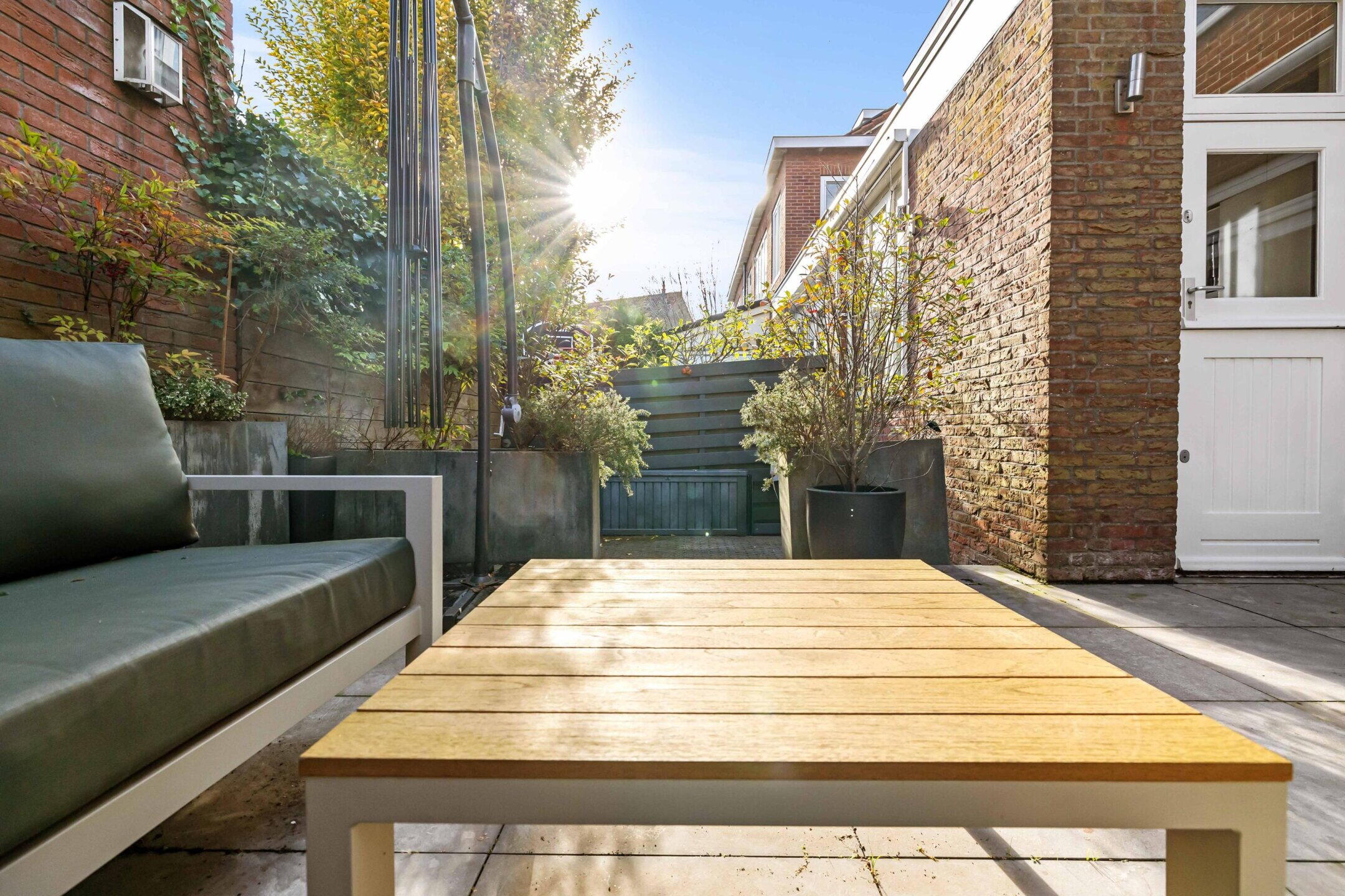 De onderhoudsvriendelijke en beschutte achtertuin ligt op het oosten en is vanuit de living via openslaande deuren bereikbaar. De tuin beschikt over een achterom met toegang tot de vrijstaande berging.