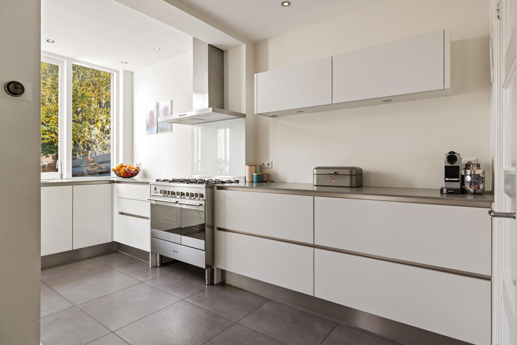 De sfeervolle living is door de royale erker aan de voorzijde zeer licht en ruim van opzet. Het zitgedeelte bevindt zich aan de voorzijde, met als sfeerbepalend element de open haard. De moderne keuken en het eetgedeelte zijn aan de achterzijde gesitueerd. De keuken is stijlvol uitgebouwd en biedt direct toegang tot de tuin. De keuken beschikt uiteraard over de nodige inbouwapparatuur en biedt voldoende bergruimte.