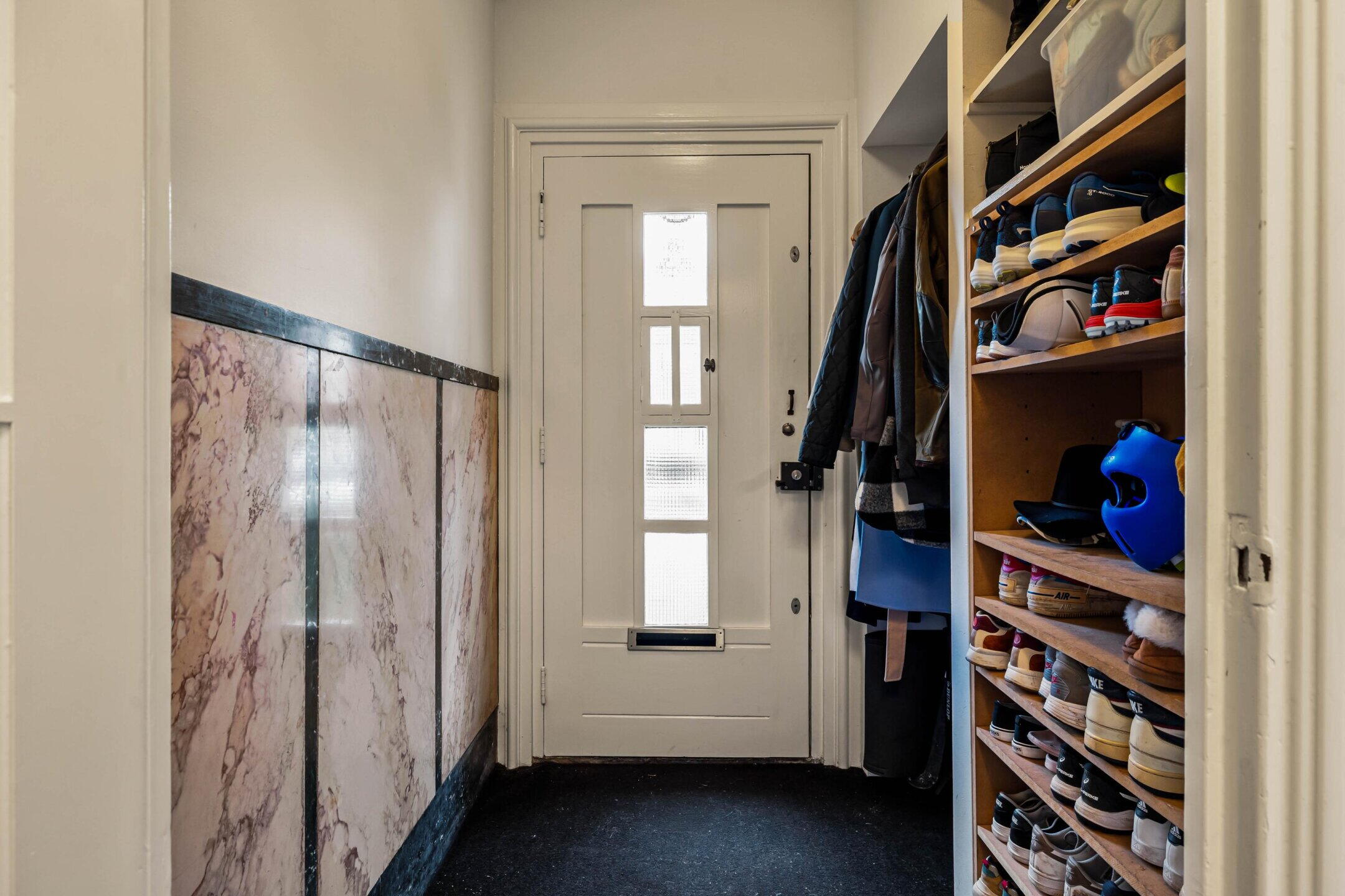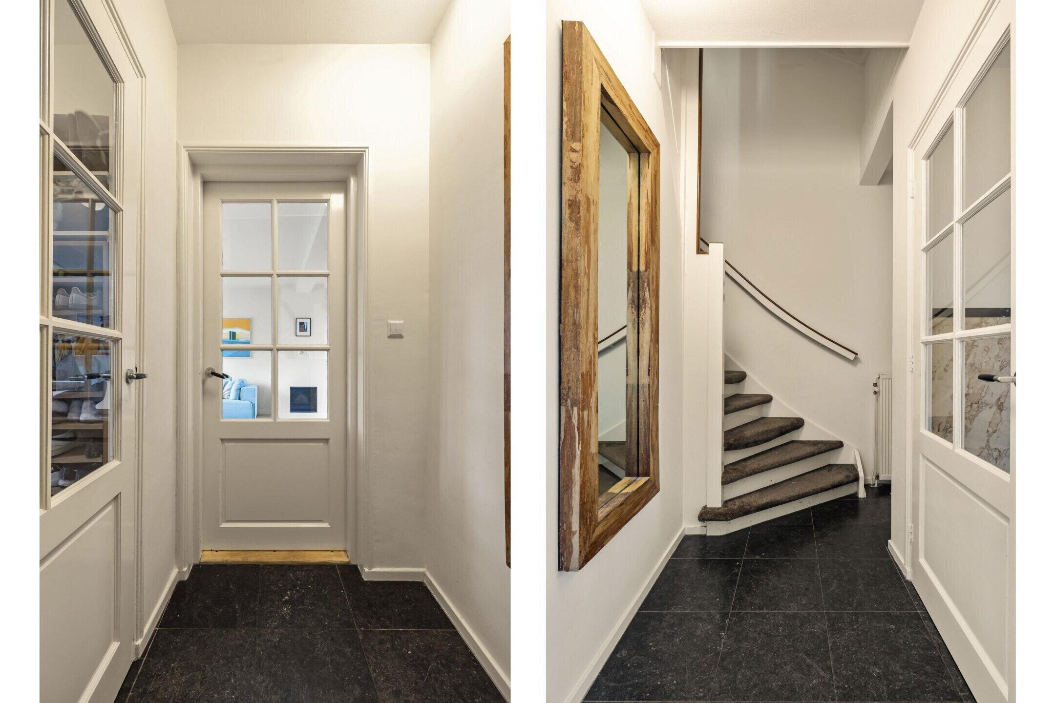 You reach the entrance via the sunny front garden. Upon entering the draft vestibule (tochtportaal), the original tiling immediately catches the eye. The hall offers handy storage space and access to the toilet and the staircase to the upper floors.