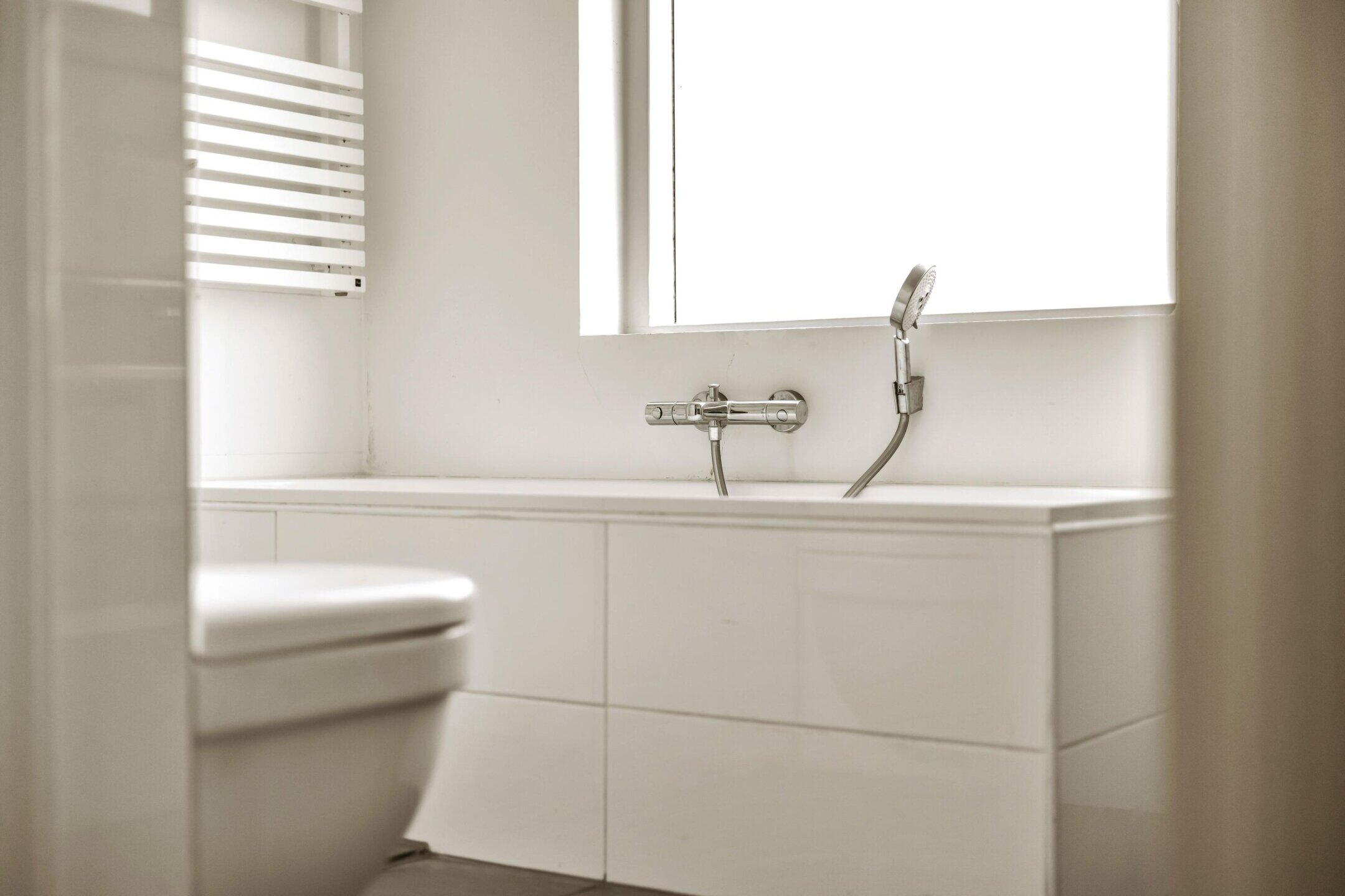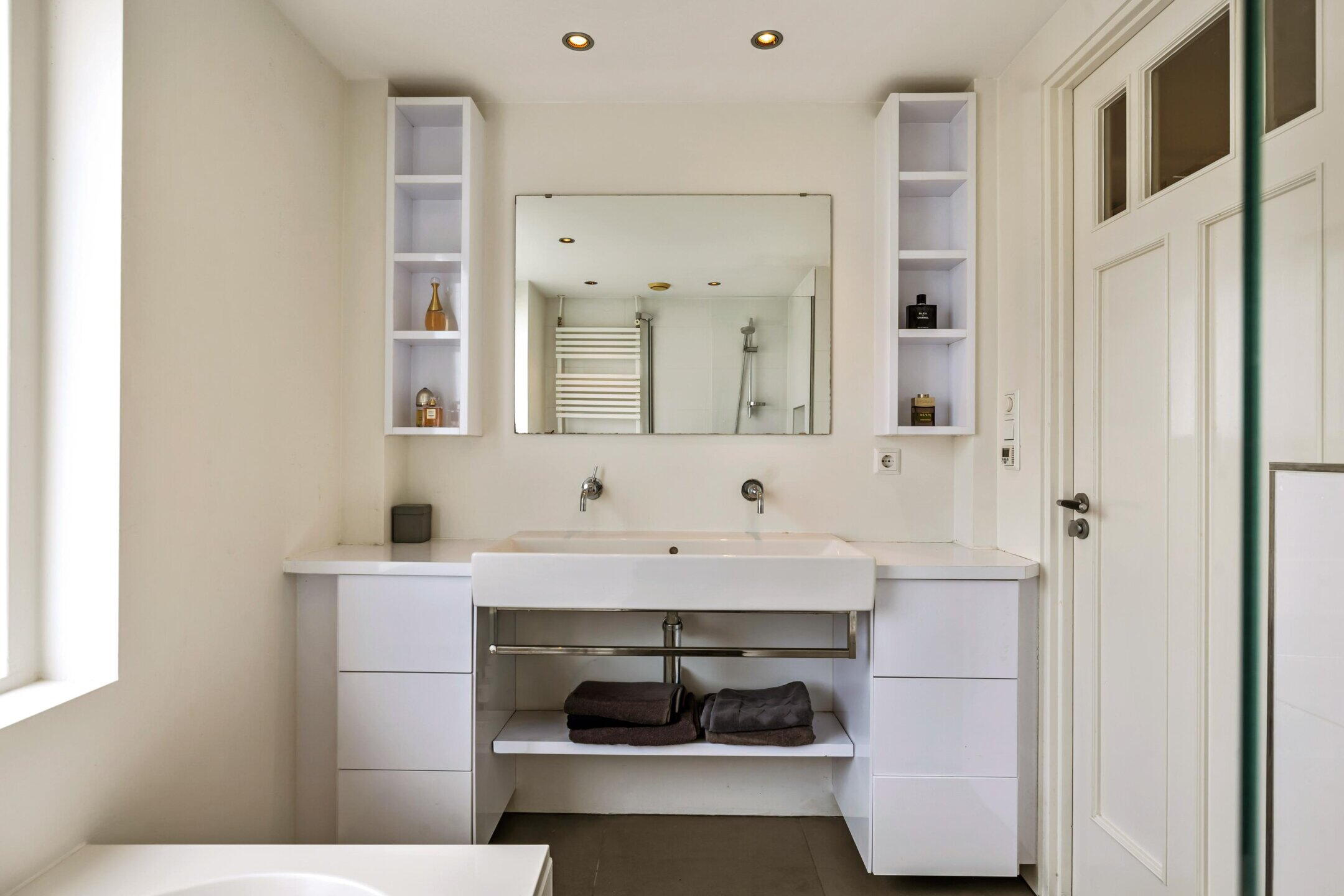 - Ligbad, toilet, douche, dubbele wastafel, wastafelmeubel toilet, wastafel, wastafelmeubel