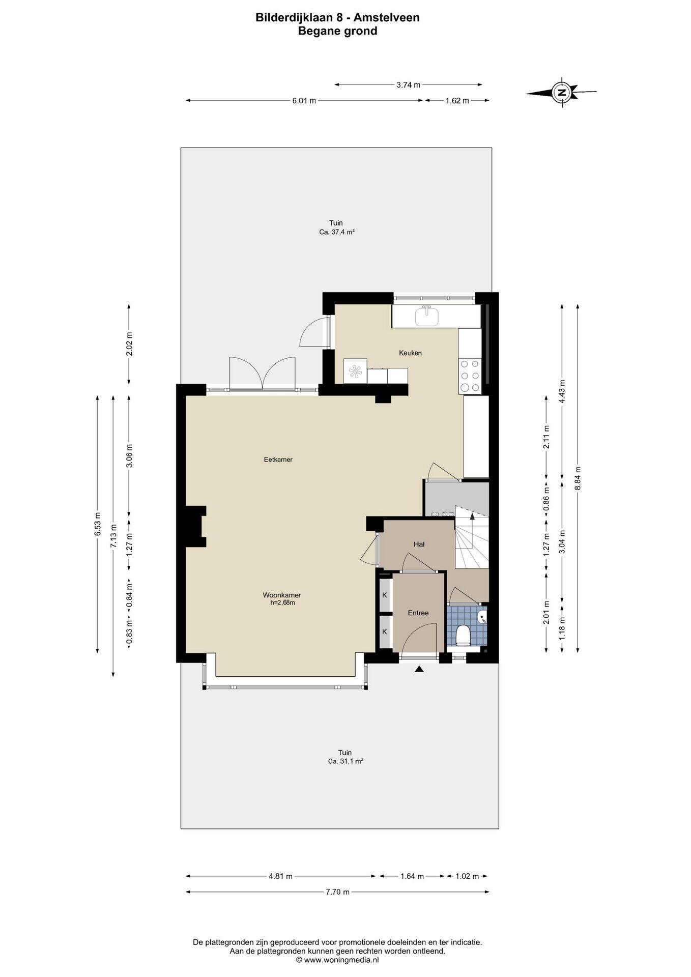 De woning is gemeten door een betrouwbaar professioneel bedrijf en koper vrijwaart de medewerkers van Voorma & Millenaar makelaars o.g. en de verkoper voor eventuele afwijkingen in de opgegeven maten. Koper verklaart in de gelegenheid te zijn gesteld om de het verkochte zelf te (laten) meten conform NEN 2580.