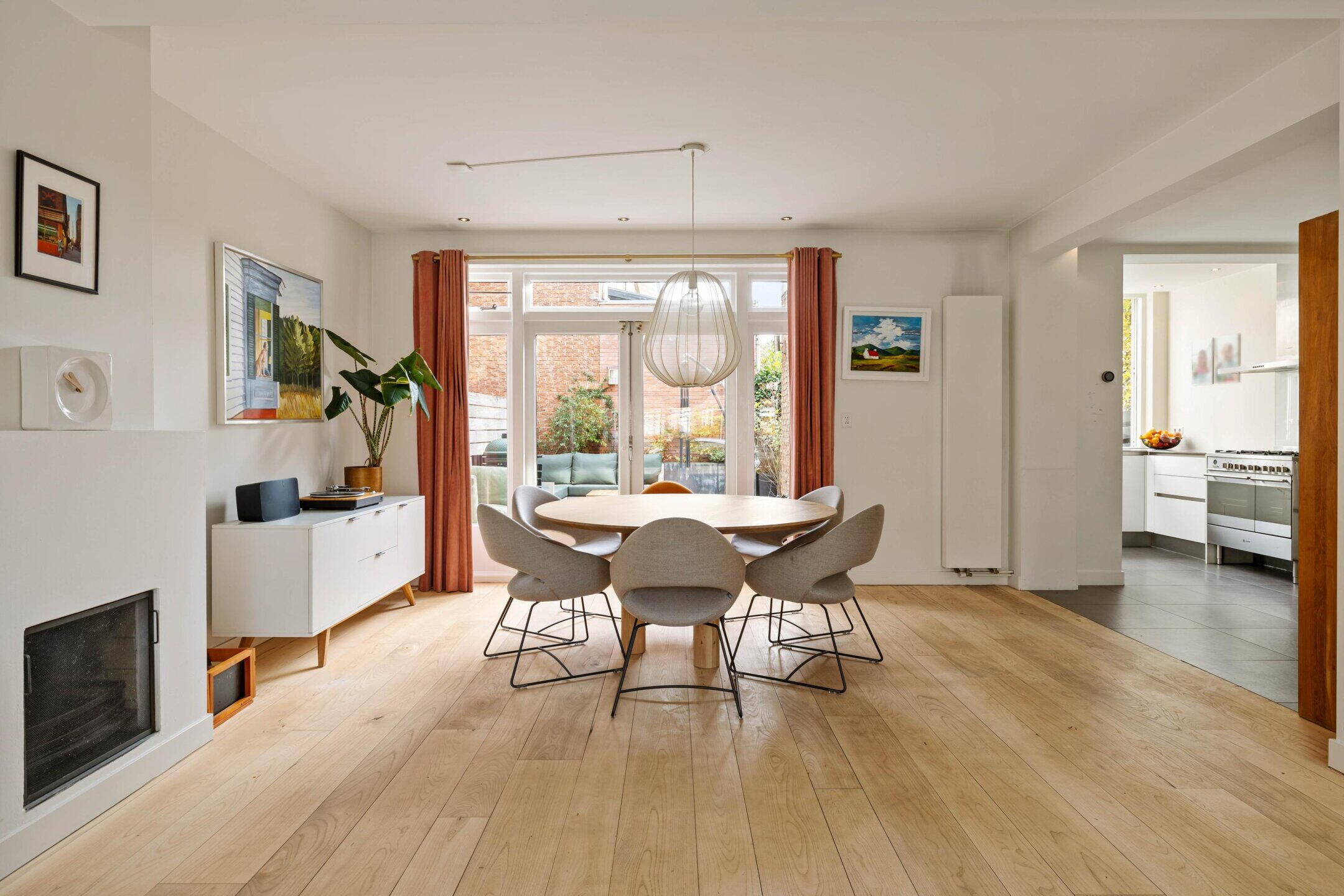 This spacious terraced house, measuring approximately 147 m², is an ideal family home with five full-sized bedrooms and two bathrooms. The house has been tastefully modernized in recent years, while the authentic features and the warm atmosphere of the 1930s style have been carefully preserved.