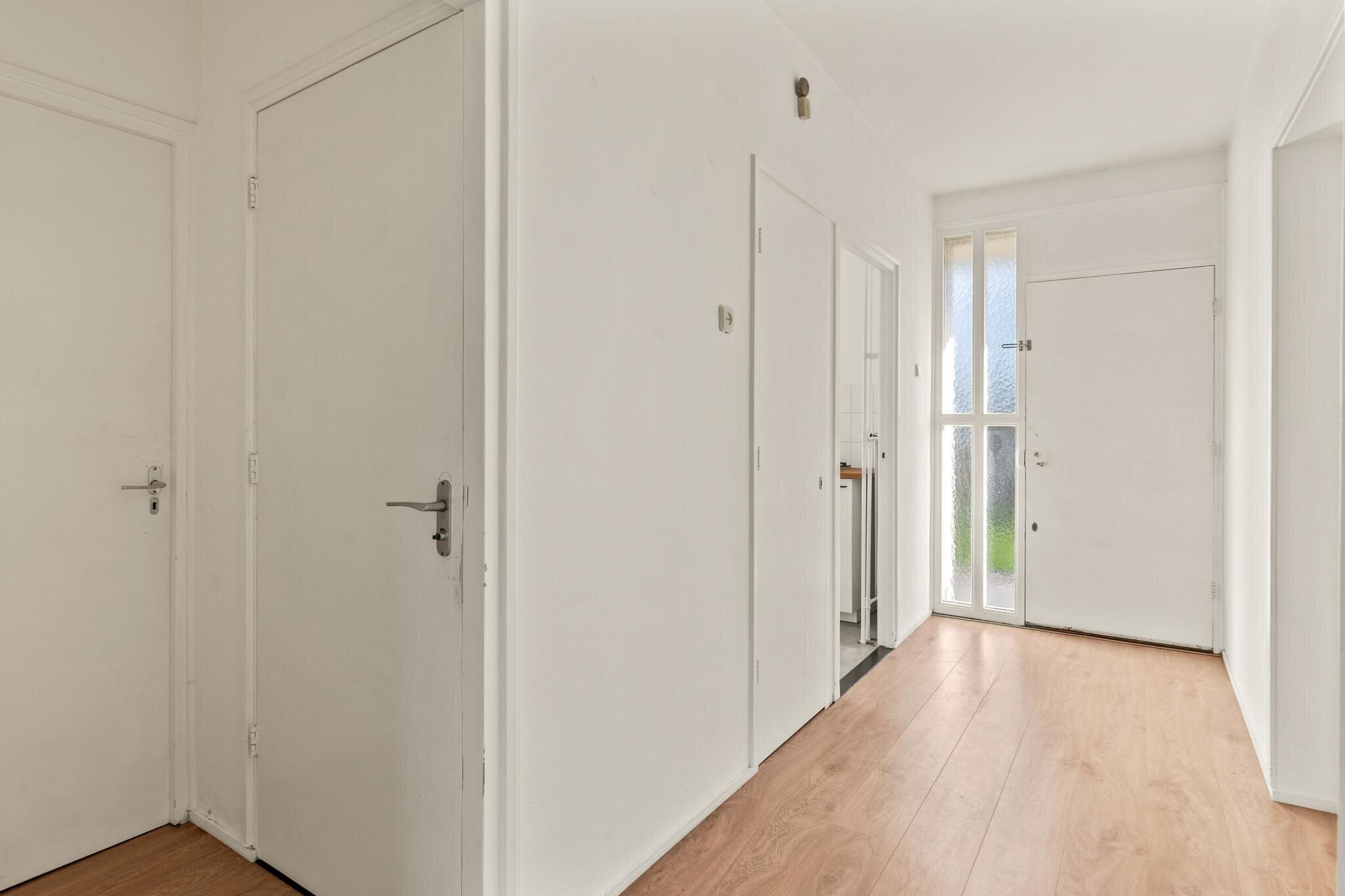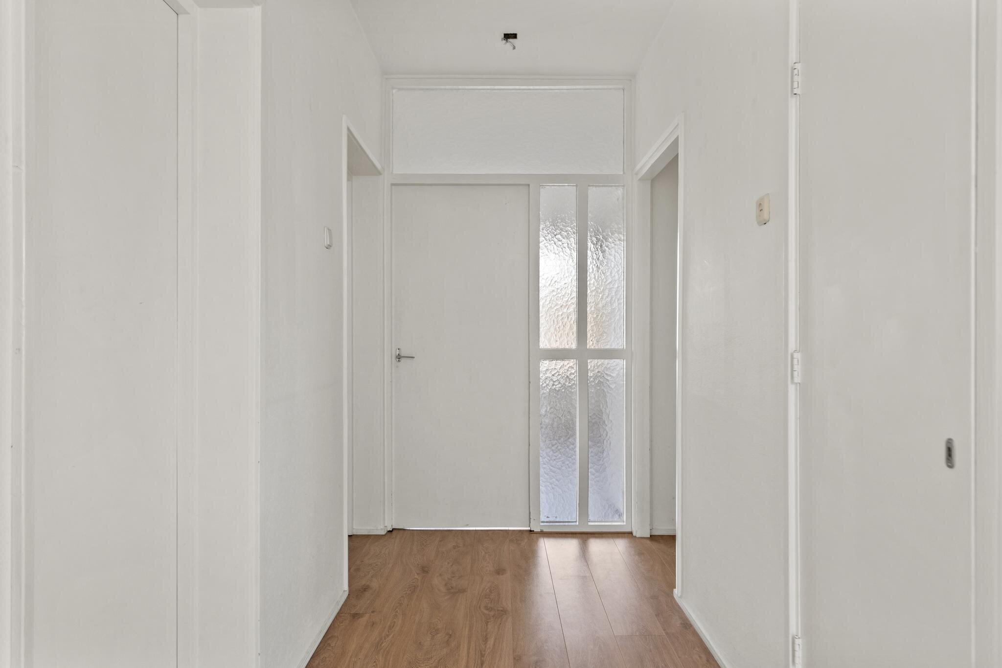 Through the entrance, you reach the apartment, which is located on the second floor. The spacious entrance provides access to all rooms. At the rear of the apartment is the cozy, bright living room with a built-in closet. The dining room (former bedroom) provides access to the lovely balcony. The balcony faces west, where you can enjoy the sun until late in the evening. The separate kitchen is located on the gallery side.