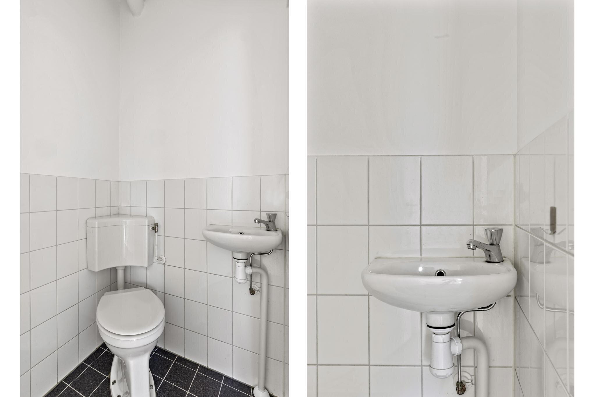 Het toilet is separaat via de hal bereikbaar.