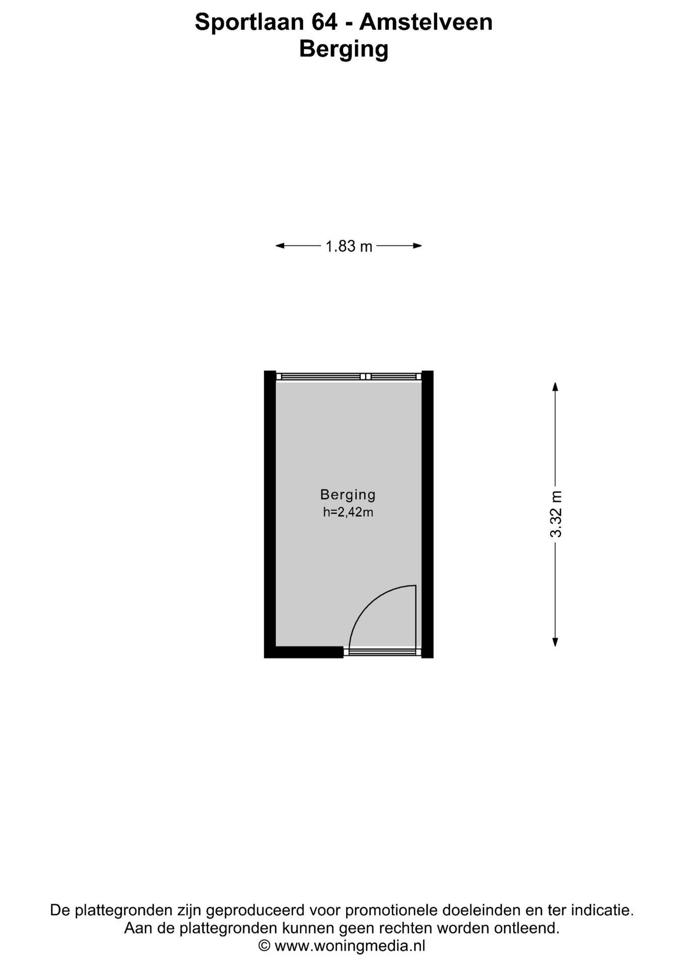 Het verkochte is gemeten met gebruikmaking van de Meetinstructie, welke is gebaseerd op de normen zoals vastgelegd in NEN 2580. De Meetinstructie is bedoeld om een meer eenduidige manier van meten toe te passen voor het geven van een indicatie van de gebruiksoppervlakte. De Meetinstructie sluit verschillen in meetuitkomsten niet volledig uit door bijvoorbeeld interpretatieverschillen, afrondingen en beperkingen bij het uitvoeren van een meting.