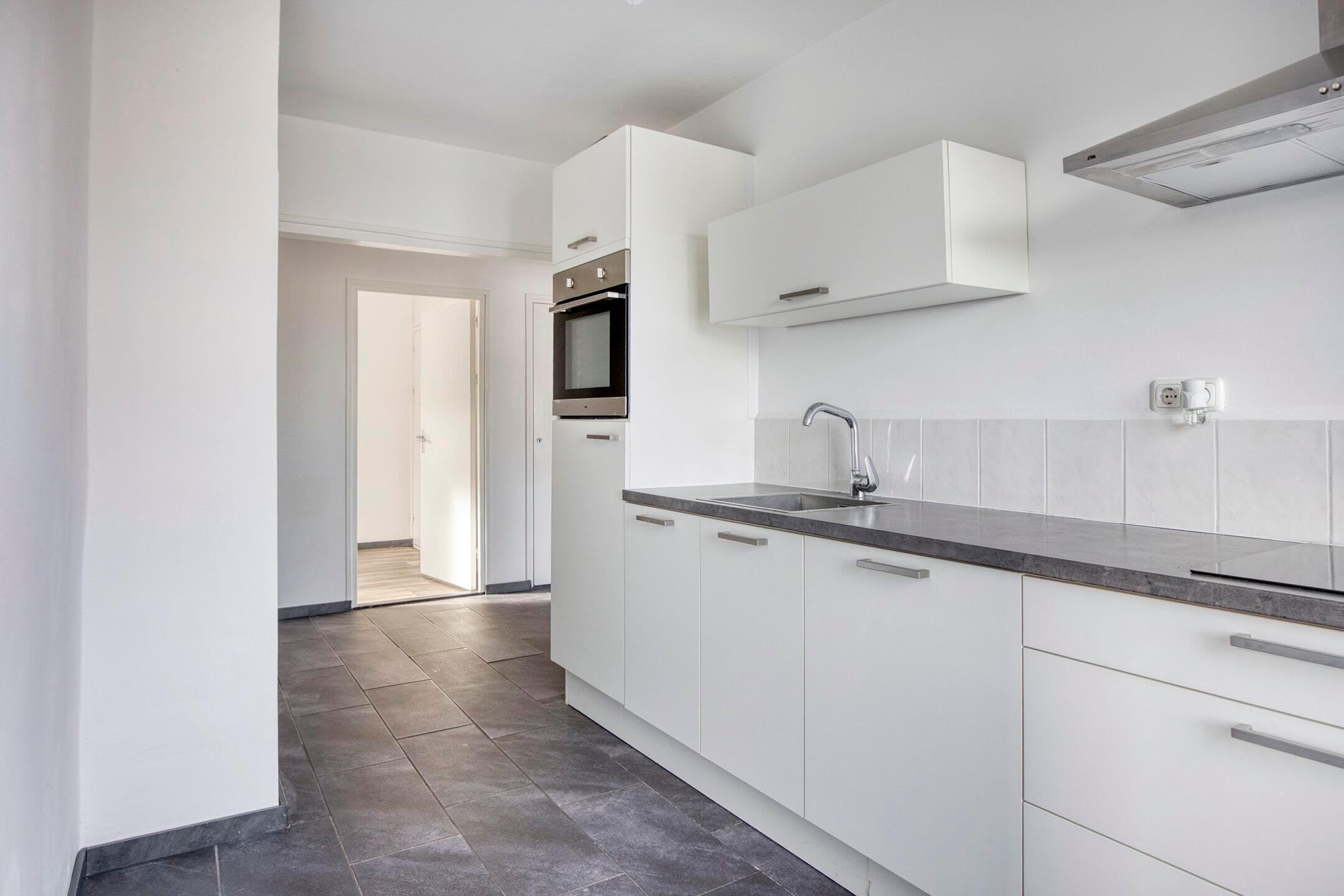De separate moderne keuken is voorzien van inbouwapparatuur zoals een inductiekookplaat, afzuigkap, oven en koelkast. Ook vanuit de keuken bereikt u het balkon. Aansluitend is er een praktische bijkeuken met witgoedaansluitingen en extra bergruimte.