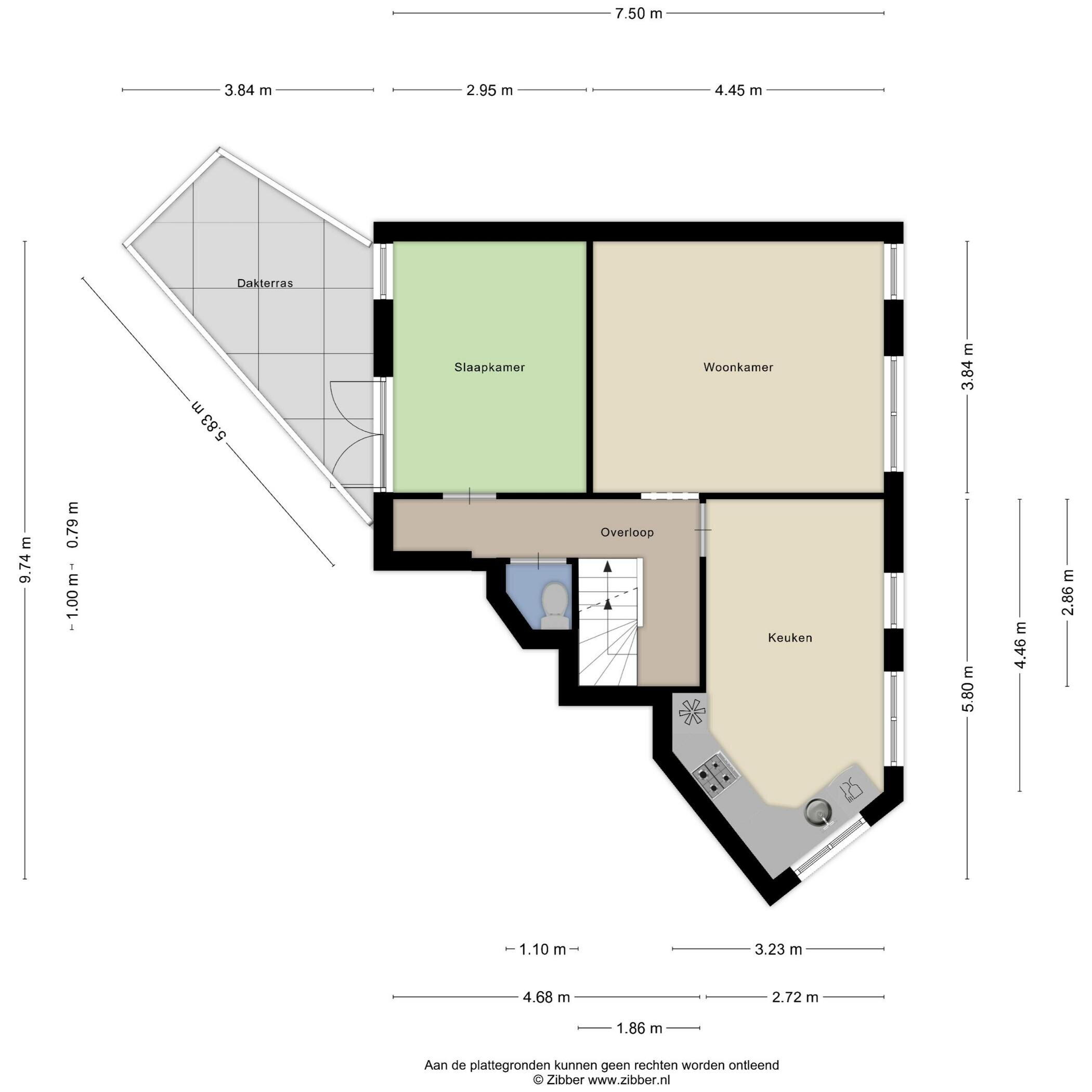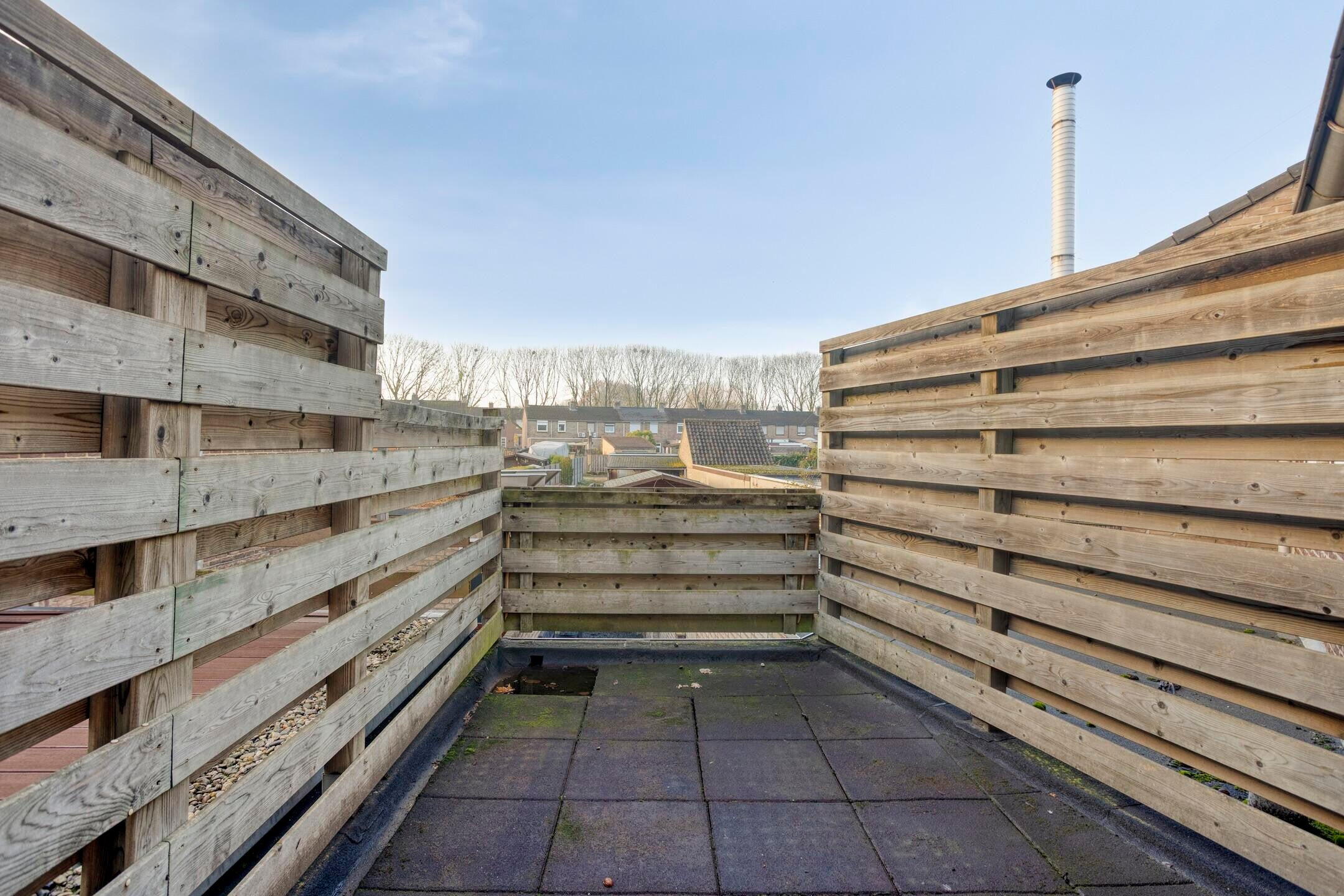 De slaapkamer op deze verdieping is voorzien van dubbele deuren die openen naar het dakterras, waar je op zonnige dagen volop kunt genieten van de buitenlucht. Het toilet bevindt zich eveneens op deze woonlaag.