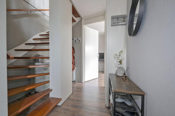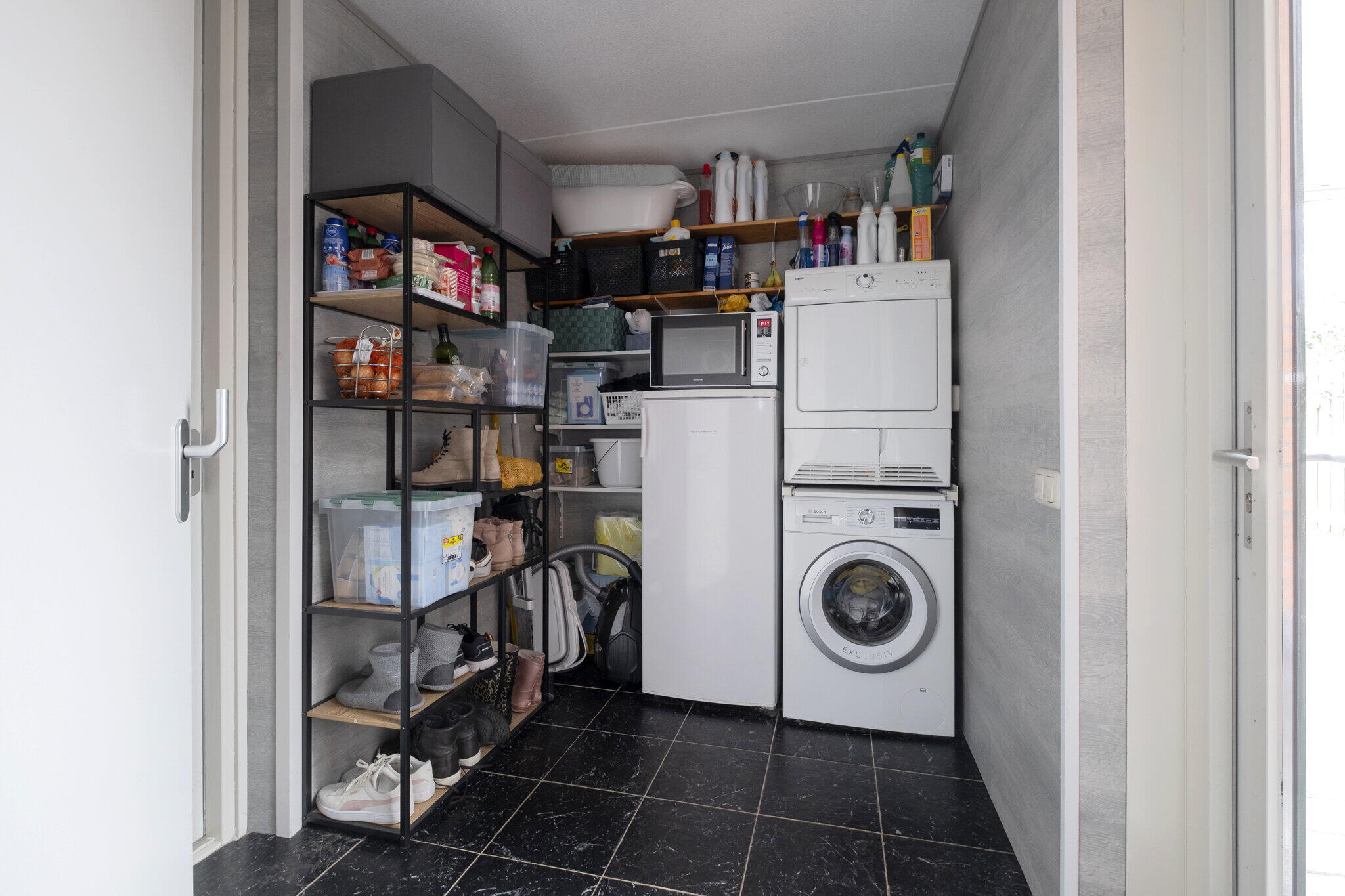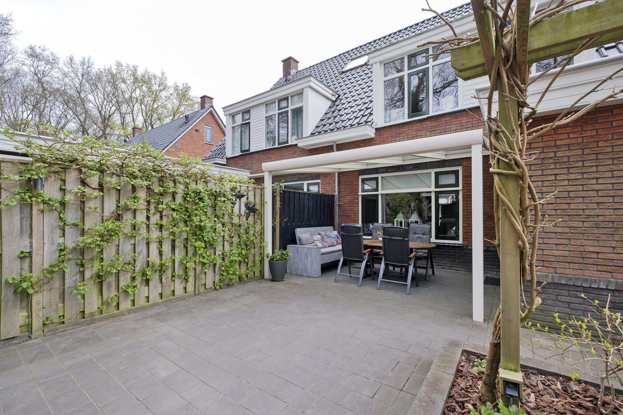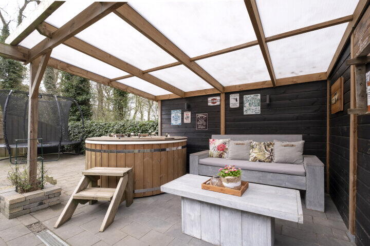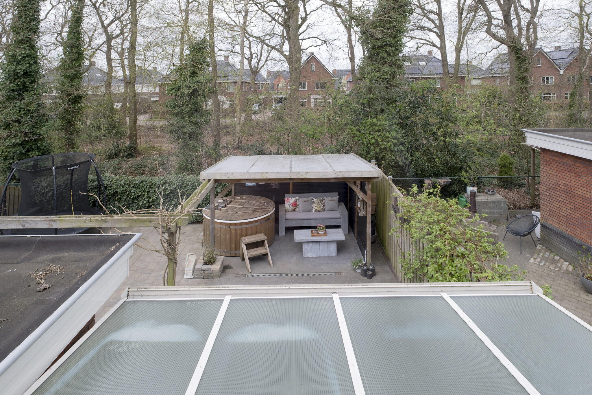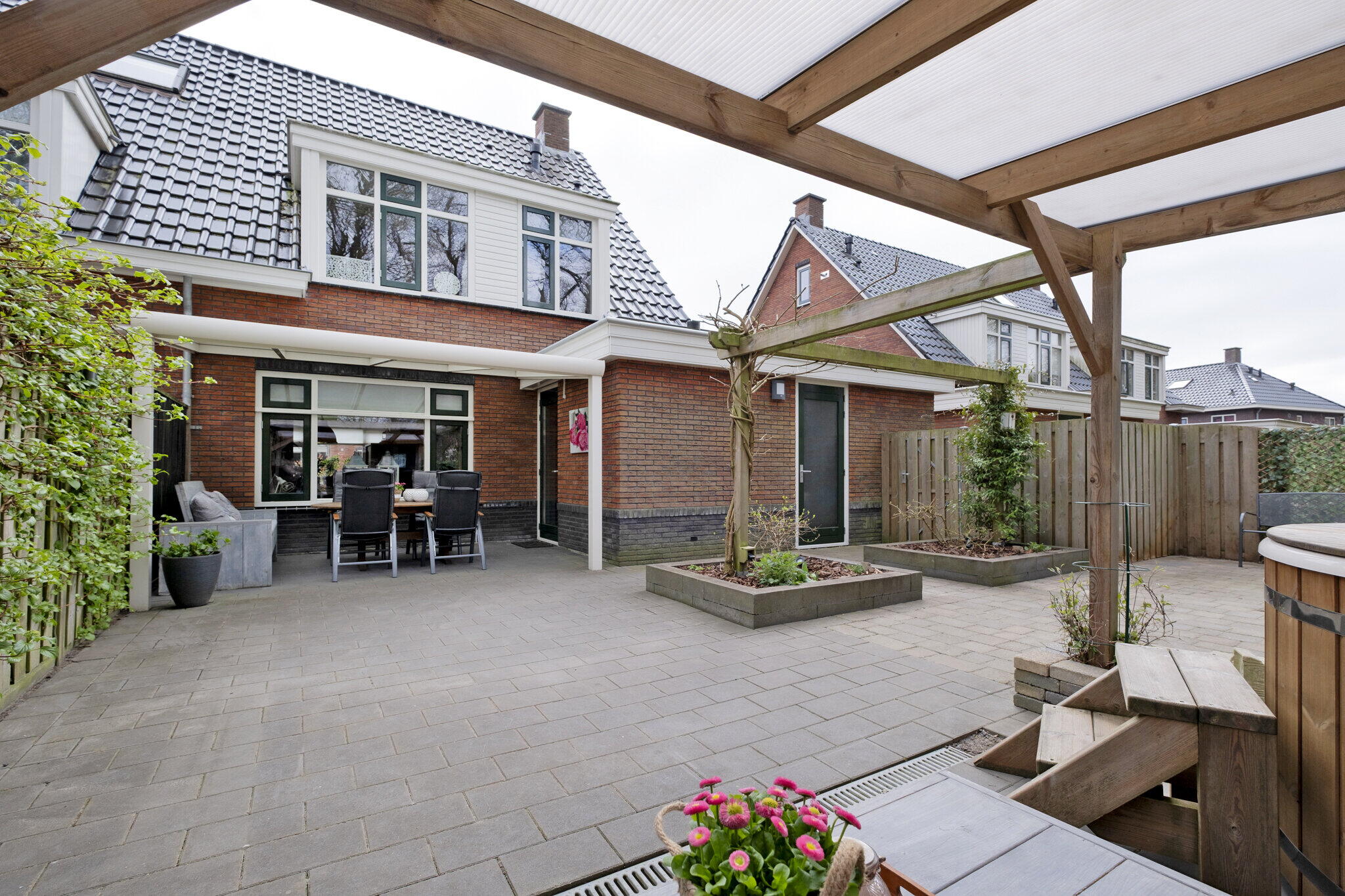 De achtertuin is onderhoudsvriendelijk aangelegd, biedt voldoende privacy en is gericht op het westen. Aangebouwd aan het huis is een overkapping (ca. 14m²), wat zorgt voor een beschut terras om heerlijk te zitten. Achterin de tuin is een houten overkapping met terras gerealiseerd.
