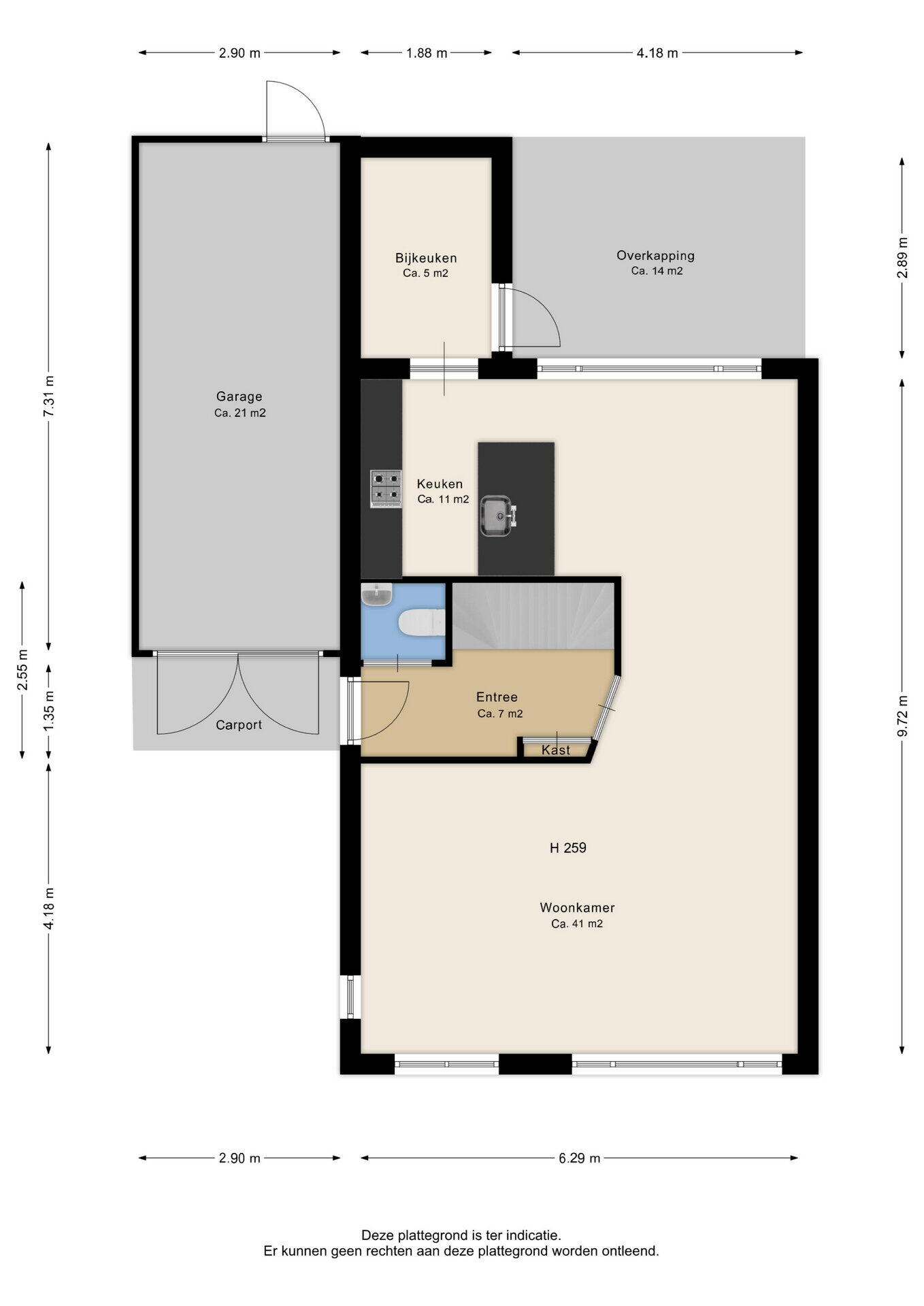 - 79 m² (10.5 meter diep en 7.5 meter breed)