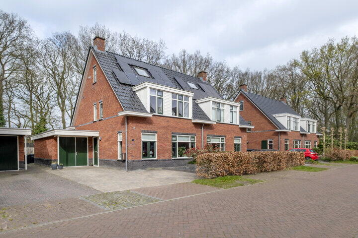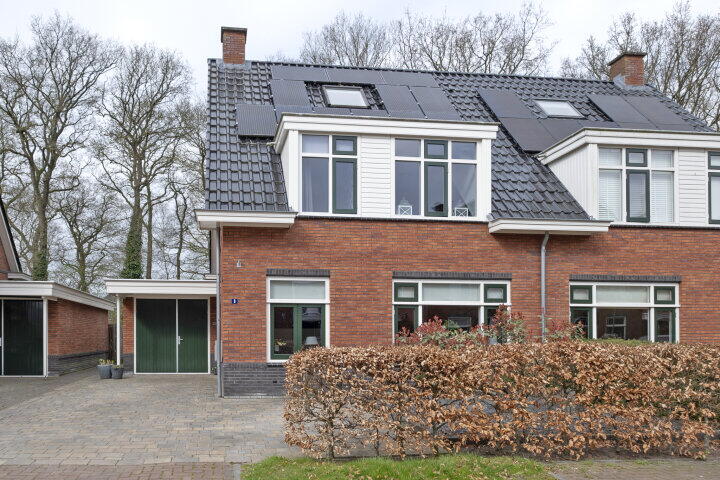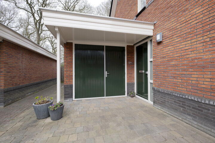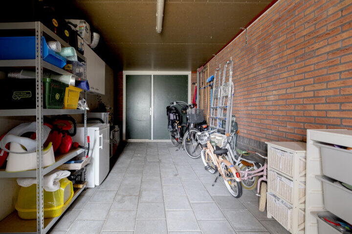 De aangebouwde stenen garage (ca. 21m²) heeft openslaande deuren en is aan de voorzijde voorzien van een carport. De oprit van de woning biedt de mogelijkheid om meerdere auto’s op eigen terrein te parkeren.