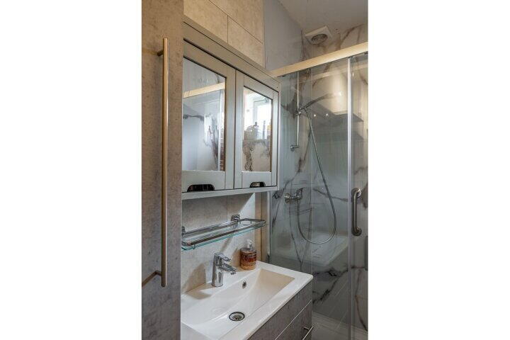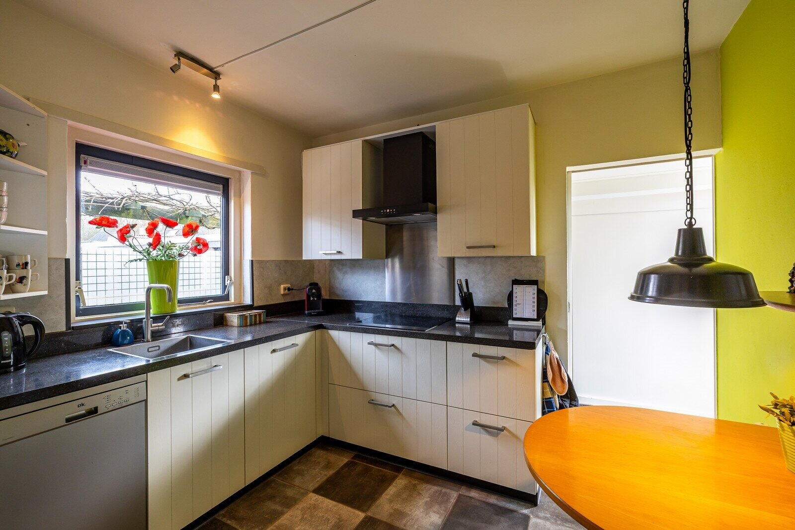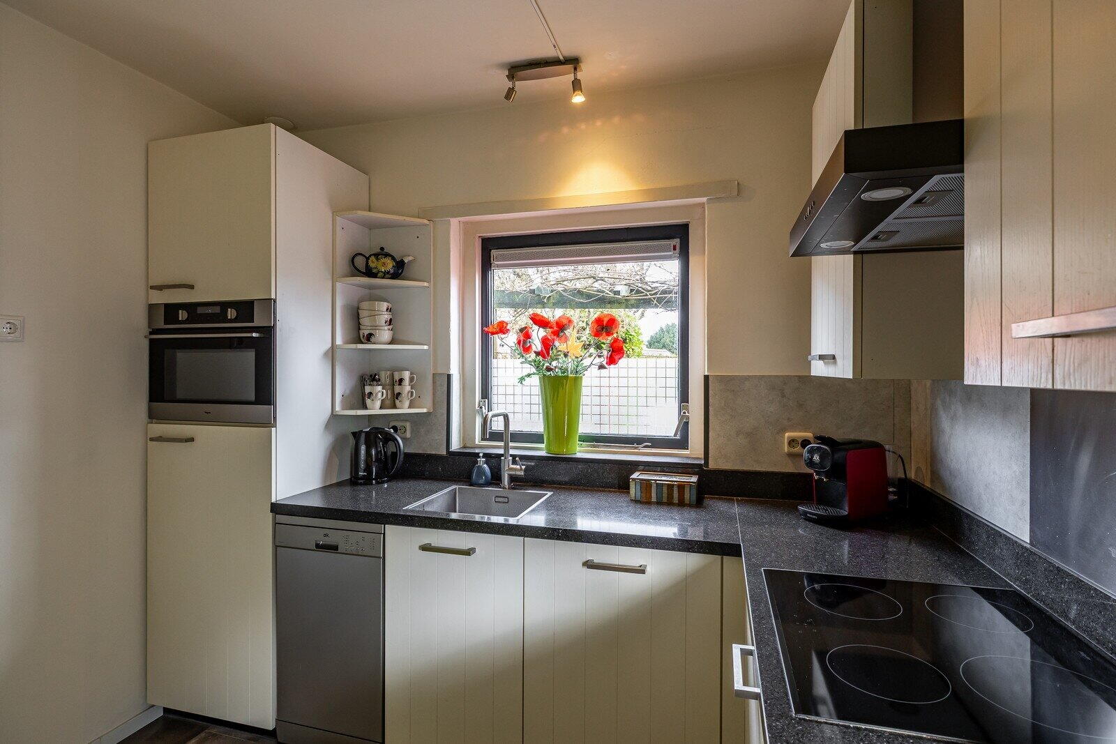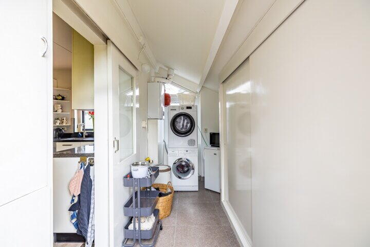 U kunt naast de woning op eigen terrein of in de garage parkeren. Entree, hal met toegang naar woonkeuken (voorzien van apparatuur waarnaast een bijkeuken met bergruimte en toegang naar de achtertuin (zuid). Verder is beneden een lichte, ruime woonkamer voorzien van (warmen/koelen), een slaapkamer, toilet en badkamer met douche en wastafel.