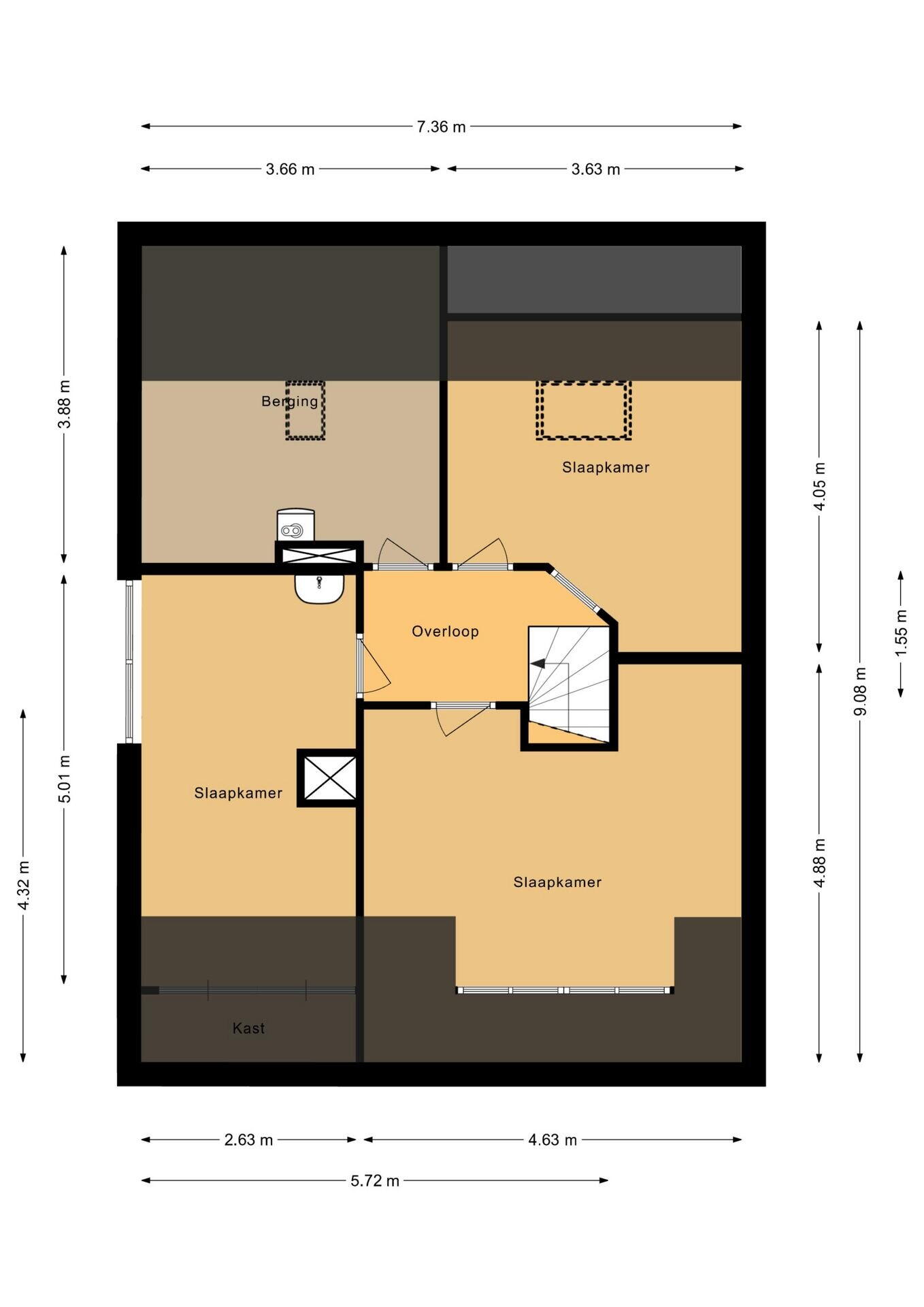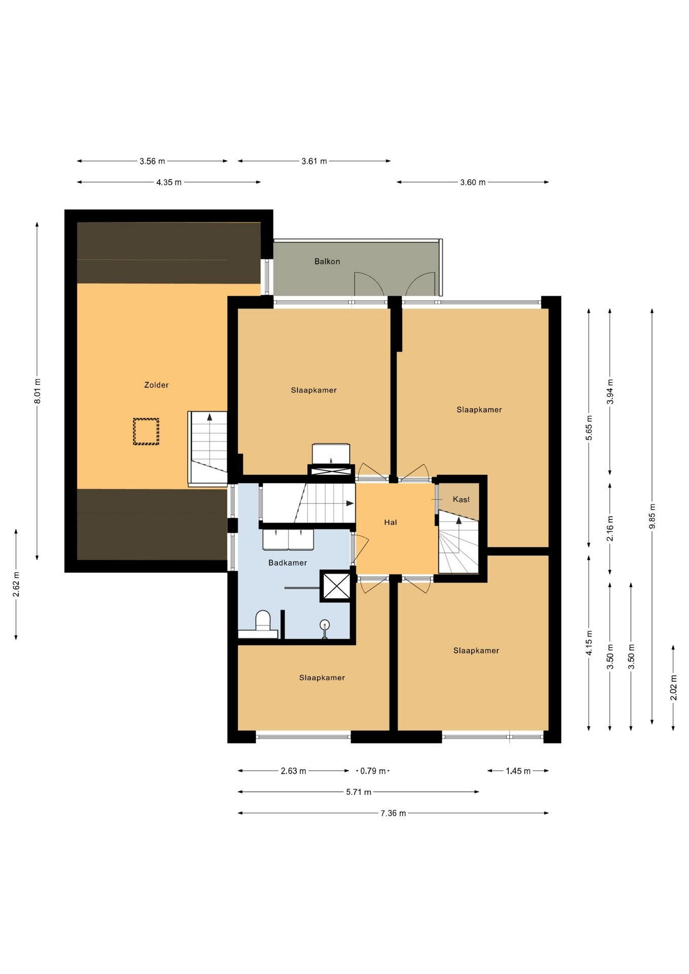 De tweede verdieping biedt nog eens drie slaapkamers en een aparte bergruimte met de cv-installatie. Dankzij de kunststof dakkapel uit 2022 (nog af te werken), drie dakramen en een groot zijraam zijn de kamers licht en praktisch in te delen. Deze verdieping is afgewerkt met een laminaatvloer en radiatoren. Verder is er nog een extra bergruimte op de vliering die met een vlizotrap bereikbaar is. In totaal beschikt de woning dus over zeven slaapkamers.