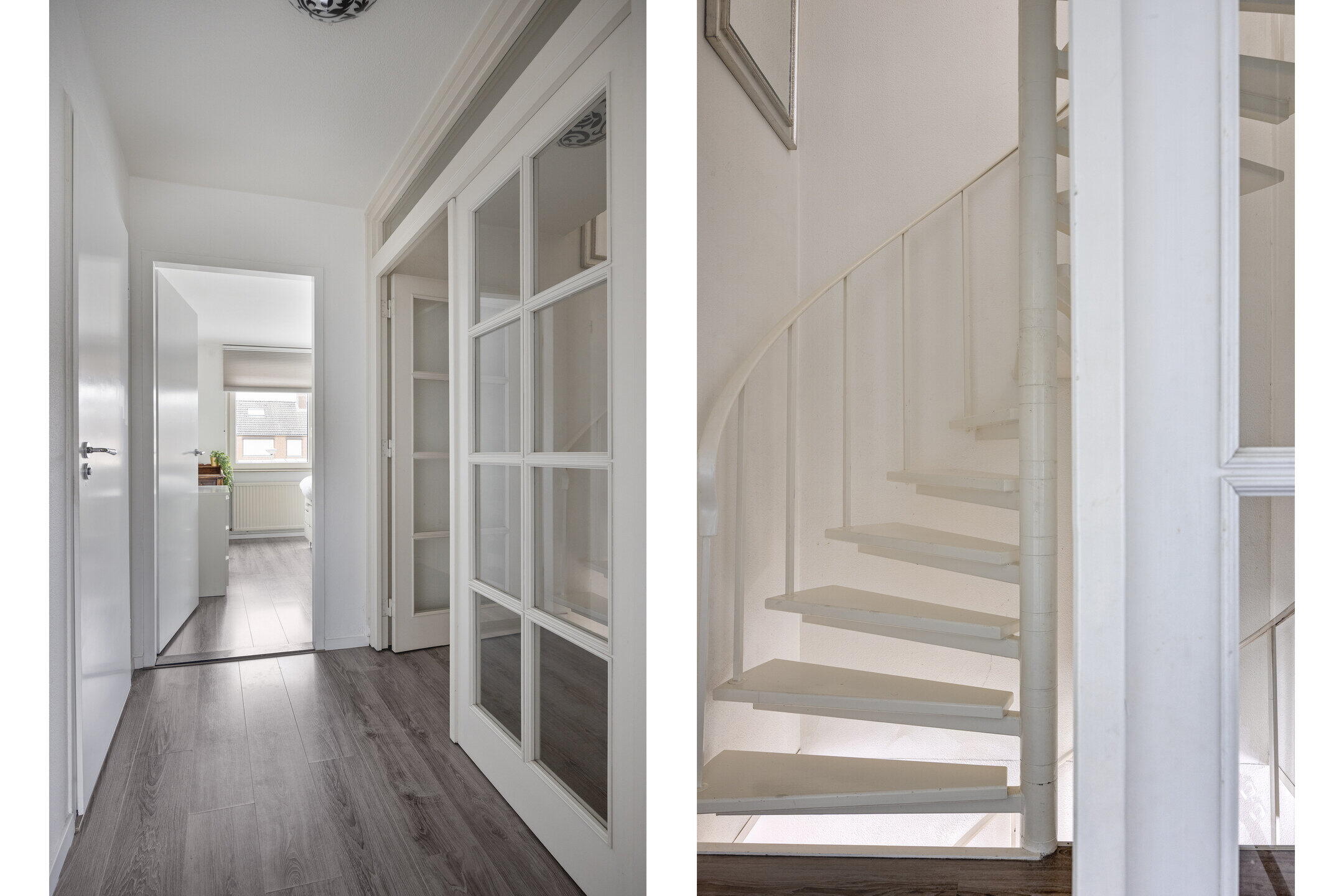 Ruime overloop (3.5 m x 2.3 m), afgesloten middels dubbele deuren richting trappenhuis.