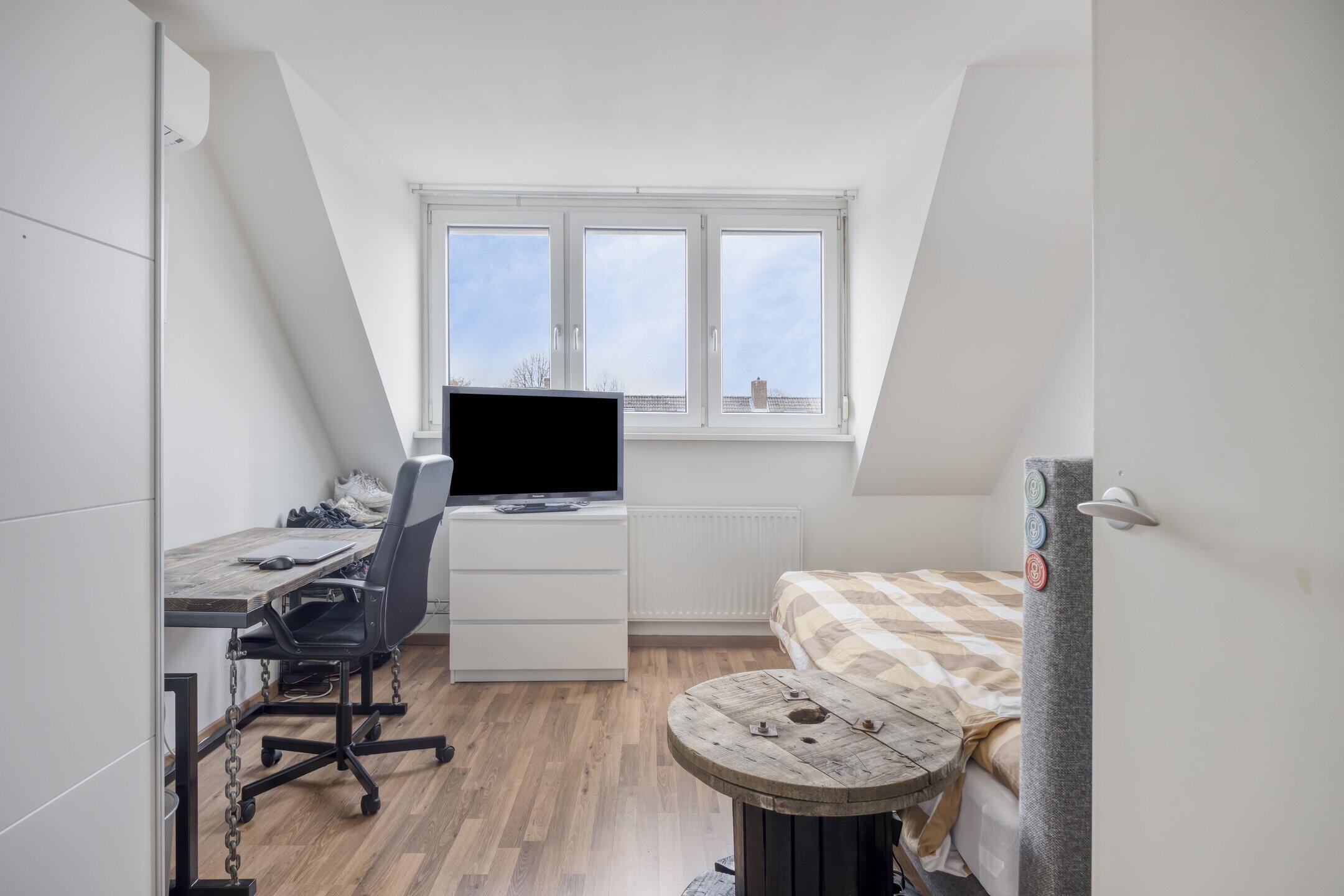 Slaapkamer 4 (3.5 m x 3.1 m) voorzien van dakkapel met screen, radiator en airco (2023).