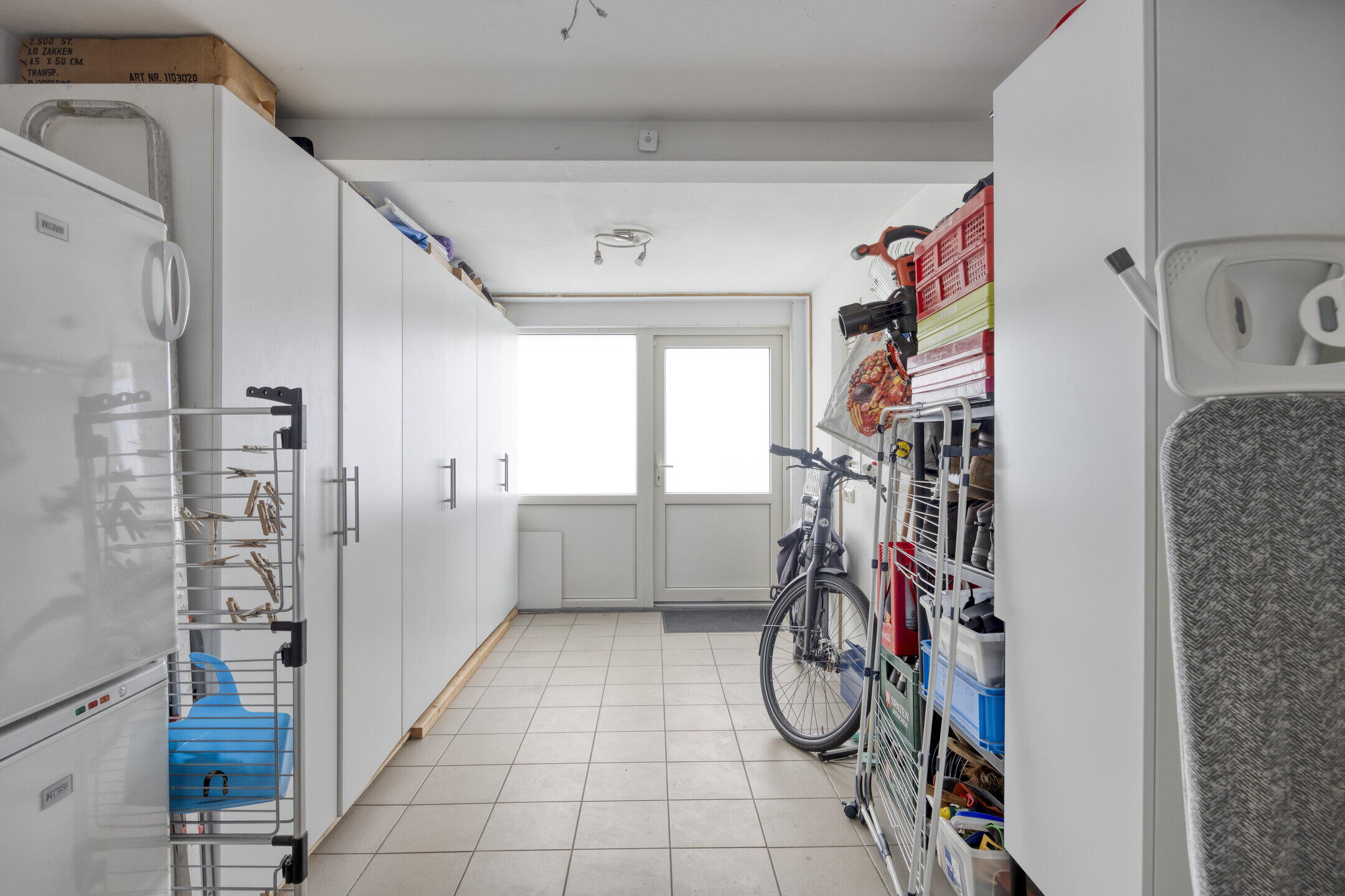 Voormalige garage / berging / bijkeuken (6.15 m x 2.65 m), voorzien van muur- en dakisolatie, tegelvloer, witgoedaansluitingen en een pui met deur. Bereikbaar via de keuken en rustige achtergelegen straat 'De Bak' waar ook parkeren mogelijk is.