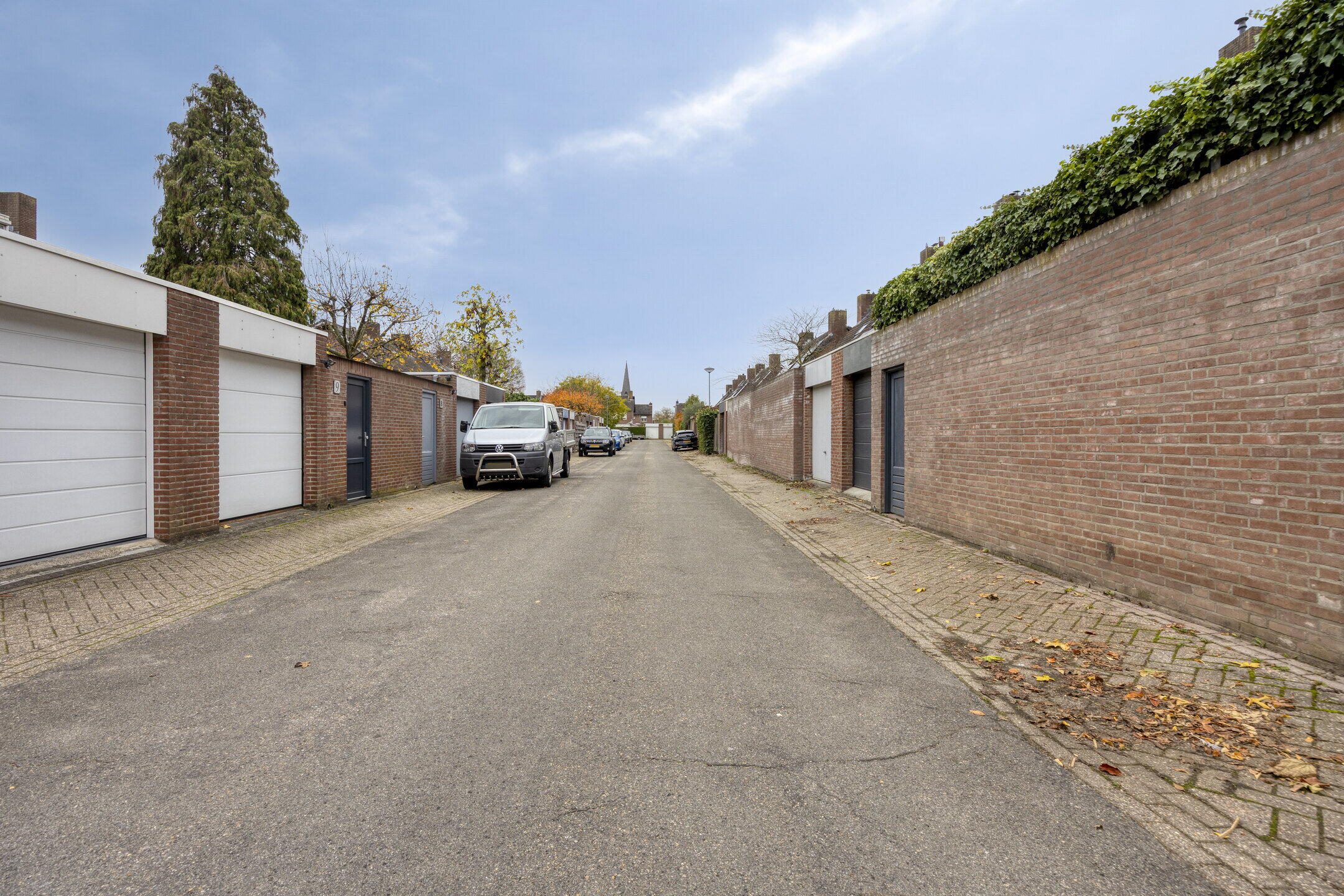 Voortuin sfeervol aangelegd met pand van kinderkopjes naar de voordeur en volgroeide beplanting. Parkeren kan gratis in de straat in parkeervakken.