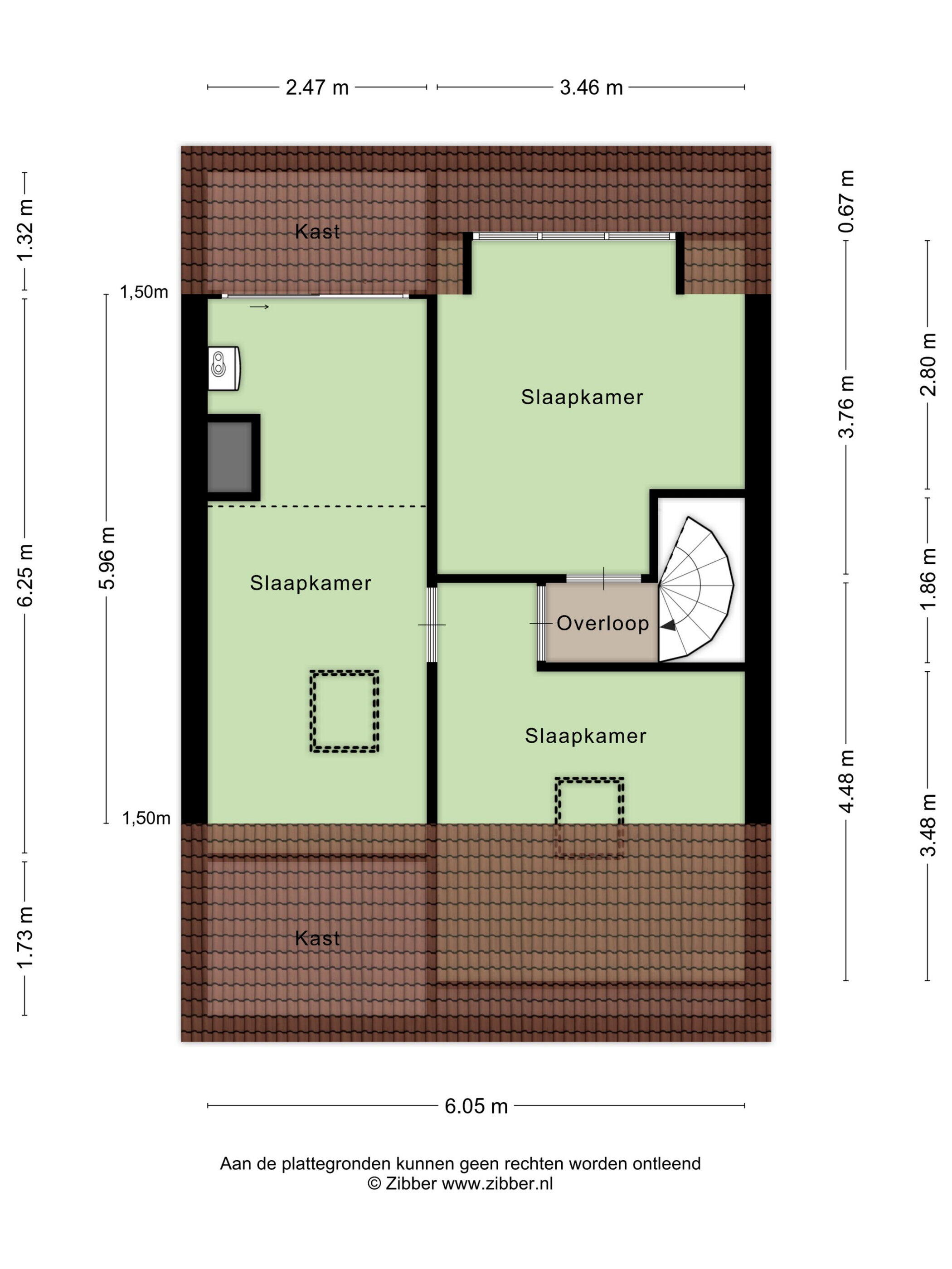 Overloop (3.6 m x 0.9 m) met toegang tot twee slaapkamers en een royale bergzolder.