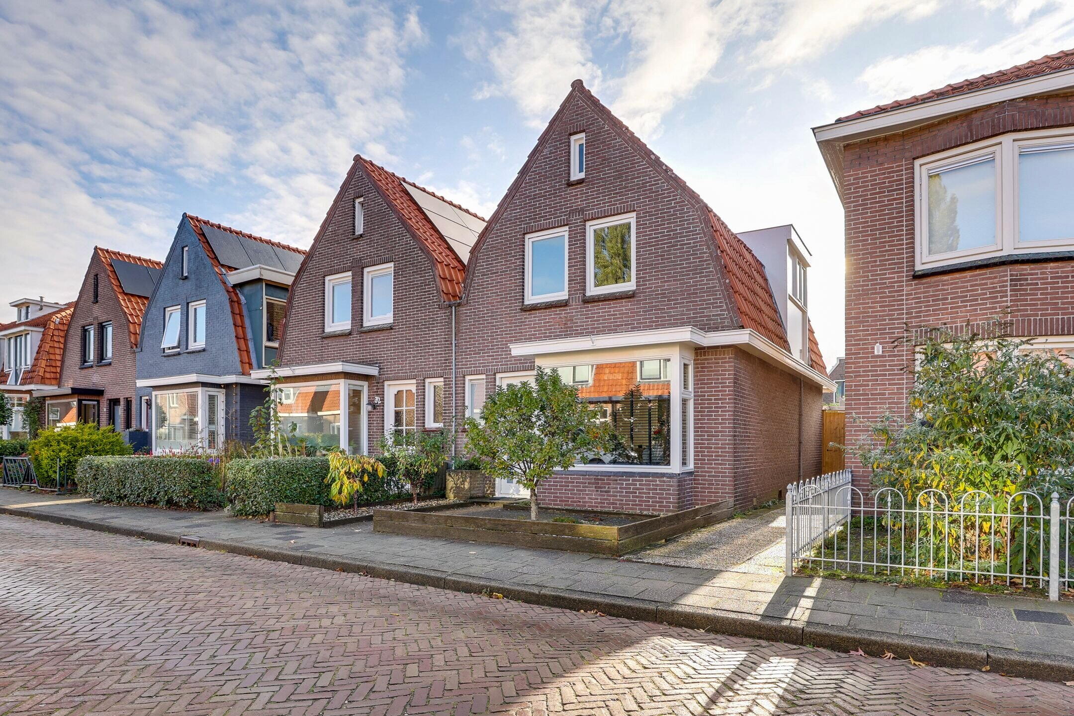 De voortuin vormt een prettige buffer tussen woning en straat en zorgt voor extra privacy. Naast de woning loopt een steeg naar de verzorgde en onderhoudsvriendelijke achtertuin op het zuidoosten, die ook via de bijkeuken bereikbaar is. Achterin bevindt zich een gezellige veranda met stalling – ideaal voor fietsen of tuingereedschap.