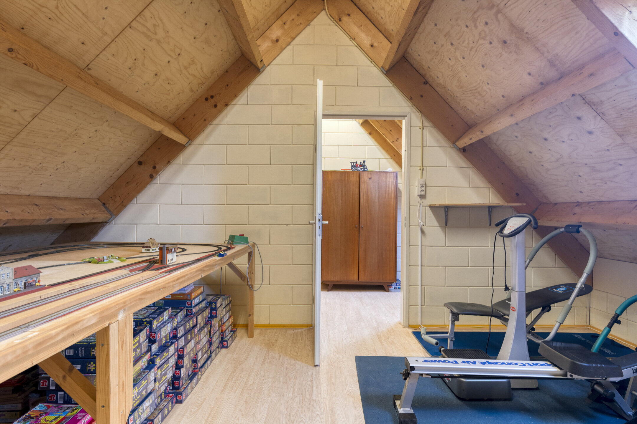 Op de begane grond bevindt zich een comfortabele slaapkamer, perfect voor wie gelijkvloers wil wonen, of ideaal als logeerkamer of thuiskantoor. Daarnaast is hier een nette badkamer met douche en een apart toilet, wat zorgt voor extra praktisch gemak. Op de eerste verdieping vind je twee ruime slaapkamers, beide met voldoende plek voor een groot bed, kasten en extra opbergruimte. De tweede badkamer is voorzien van een ligbad en wastafel, heerlijk om even tot rust te komen. Ook op deze verdieping is een apart toilet aanwezig. Tot slot is er nog een extra kamer die momenteel in gebruik is als sportruimte. Deze ruimte leent zich uitstekend voor een vierde slaapkamer, hobbykamer of rustige thuiswerkplek. De mogelijkheden zijn eindeloos!