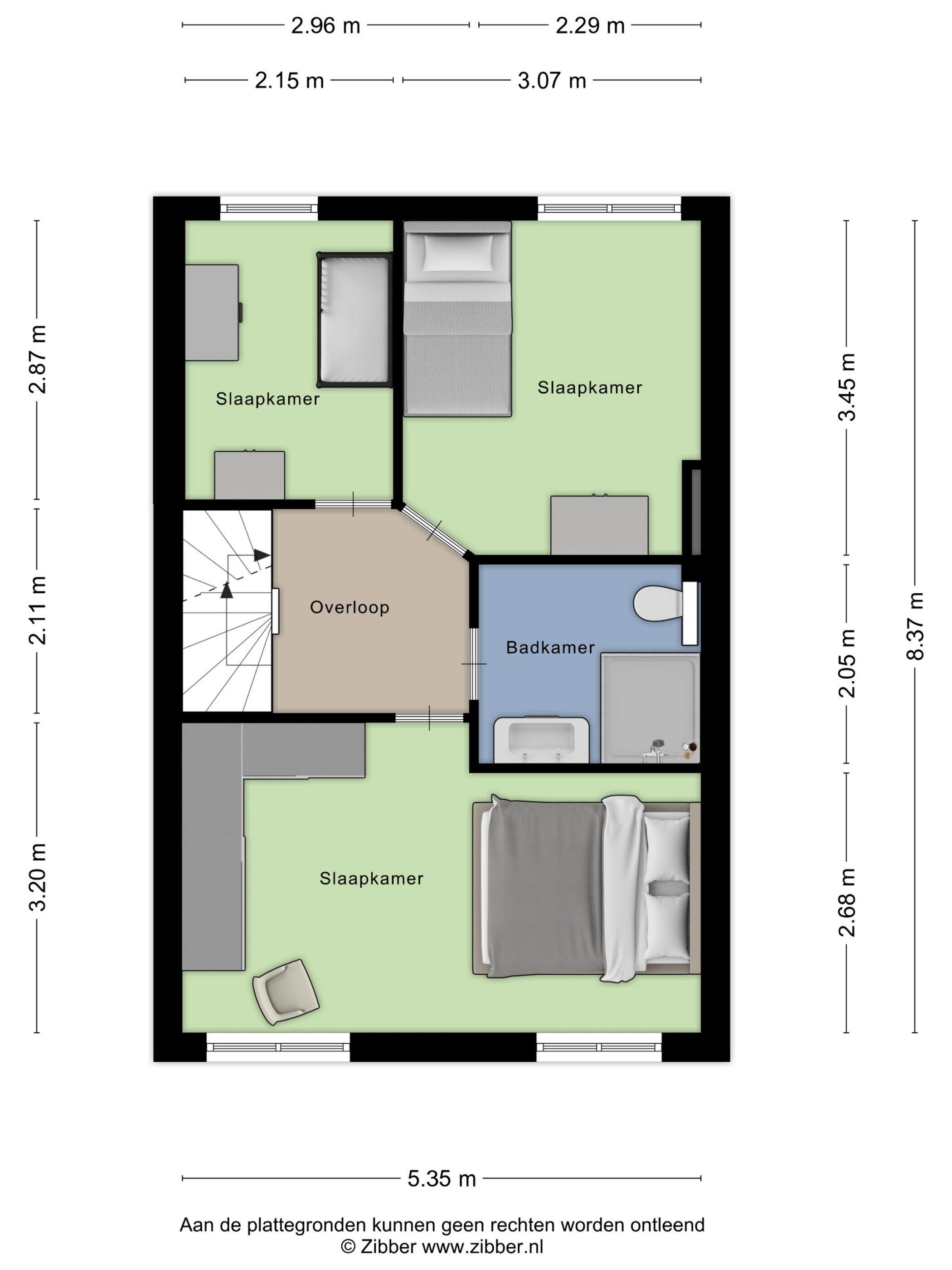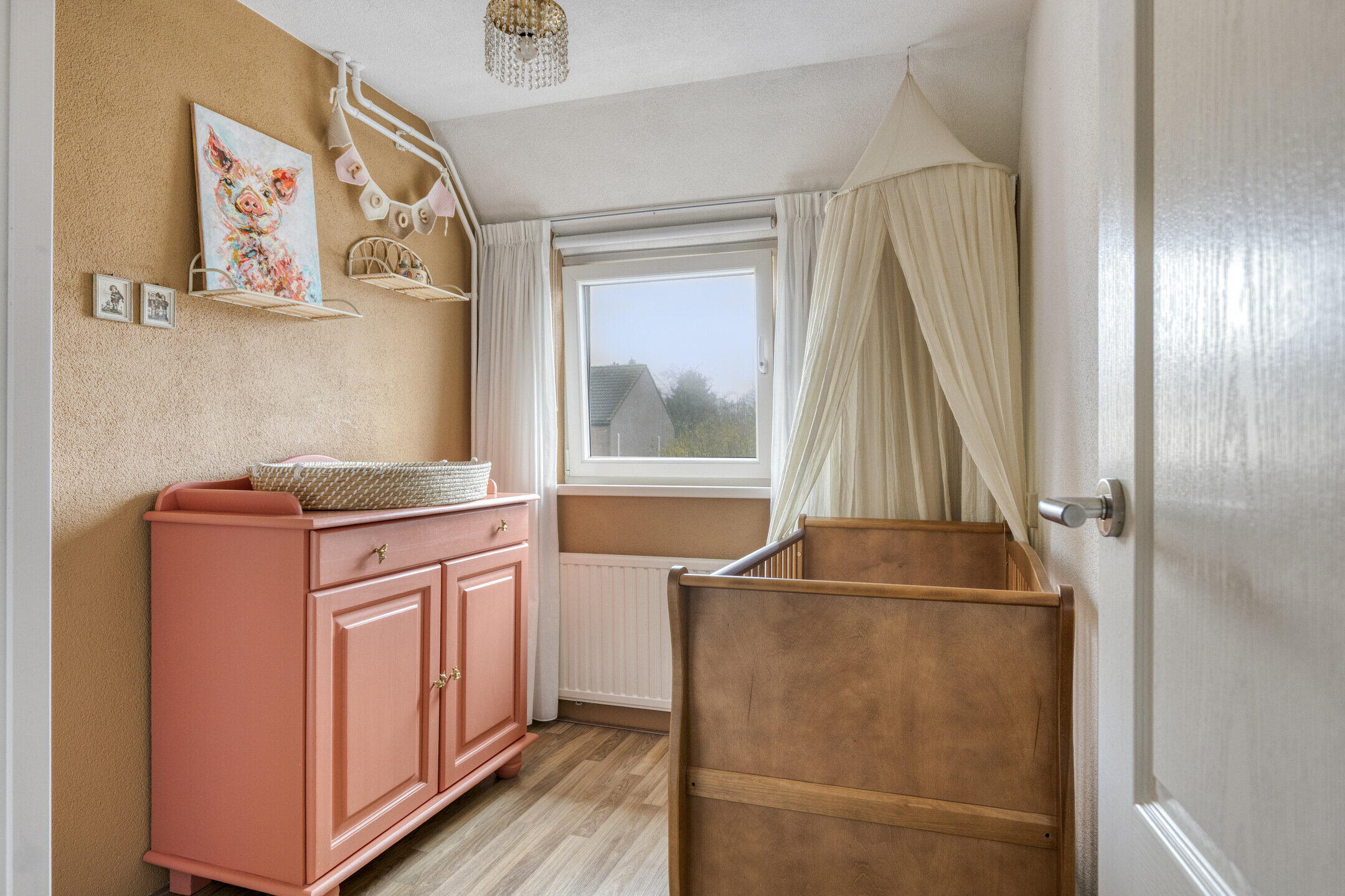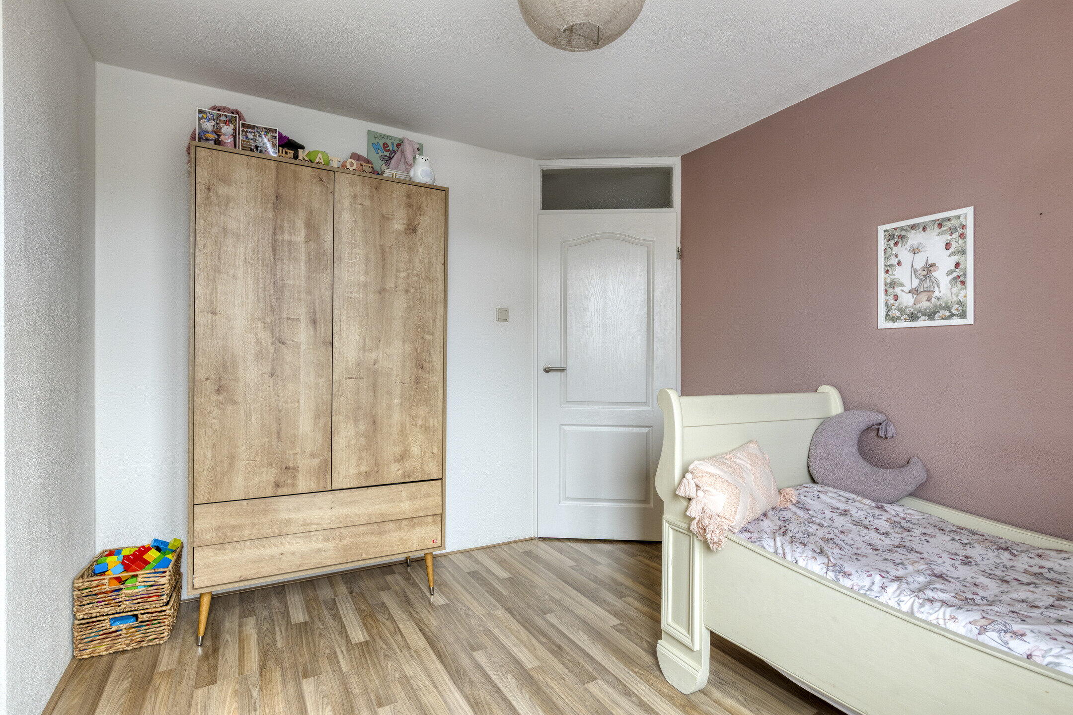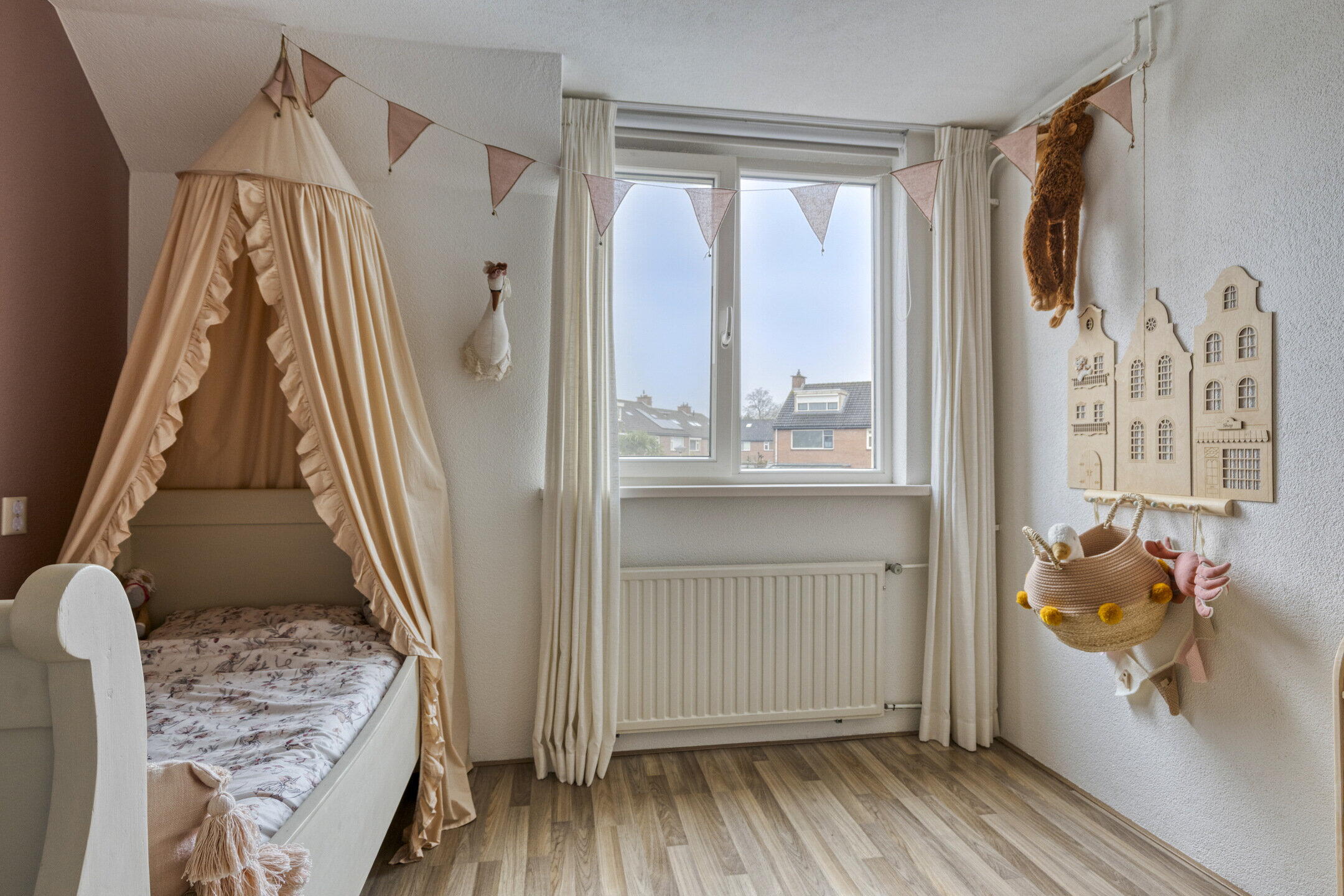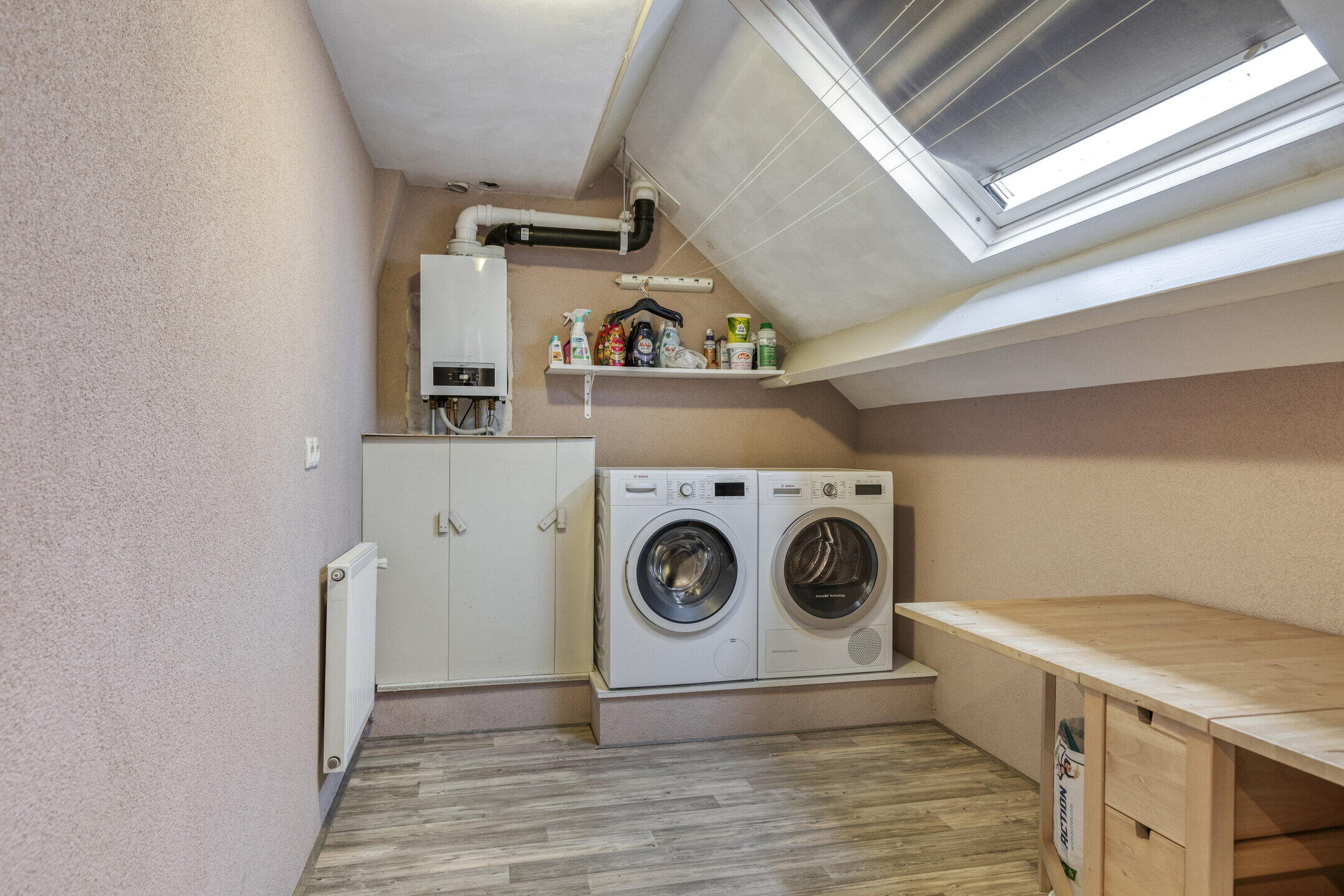 Op de eerste verdieping bevinden zich drie ruime slaapkamers, allemaal voorzien van veel lichtinval en keurig afgewerkt. De badkamer is modern en stijlvol met grijze tegels, een strak donkergrijs wastafelmeubel, een ruime inloopdouche en een tweede toilet – van alle gemakken voorzien. De tweede verdieping biedt nog een grote kamer, momenteel in gebruik als thuiskantoor. Deze ruimte is ook uitstekend geschikt als vierde slaapkamer en heeft veel lichtinval dankzij het grote dakraam. Daarnaast vind je hier een praktische wasruimte en extra opbergmogelijkheden.