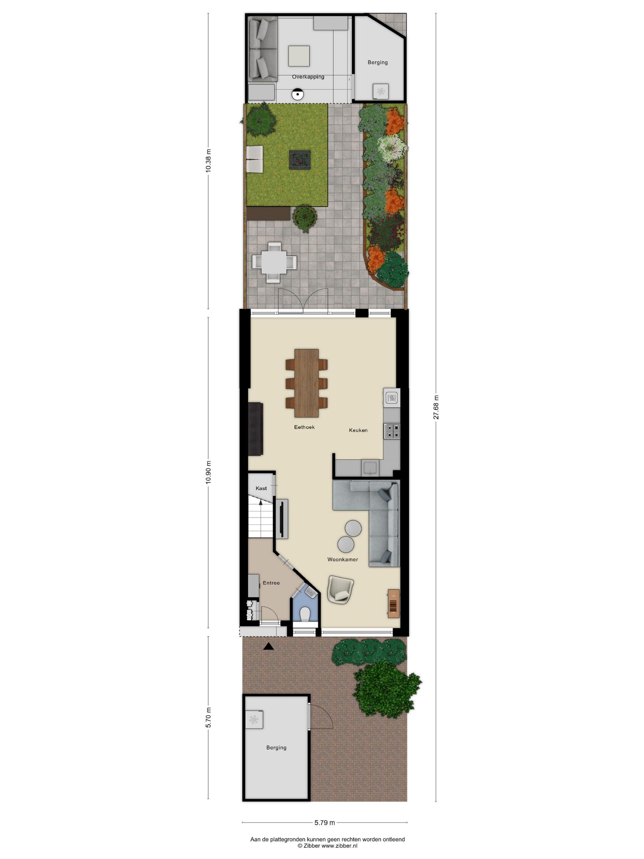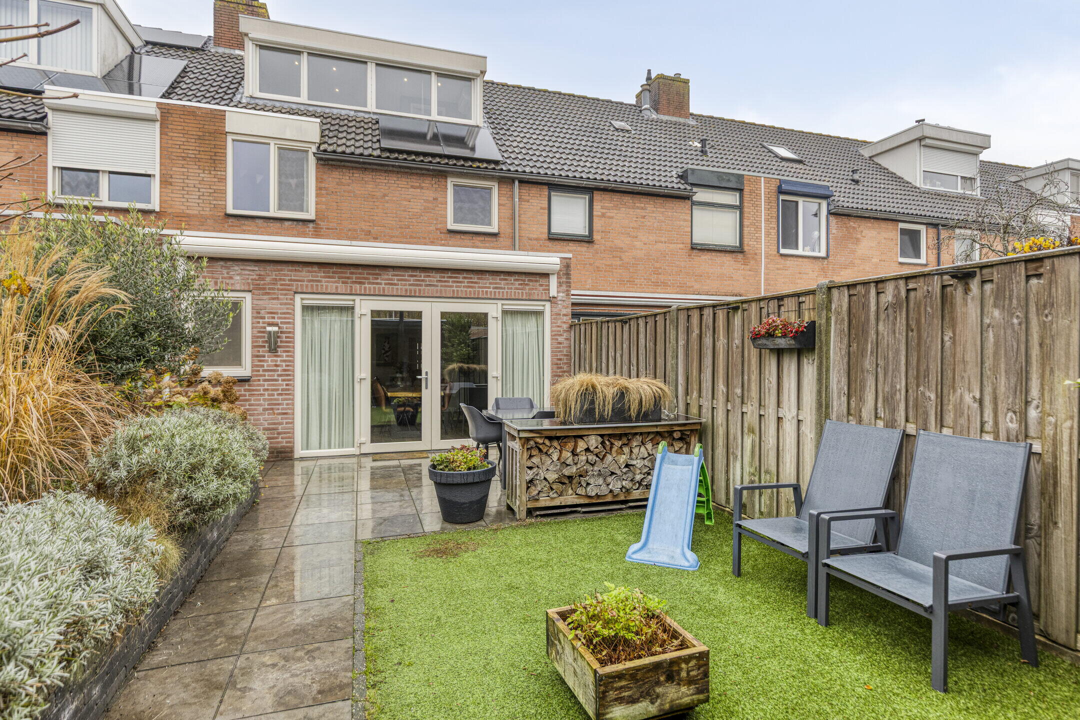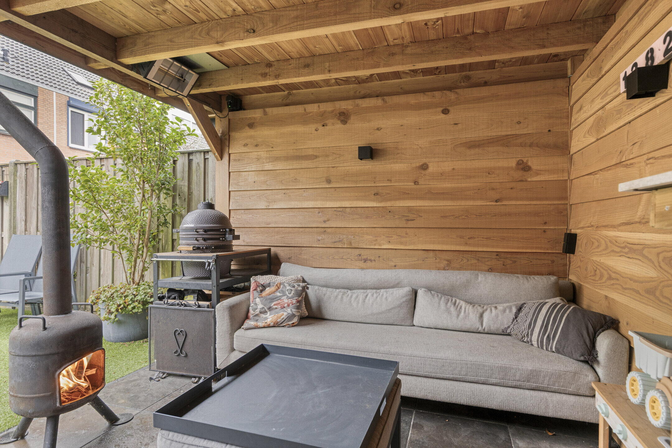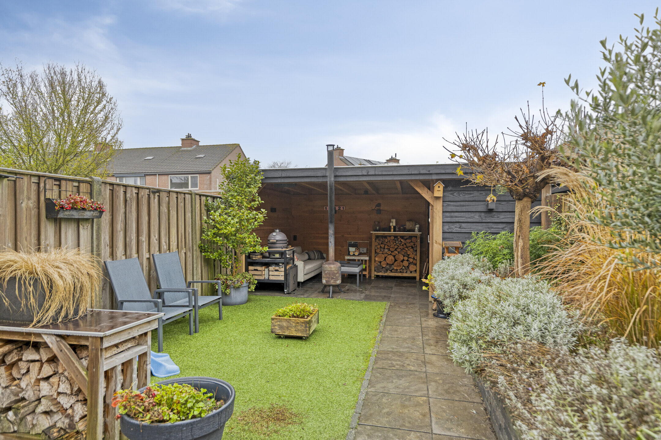 De achtertuin is netjes aangelegd met een combinatie van groen en bestrating. Helemaal achterin vind je een grote overkapping – dé plek om te loungen bij een vuurtje of gezellig samen te zijn met vrienden. Daarnaast is er ook nog een praktische berging aanwezig en de achtertuin heeft bijna de gehele dag zon en beschikt over een achterom. Een heerlijke tuin met veel privacy én sfeer!