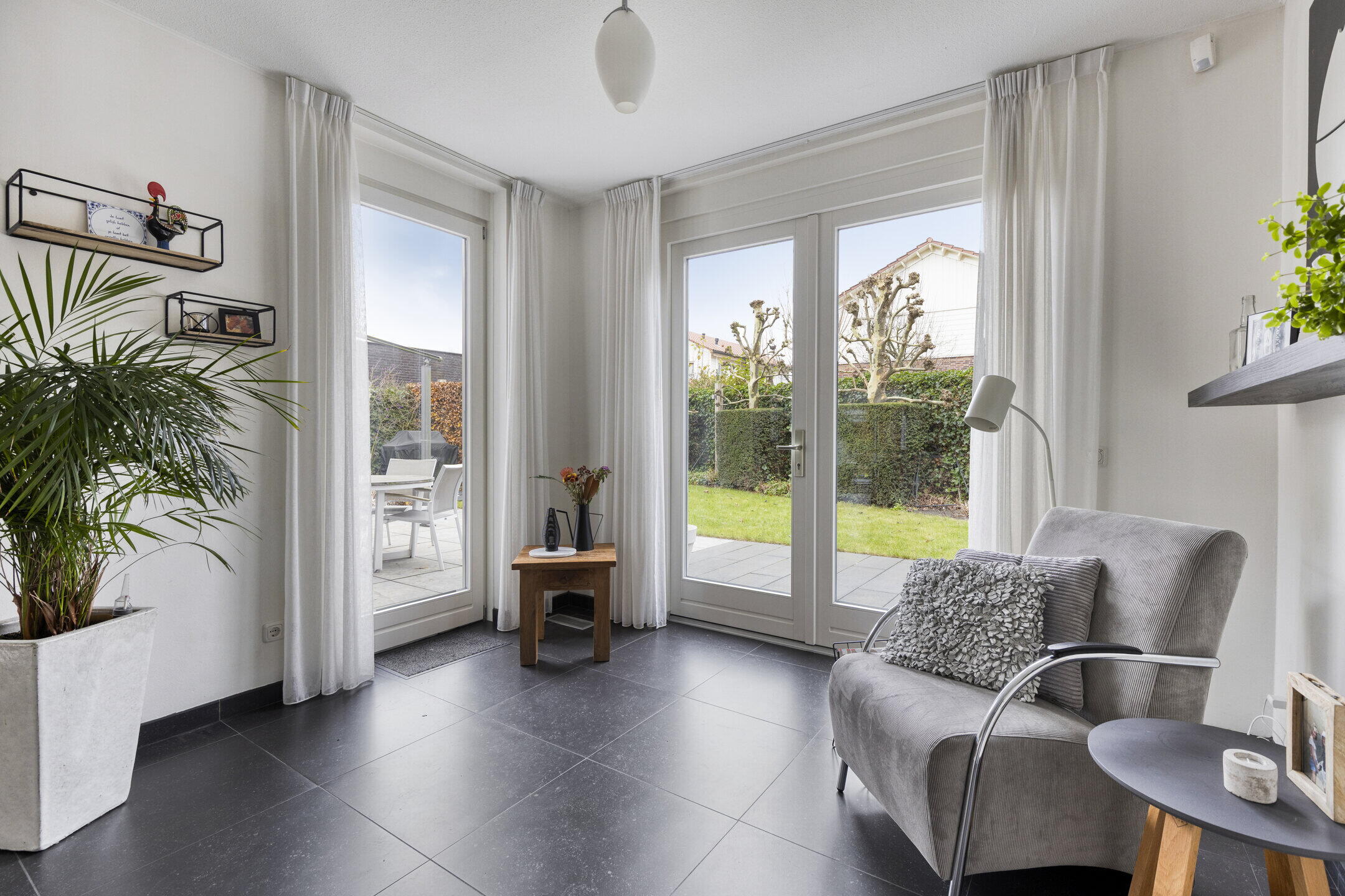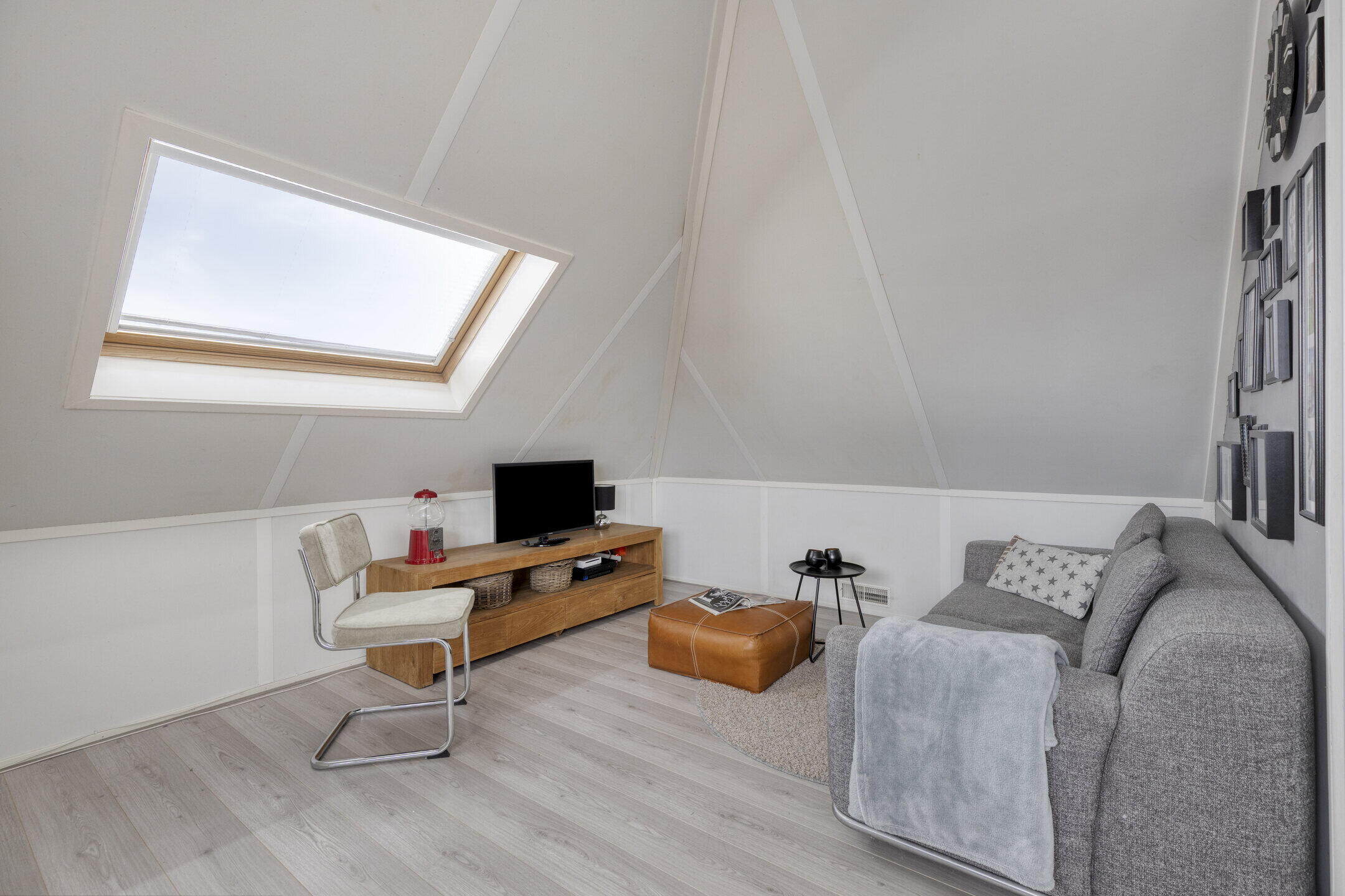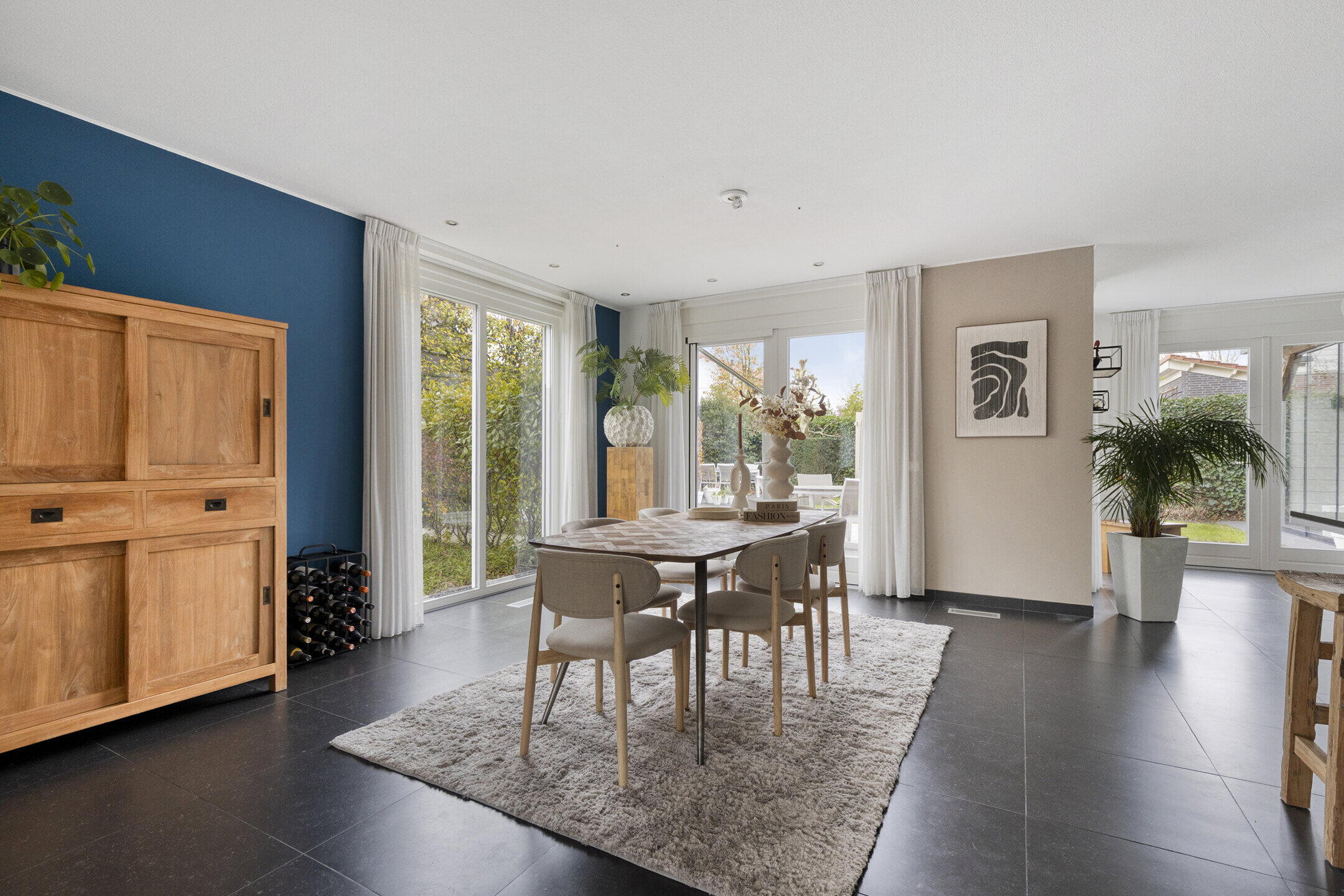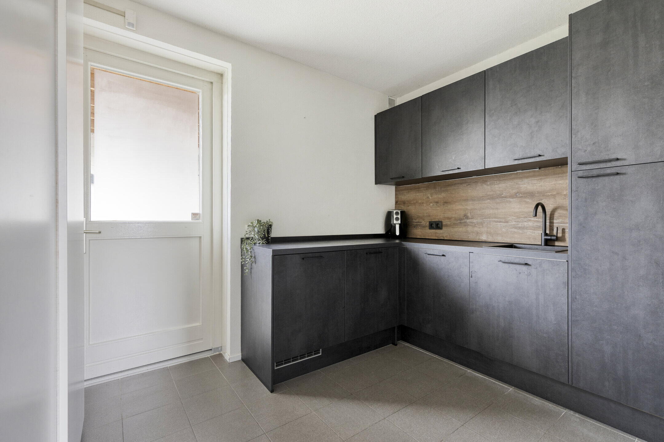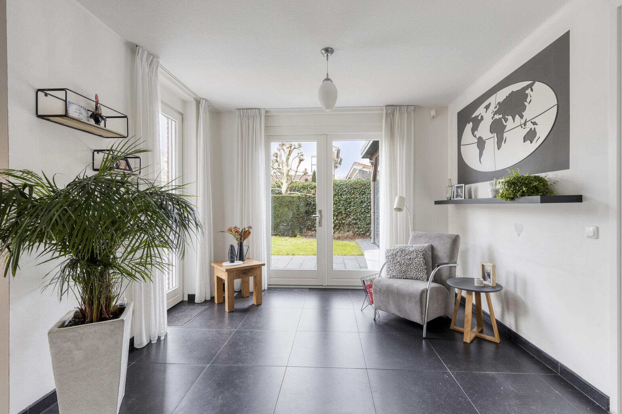 De bijkeuken is erg ruim, voorzien van een keukenblok en veel opbergruimte. Vanuit hier loop je door naar de absolute parel van het huis: de tuinkamer. Deze afsluitbare ruimte met glazen schuifpuien en houtkachel is het hele jaar door een fijne plek om te genieten – binnen én buiten tegelijk.