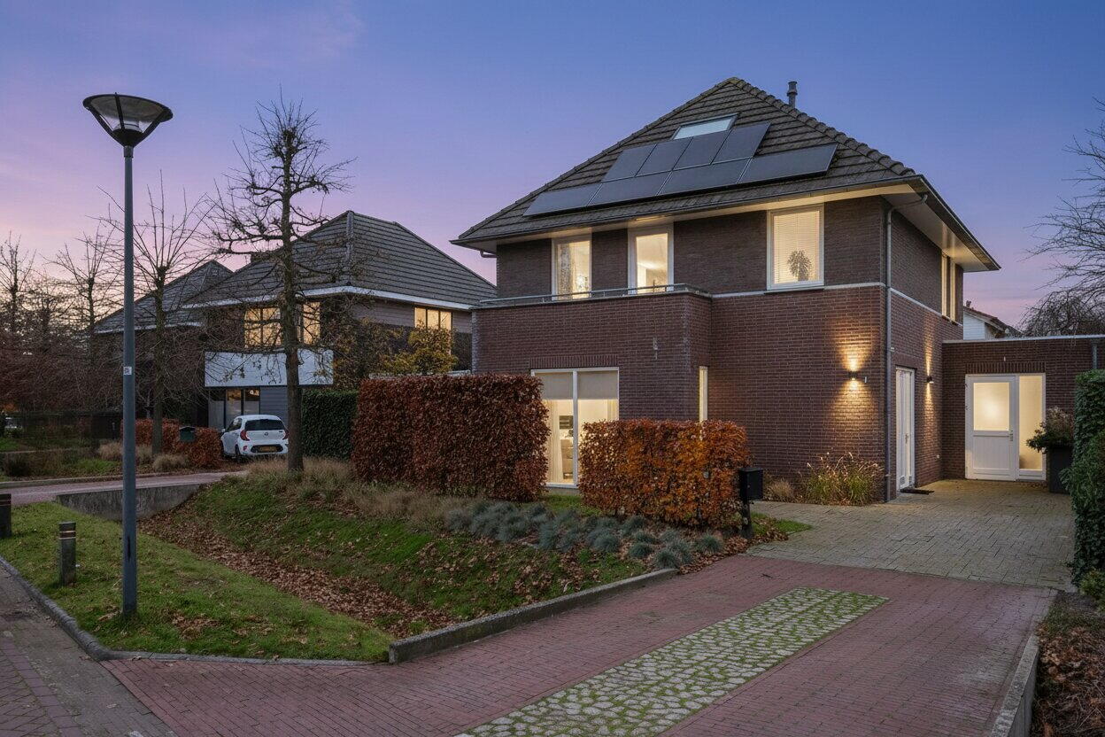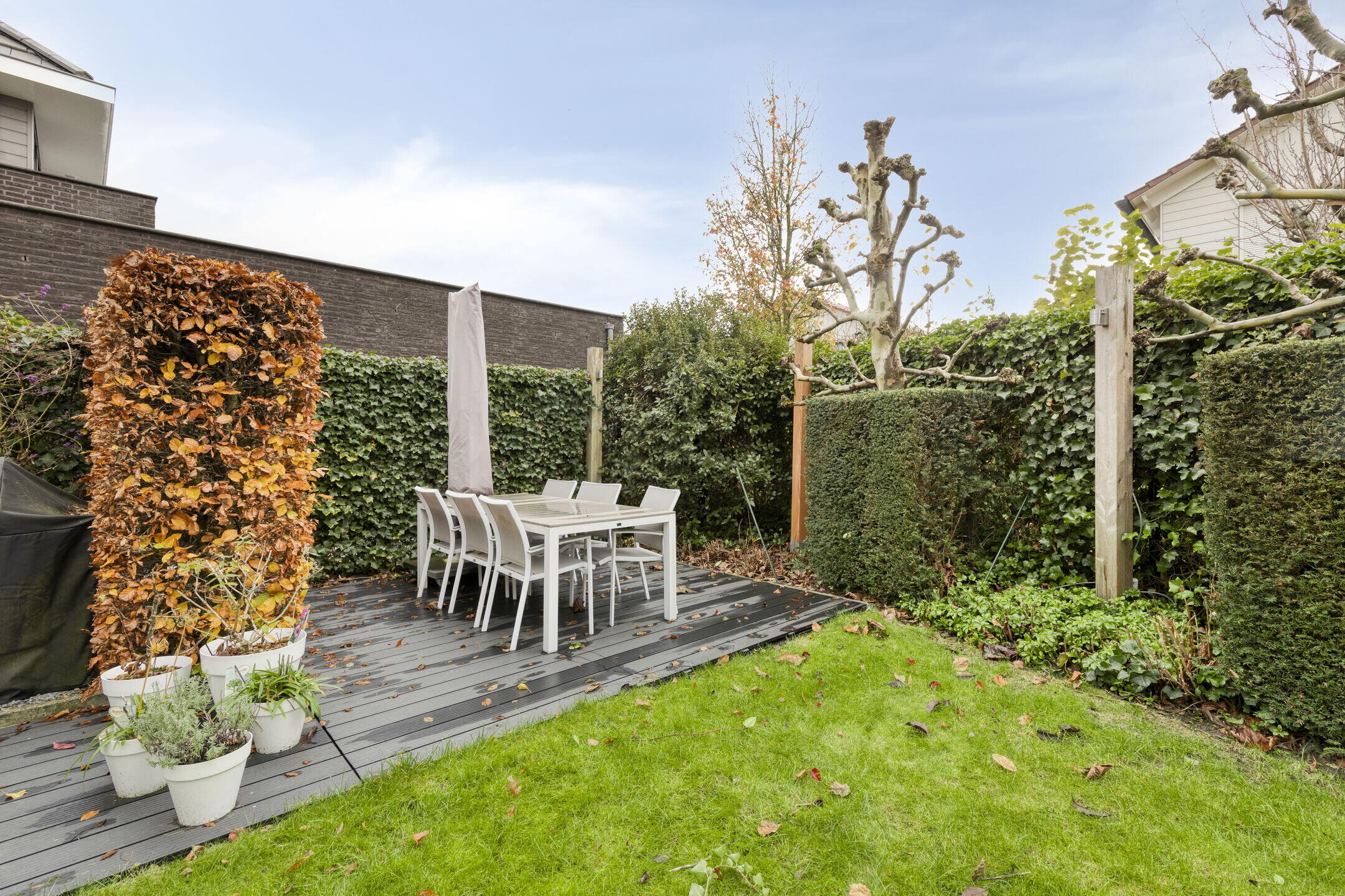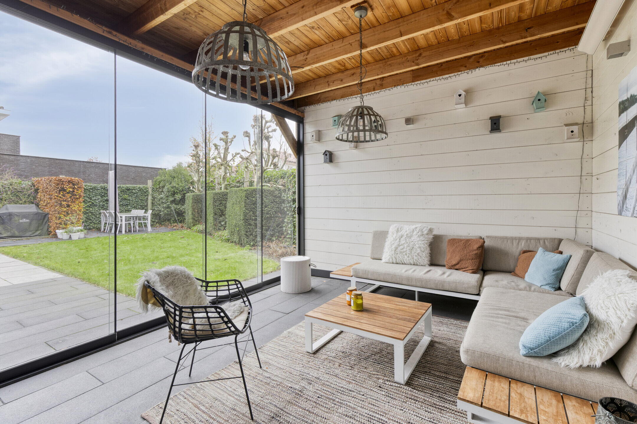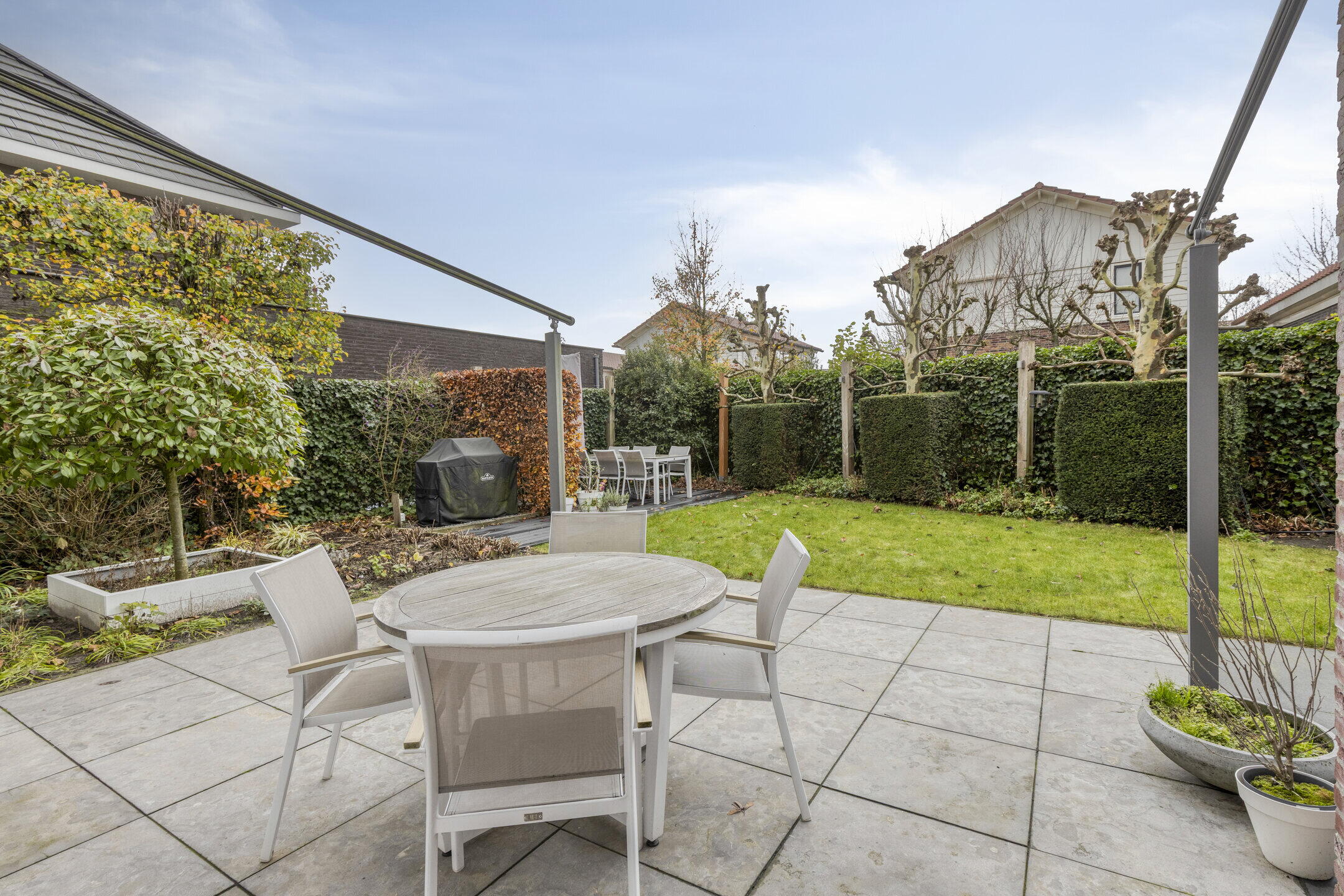 De tuin is een oase van rust en luxe. Mooie borders, meerdere terrassen en als eyecatcher natuurlijk de eerder genoemde tuinkamer. De tuin is bovendien voorzien van sprinklersysteem en tuinverlichting. Aan het grote terras bij de eetkamer bevindt zich een zonnescherm, zodat je ook op warme dagen in de schaduw kunt genieten. Aan de zijkant van de woning vindt je ook een praktisch schuurtje voor extra opbergruimte. Alles is tot in de puntjes verzorgd, je hoeft hier letterlijk niets meer aan te doen!