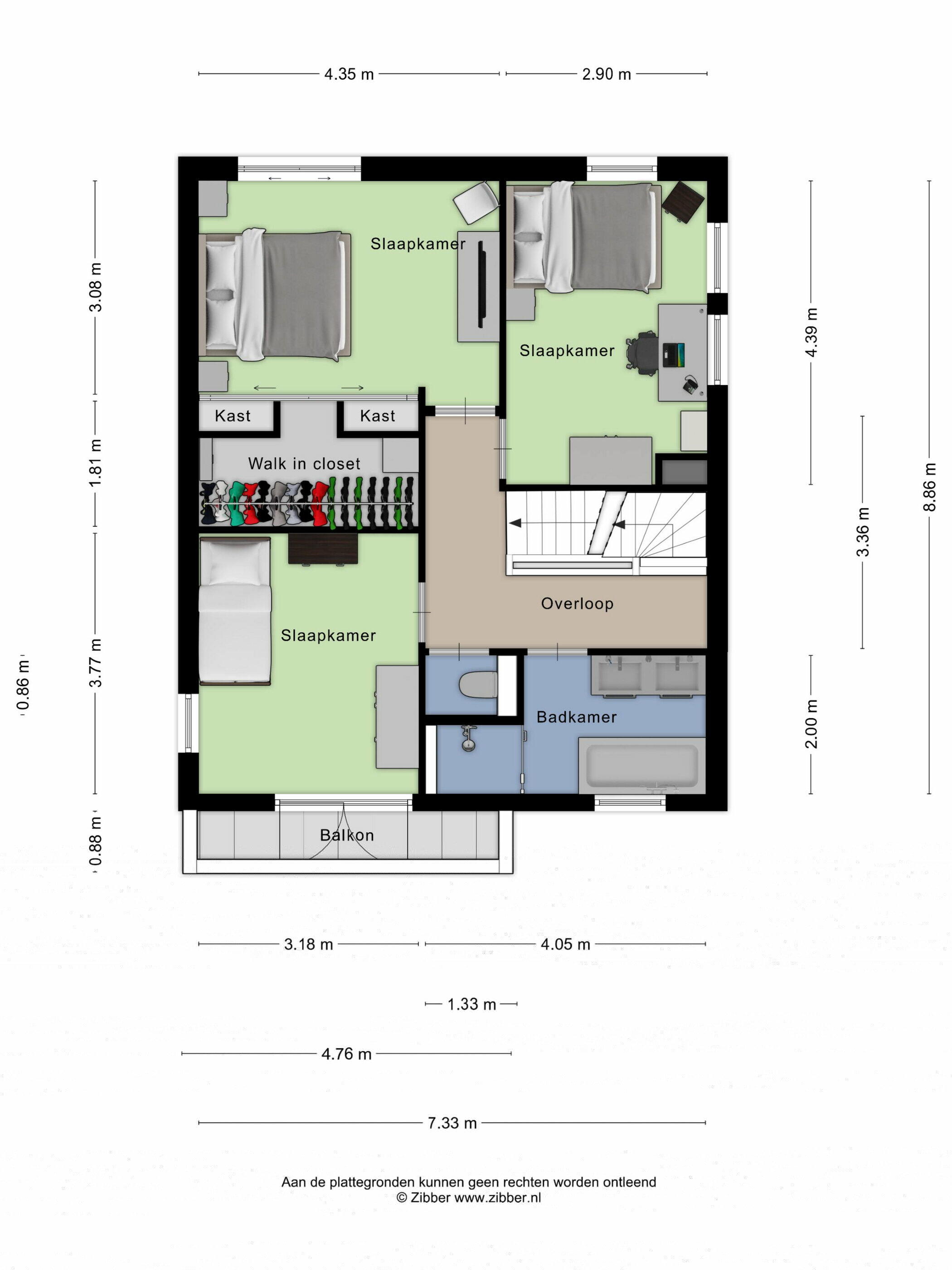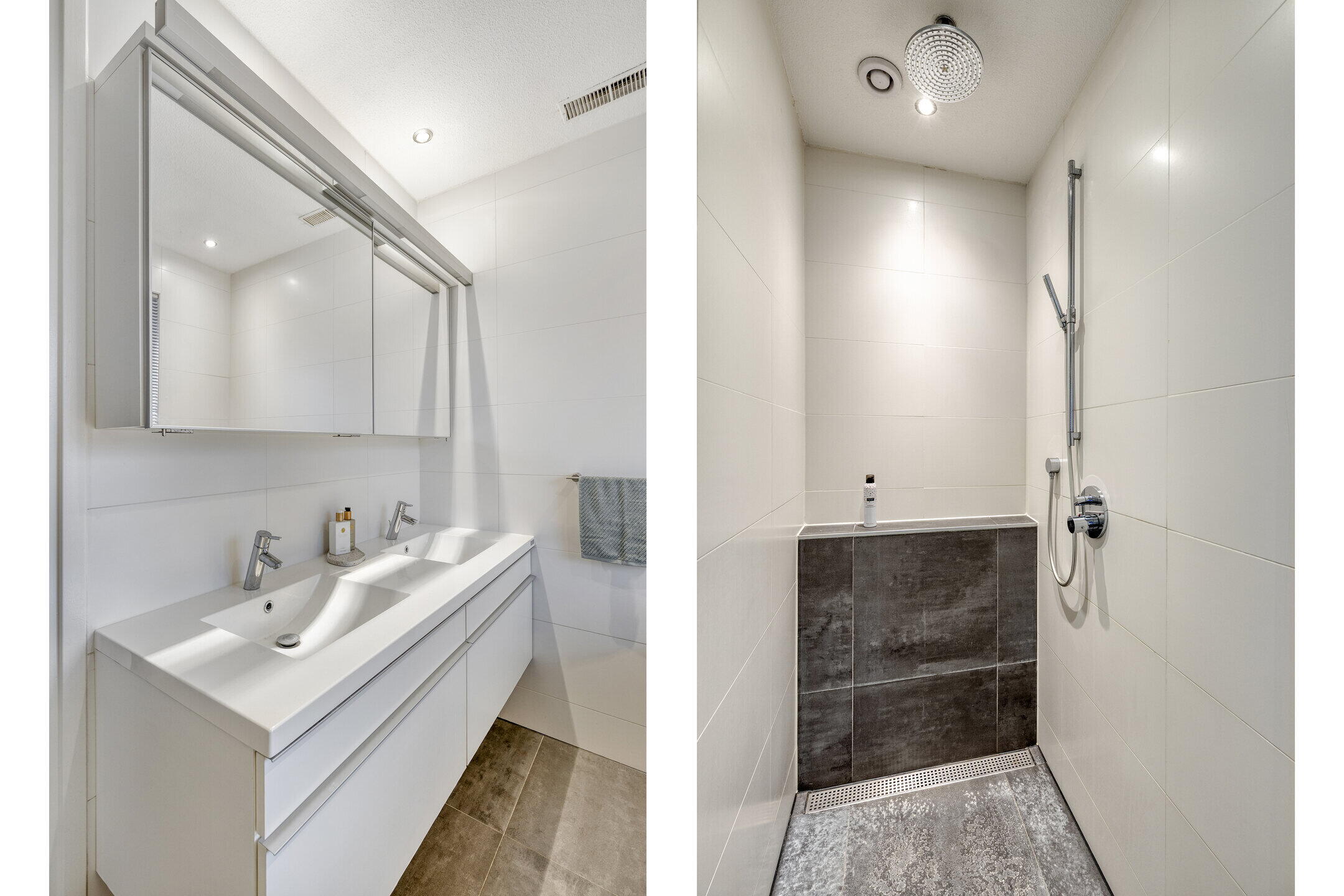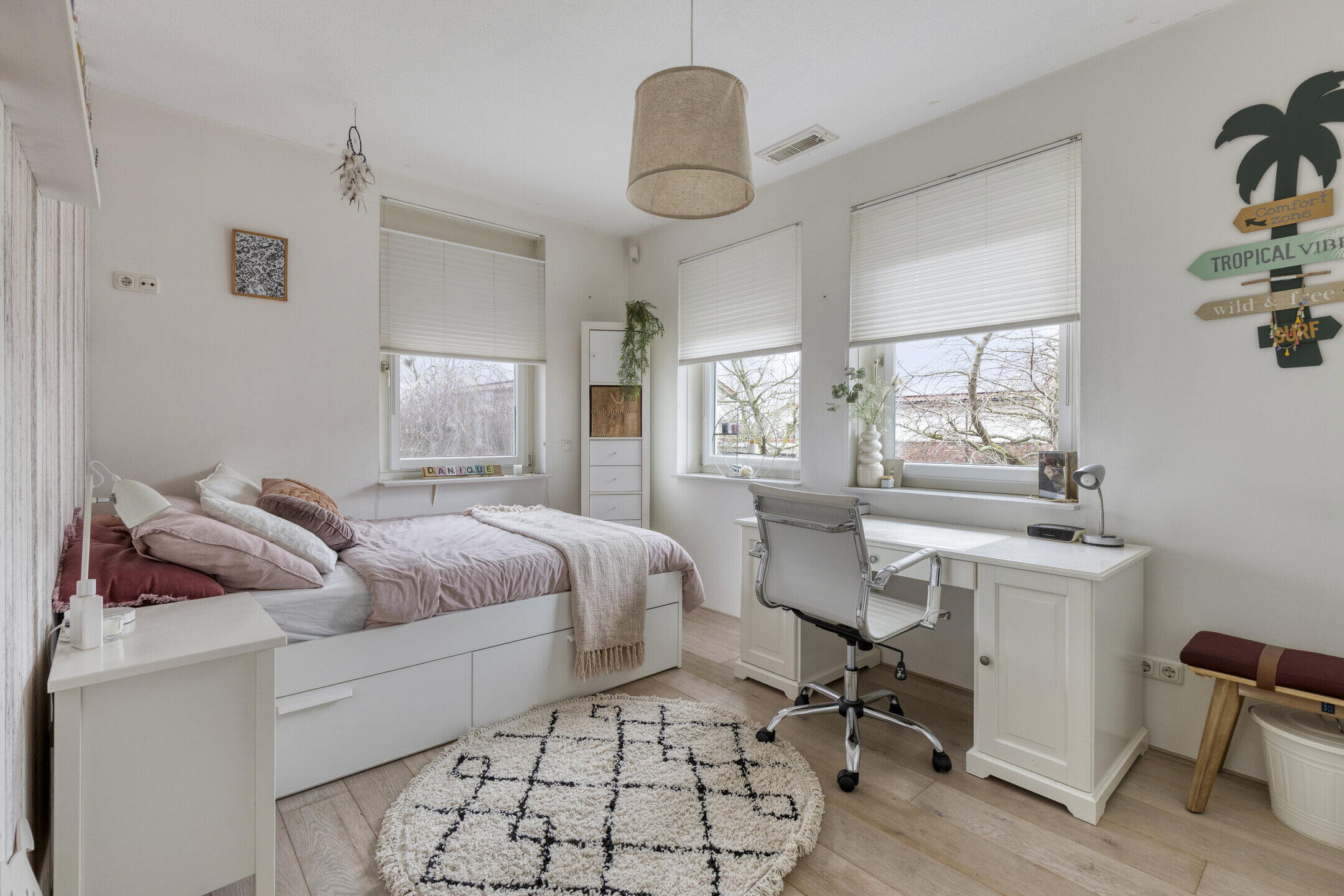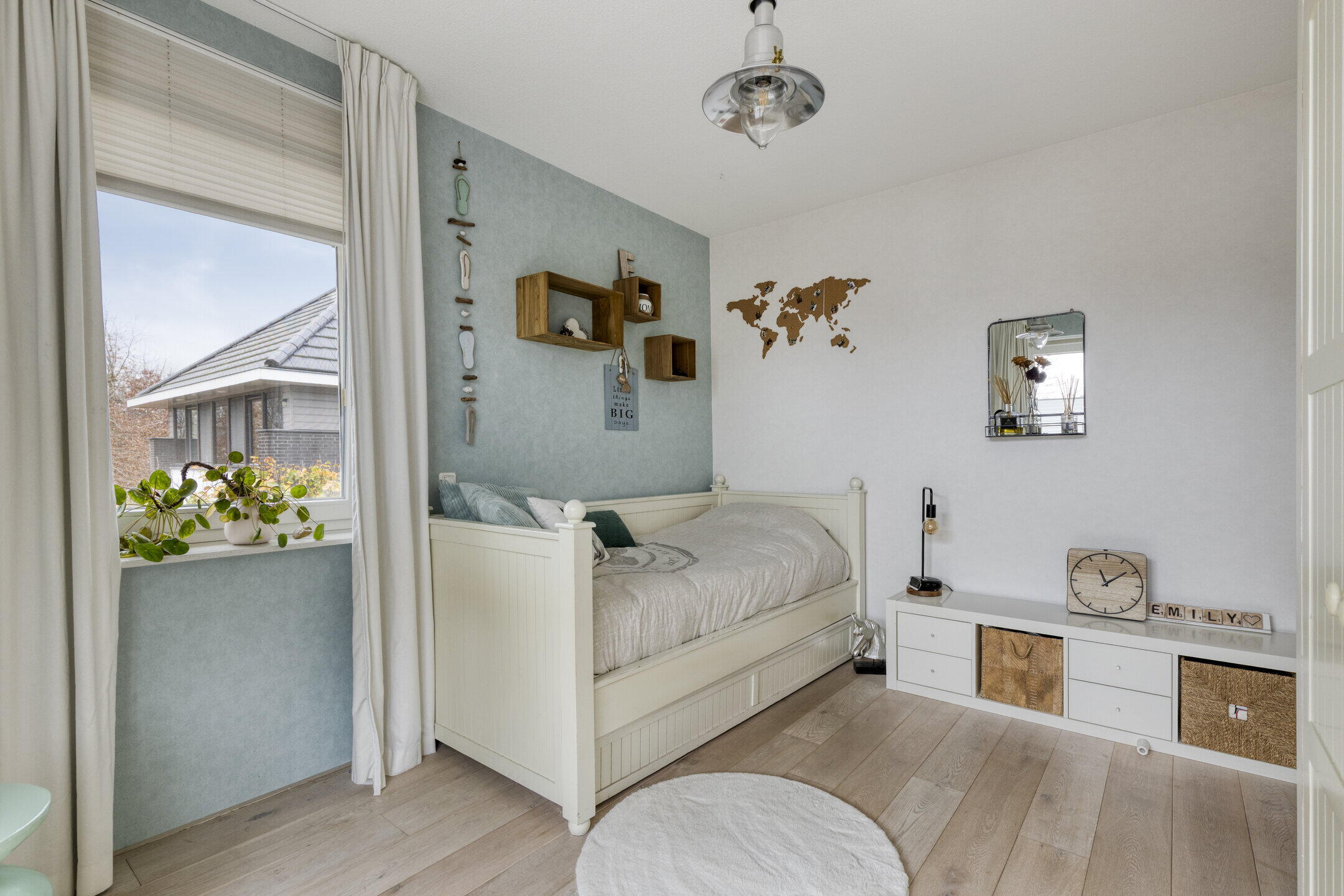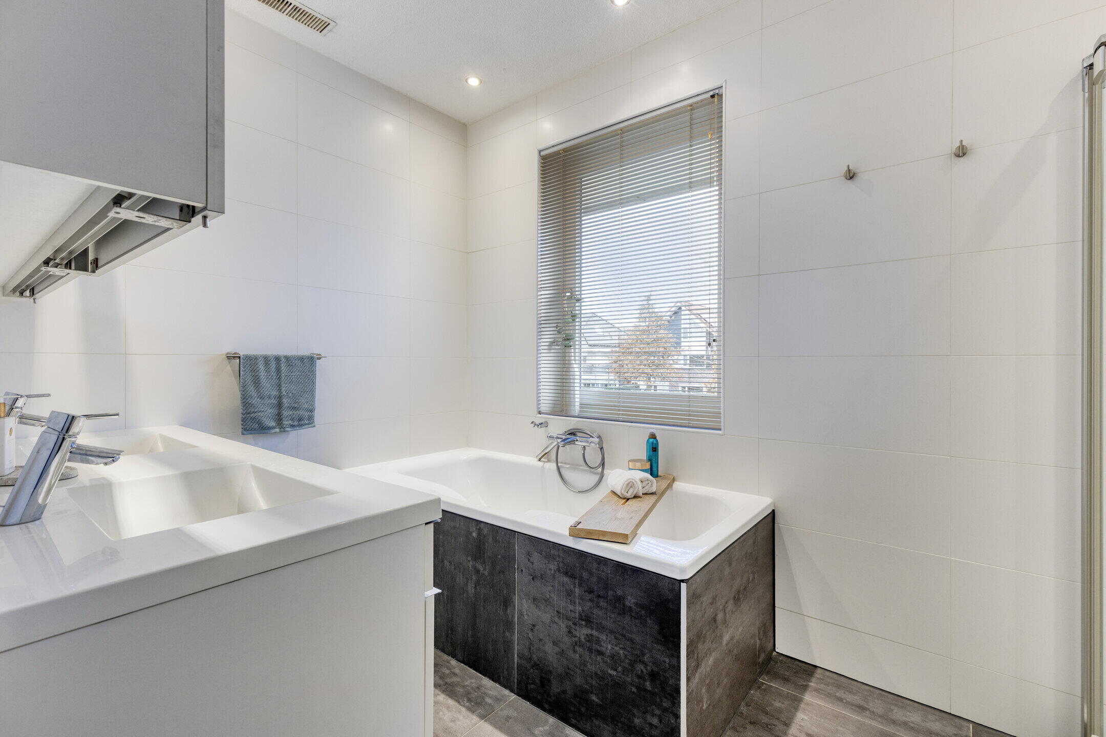 Op de eerste verdieping vind je drie slaapkamers. De master bedroom is heerlijk ruim, met een eigen walk-in closet en grote raampartij. De slaapkamer aan de voorzijde heeft zelfs een eigen balkonnetje! Alle kamers zijn netjes afgewerkt en instapklaar. De badkamer is strak en luxe met een dubbele wastafel met meubel, ligbad en ruime inloopdouche, alles in perfecte staat. De tweede verdieping is bereikbaar via een vaste trap. Hier vind je een aparte wasruimte met mogelijkheid voor berging én een zeer royale vierde slaapkamer, ook ideaal als werkruimte. Netjes afgewerkt en volop ruimte!