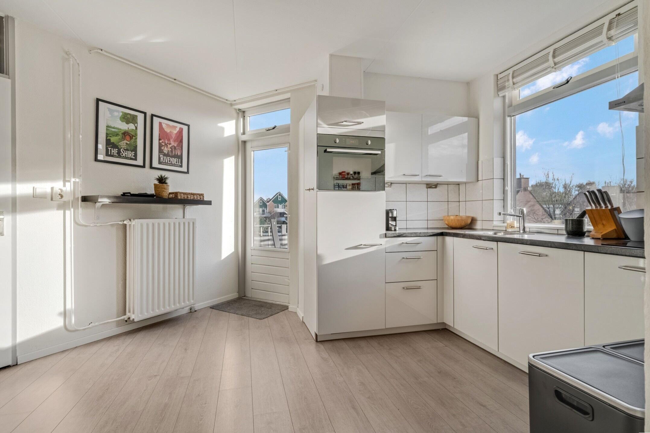 De keuken is royaal opgezet en van alle gemakken voorzien. Deze biedt meer dan genoeg ruimte om uitgebreid te koken en voor gezellige avonden met vrienden en familie. Aangrenzend vind je het balkon met ligging op het zuiden: een fijne plek om ’s ochtends de dag te starten met een kop koffie of ’s avonds nog even te ontspannen na een lange dag.