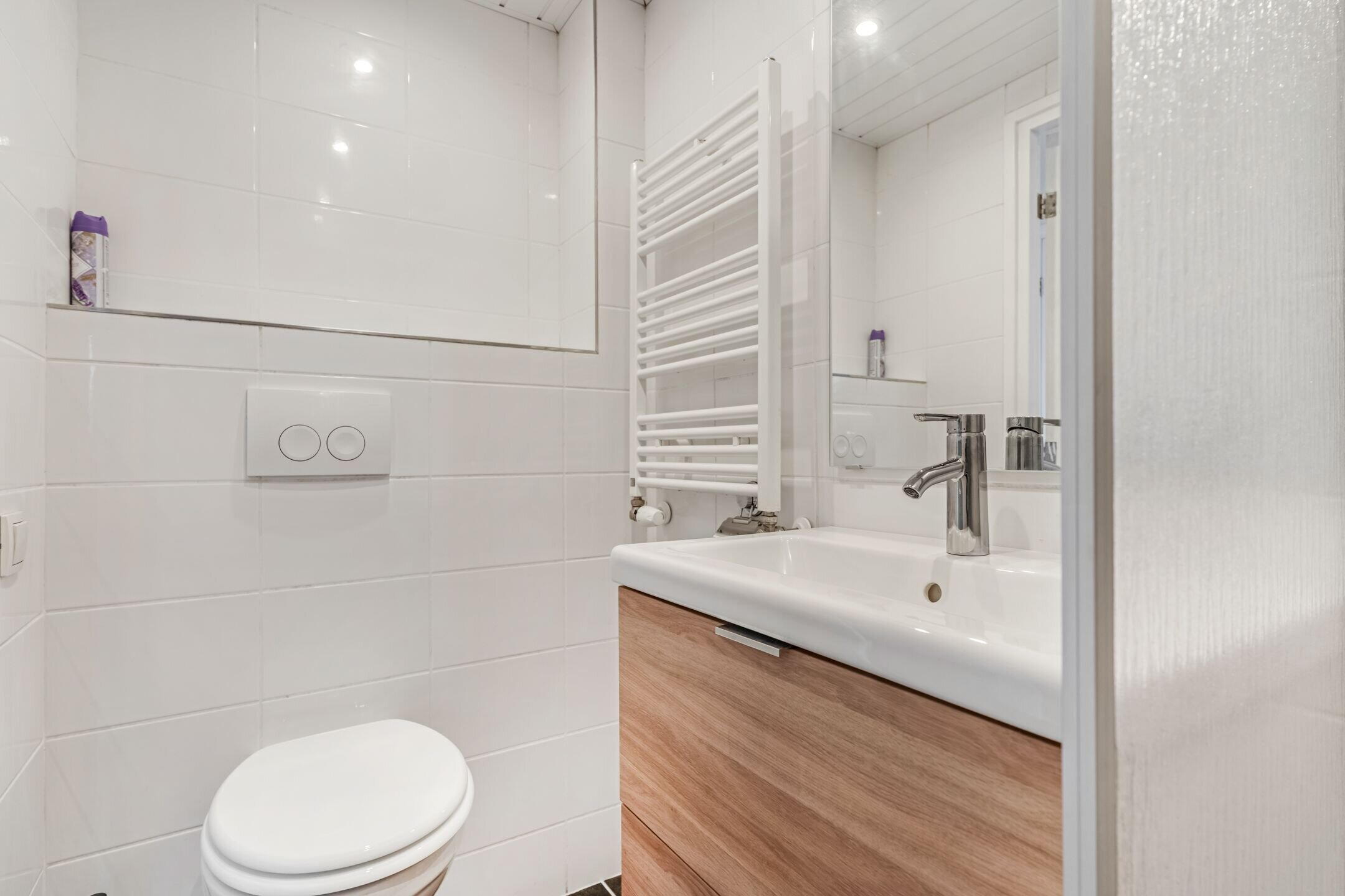 De badkamer is modern en neutraal afgewerkt en beschikt over een inloopdouche, een recent geplaatst wastafelmeubel en toilet. De separate keuken is eenvoudig uitgevoerd, maar netjes onderhouden. Een ideale plek om op termijn jouw droomkeuken te realiseren.