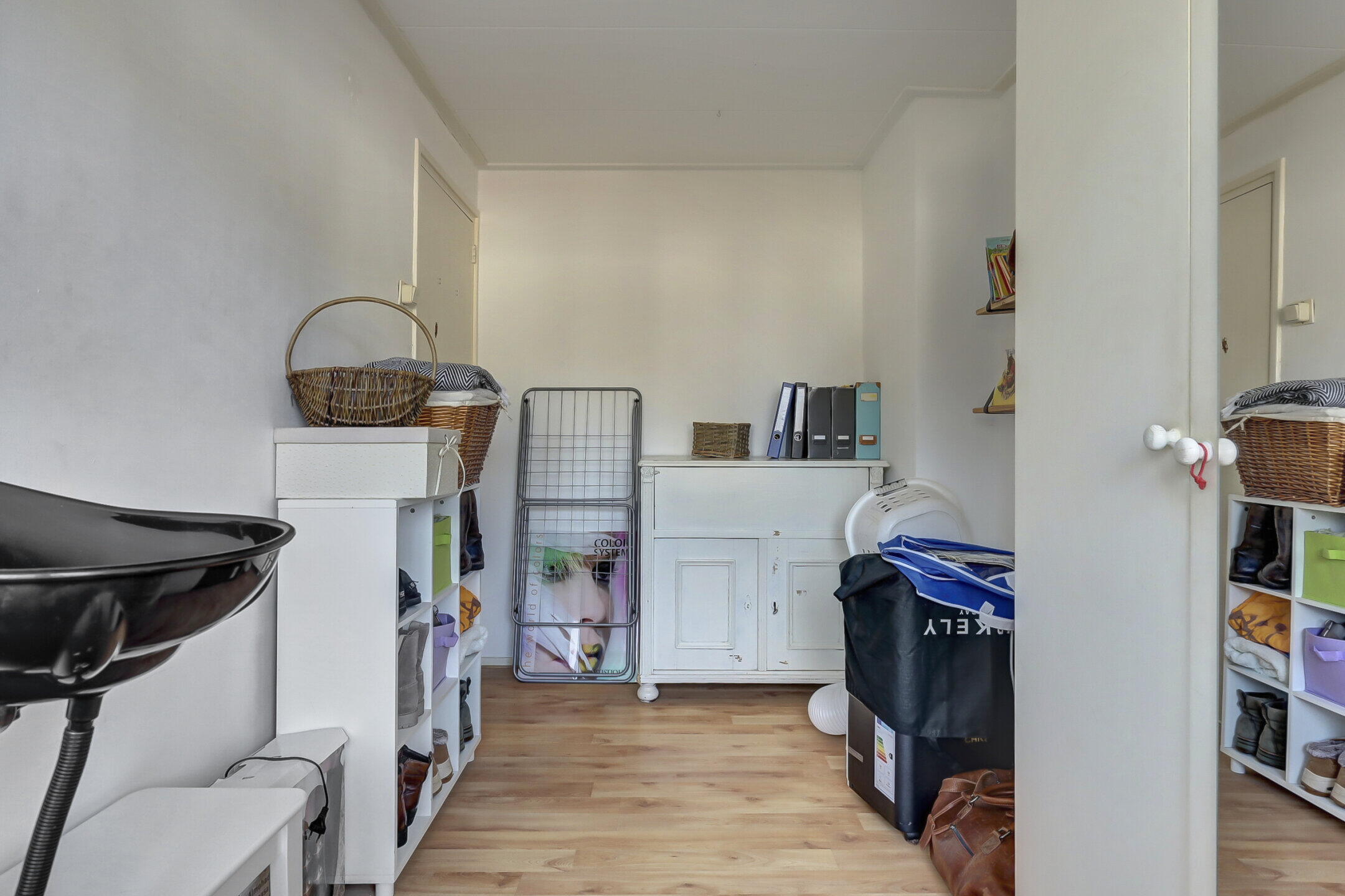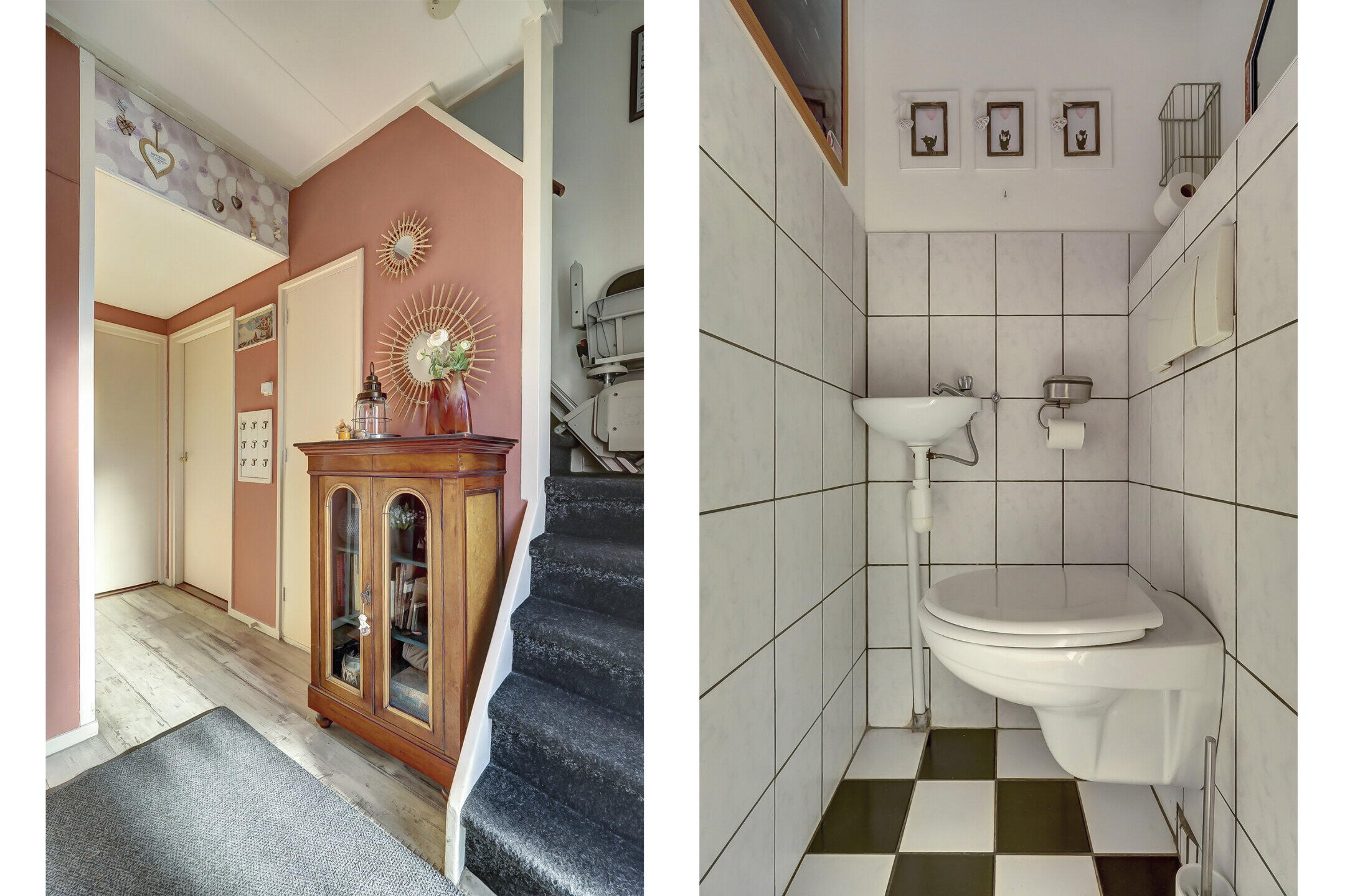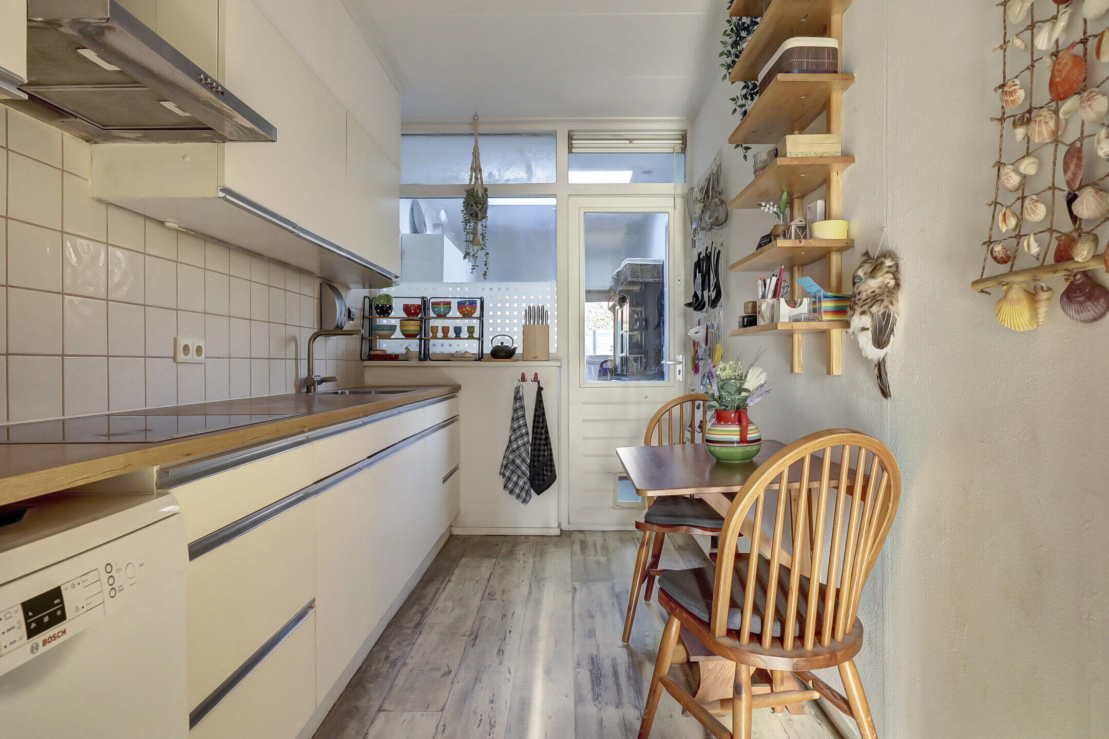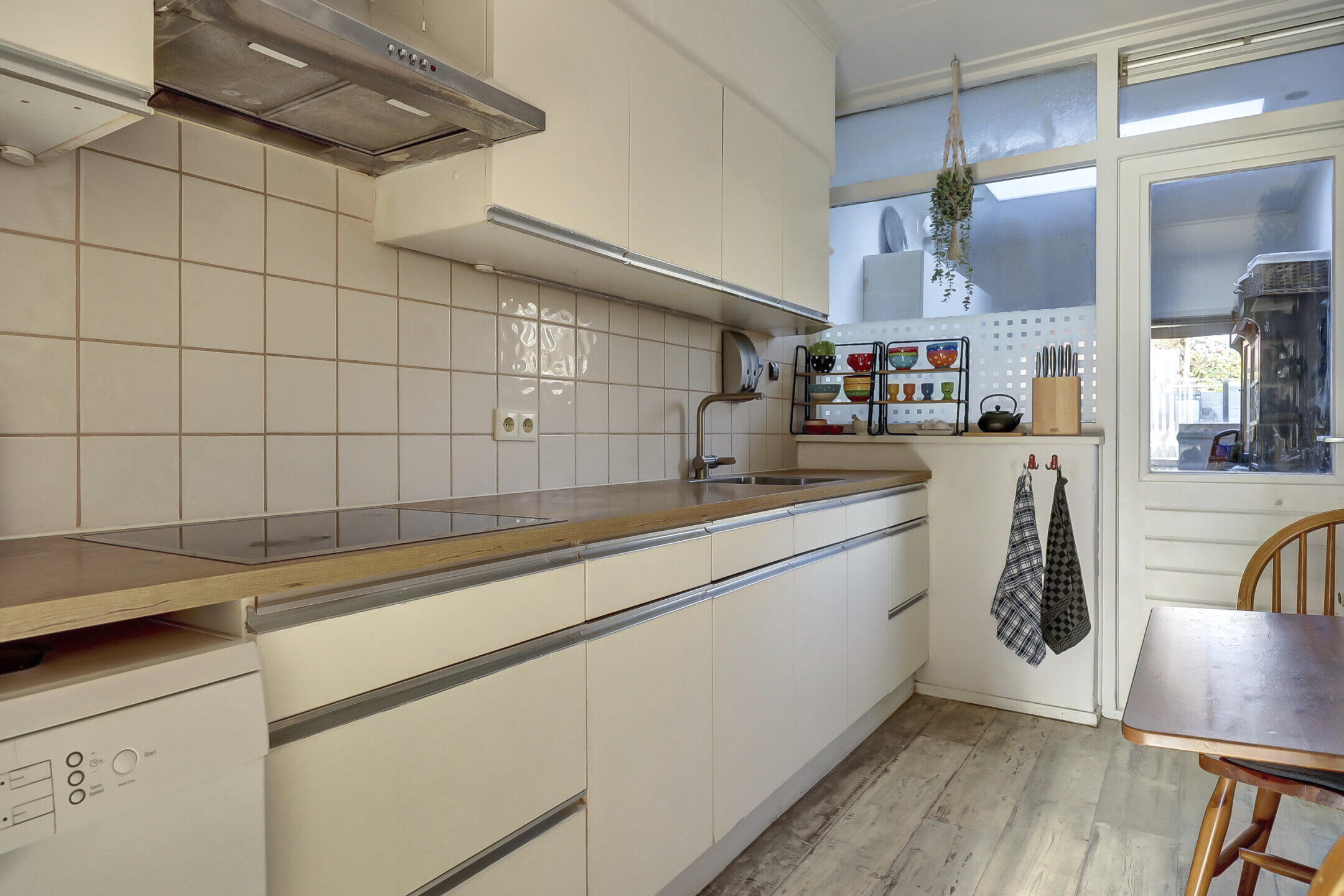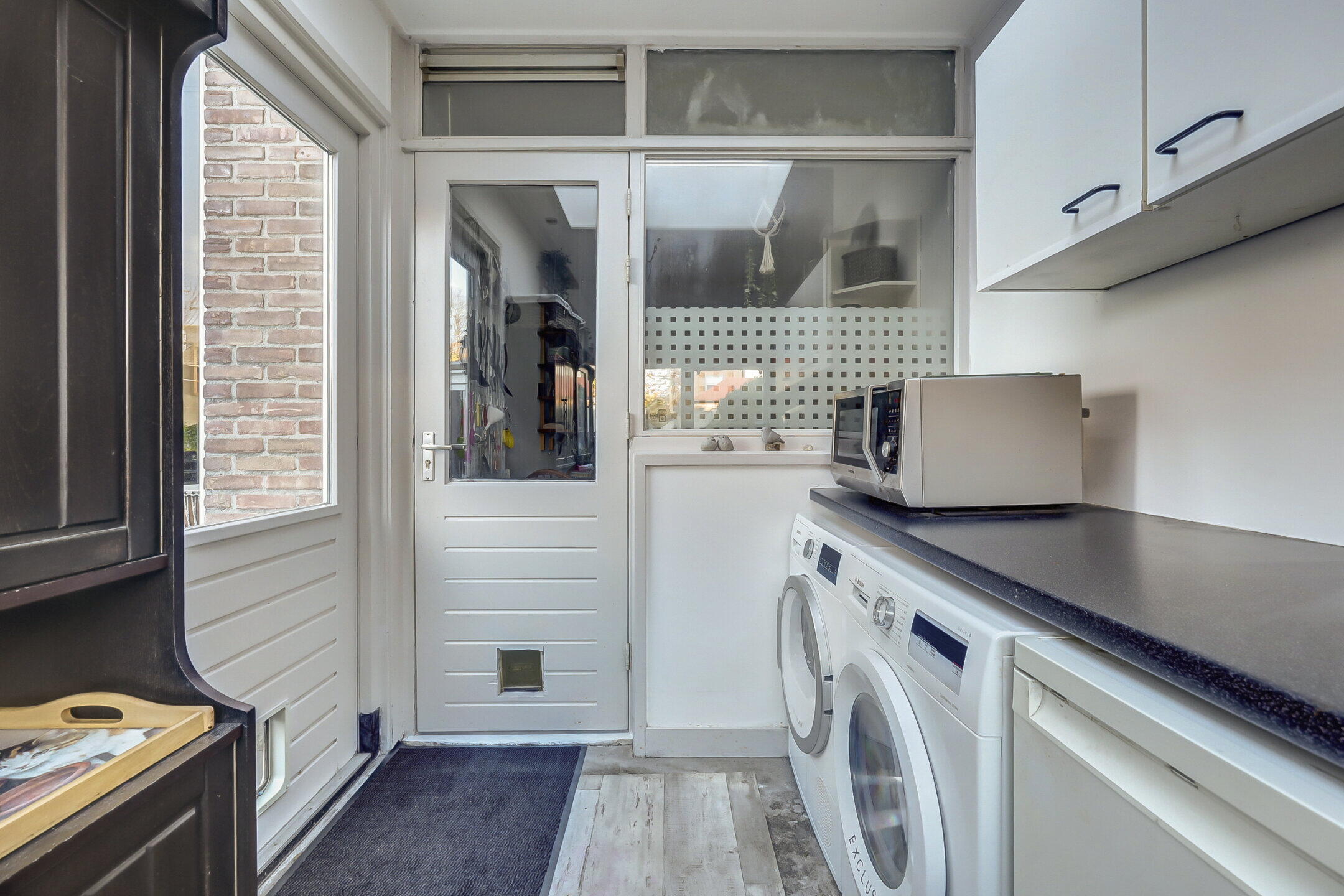 Begane grond: gastvrije hal met meterkast uitgevoerd met nieuwe groepenkast, een verdiepte trapkast en een toiletruimte. Doorzonwoonkamer met een vaste kastruimte en een tuindeur. Dichte keuken met een functionele keukeninrichting en een super-praktische bijkeuken.