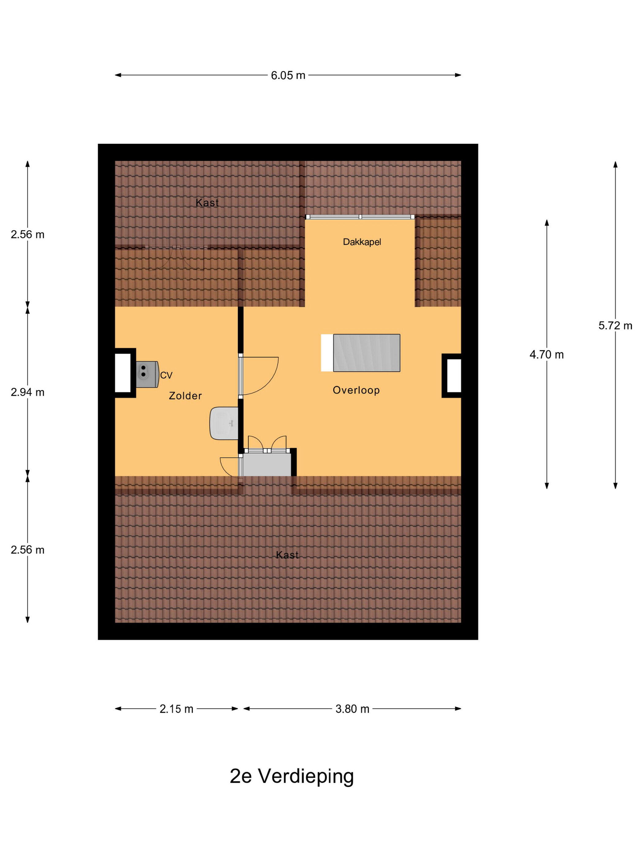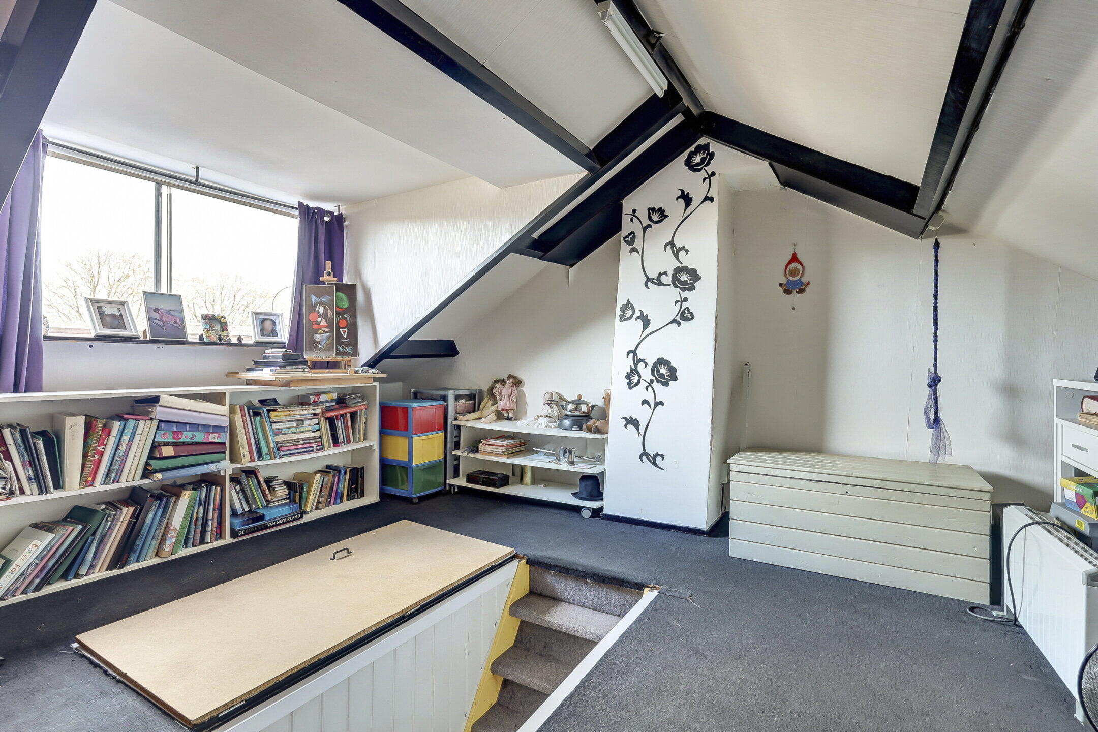 Tweede verdieping: vaste trap naar de tweede verdieping, nu als bergruimte in gebruik maar met volop mogelijkheden om er een vierde slaapkamer van te maken, zeker ook omdat er een dakkapel in het dakvlak aan de achterzijde is opgenomen.