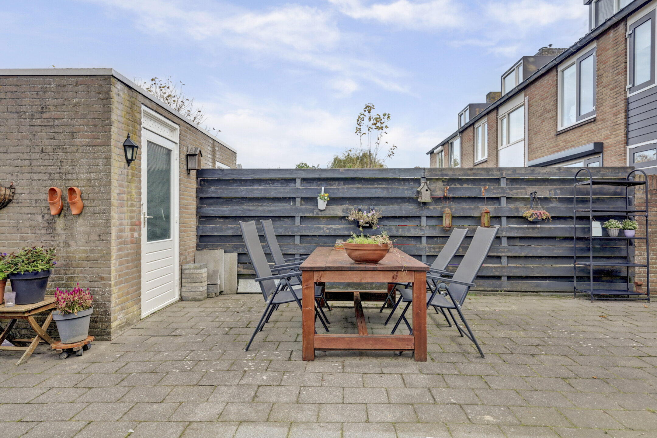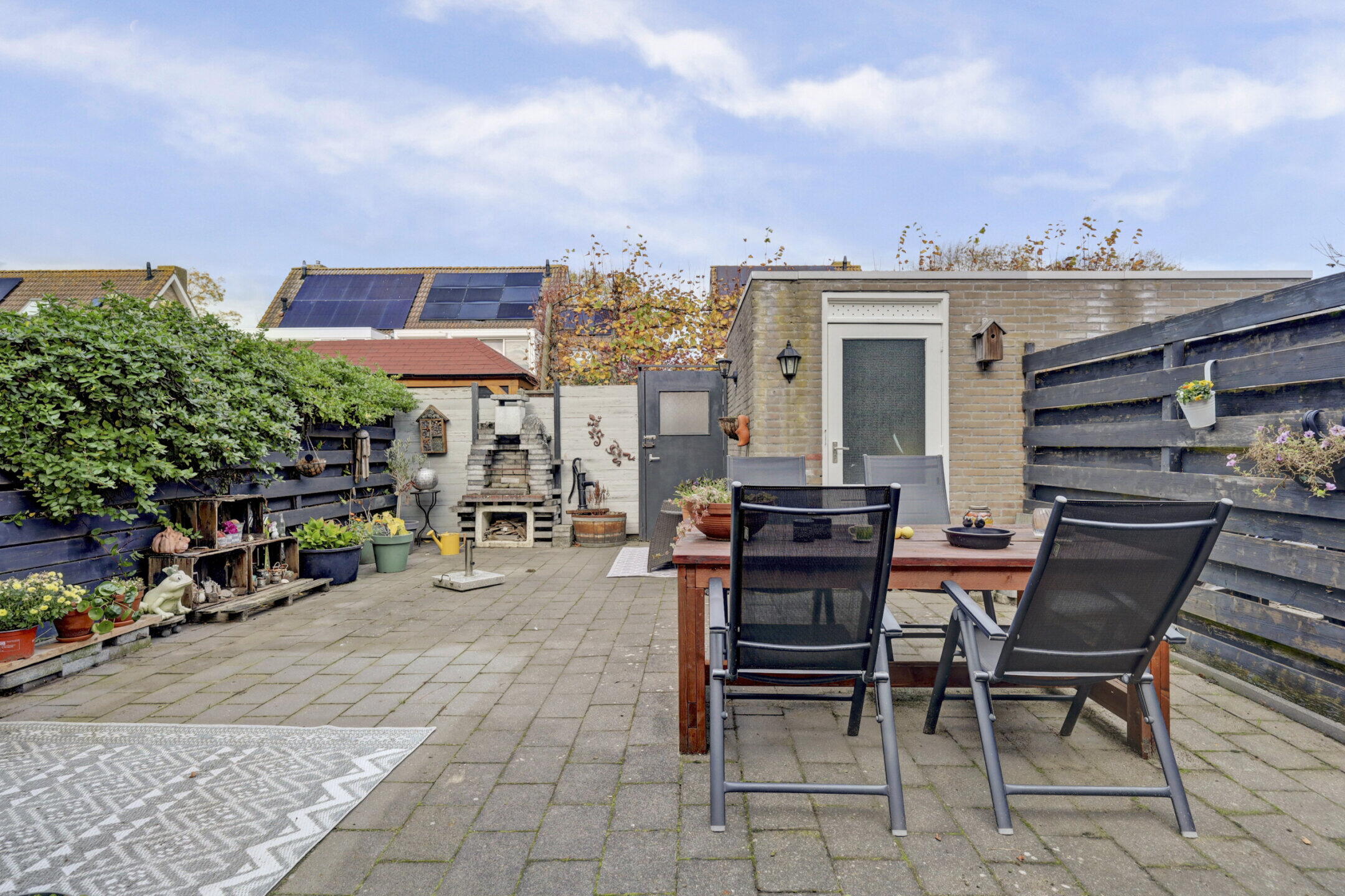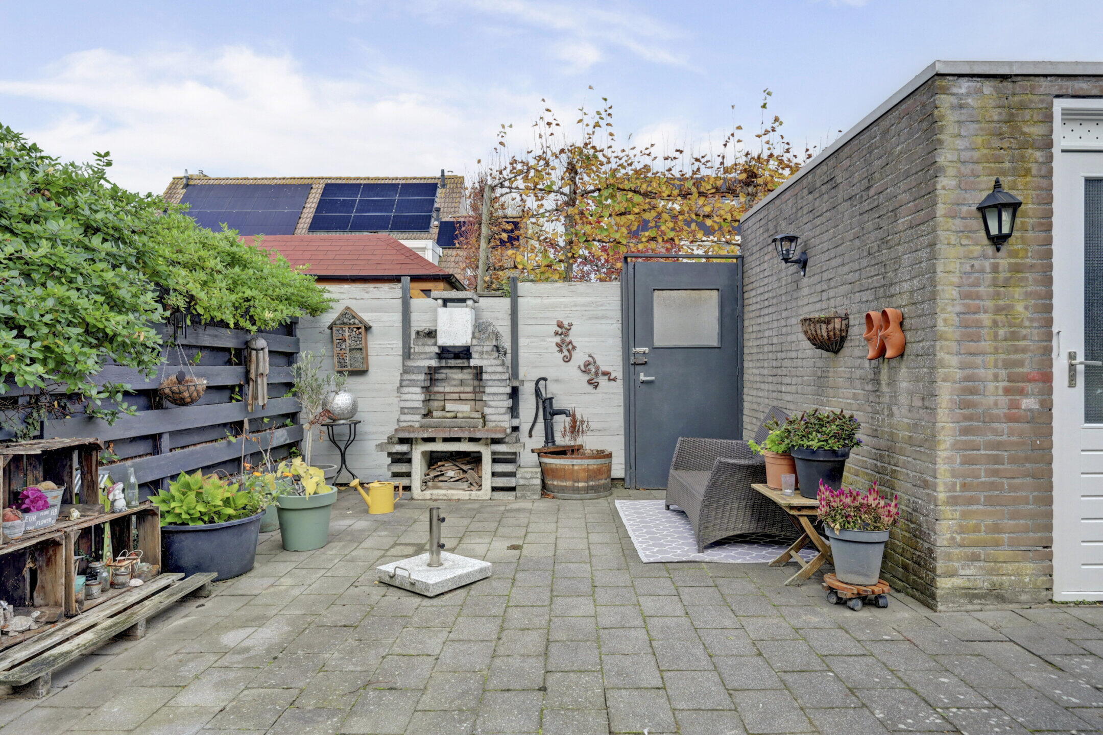 Heerlijke, beste wel diepe achtertuin met een vrijstaand schuurtje en een vrije achterom. De tuin is onderhoudsvrij en is gunstig gelegen ook qua bezonning.