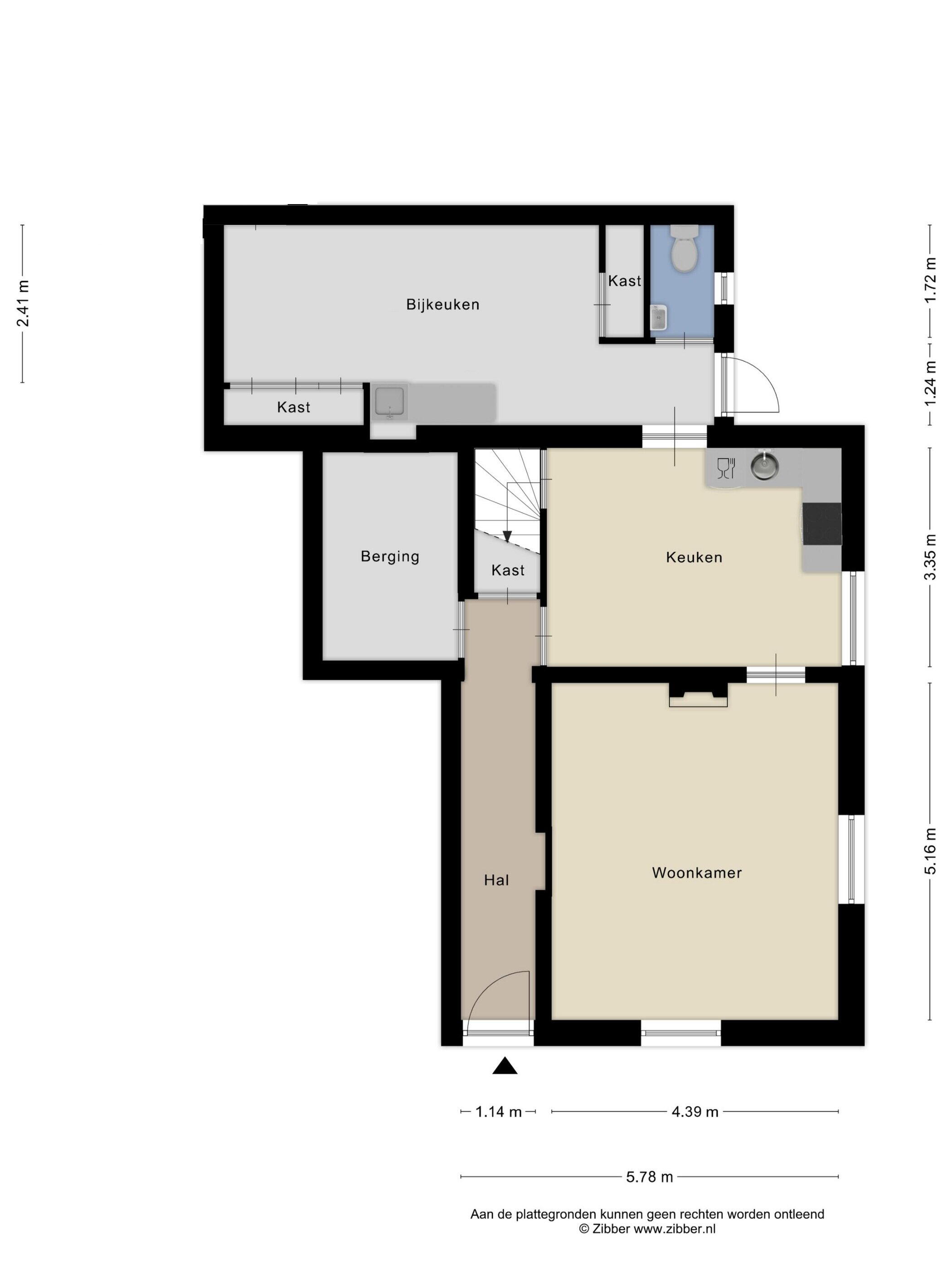 De formele entree met terrazzo vloer en stijlvolle lambrisering van betonemaille geeft toegang tot de woonkamer, woonkeuken en kelder. In de dagelijkse praktijk wordt echter vooral gebruikgemaakt van de zij-entree via de bijkeuken. Deze bijkeuken is ruim en functioneel ingericht en voorzien van aansluitingen voor wasmachine en droger, een vernieuwde meterkast, de cv-opstelling en een toiletruimte.