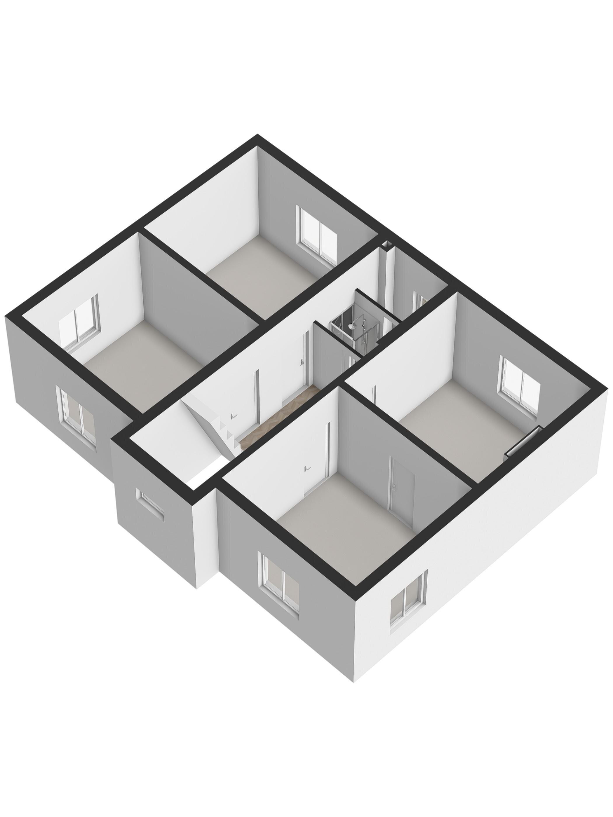 Overloop, tweede badkamer met douche en toilet, cv-ruimte en wasmachineaansluiting, plus: