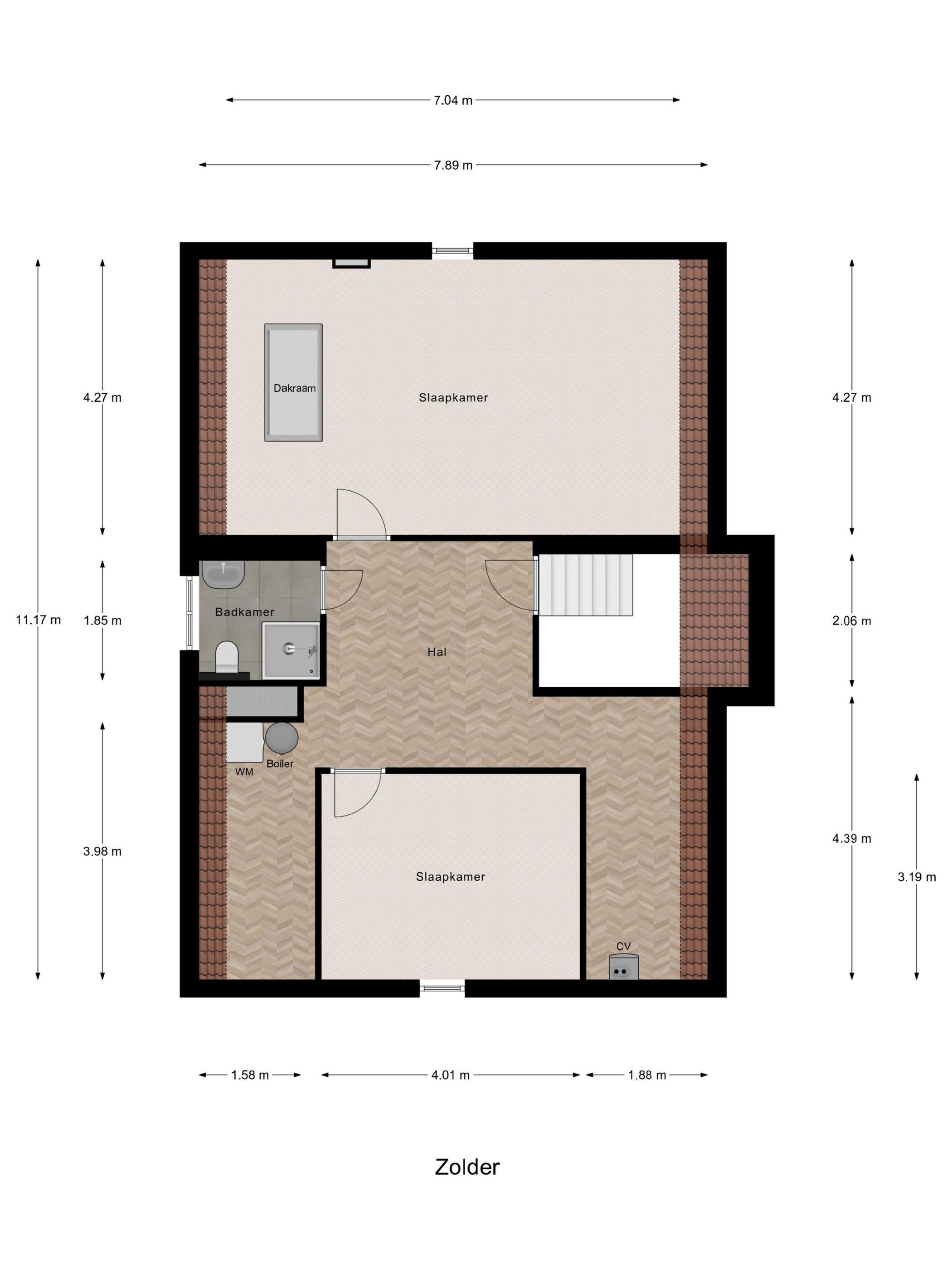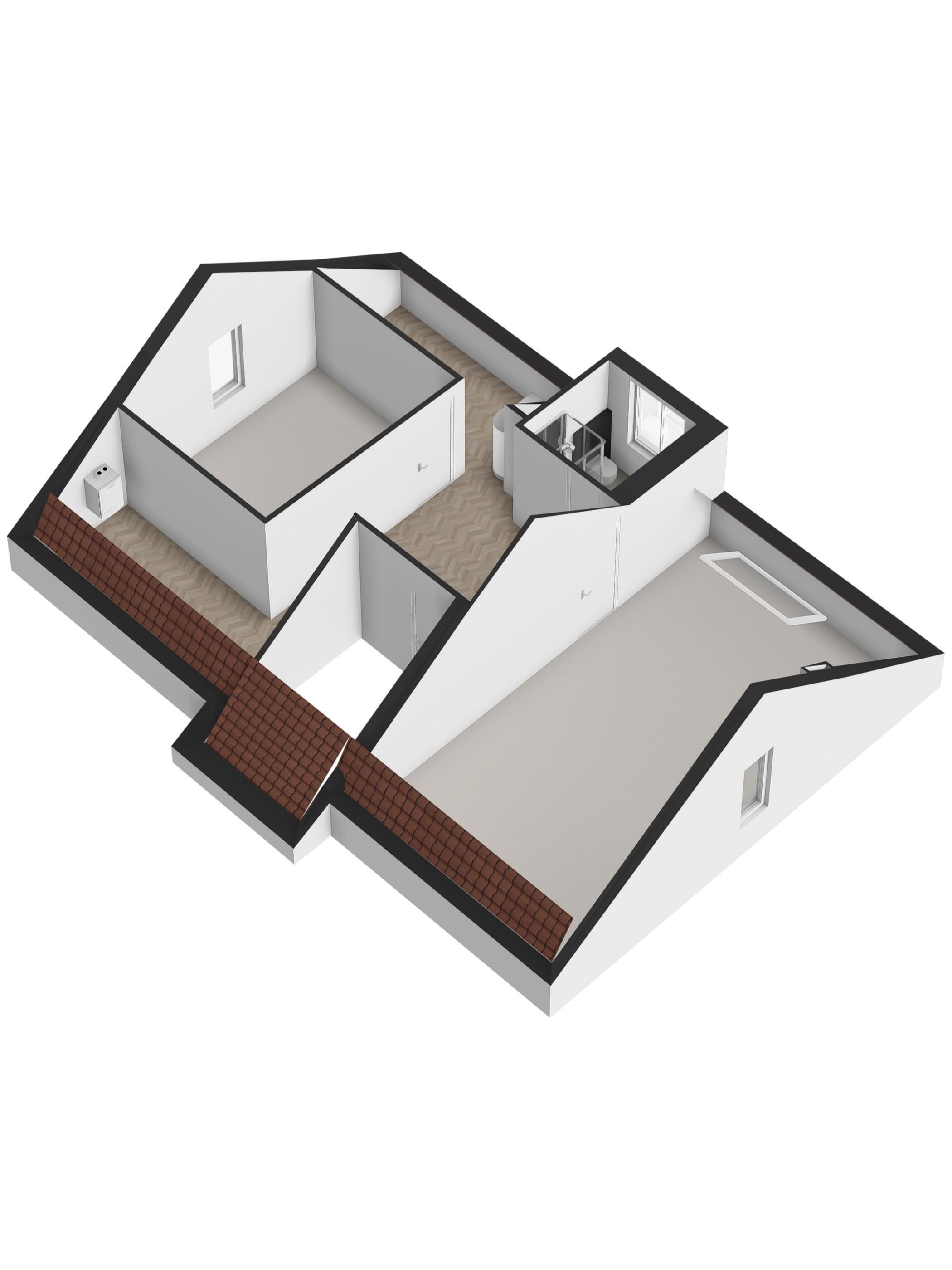 * Slaapkamer 5: ca. 7.04 x 4.27 m met dakraam