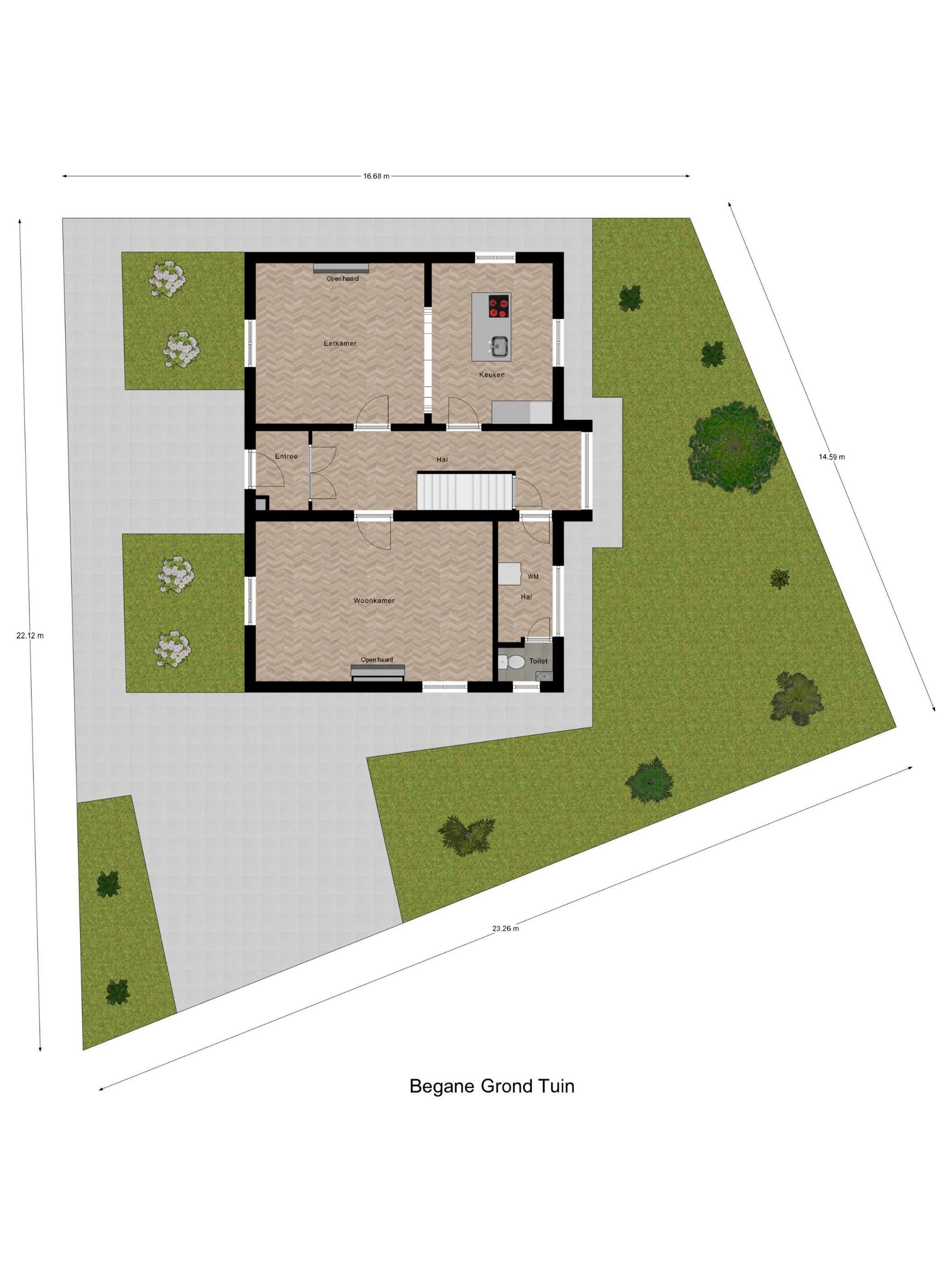 Fraai aangelegde tuin waar een serre een mooie optie zijn.