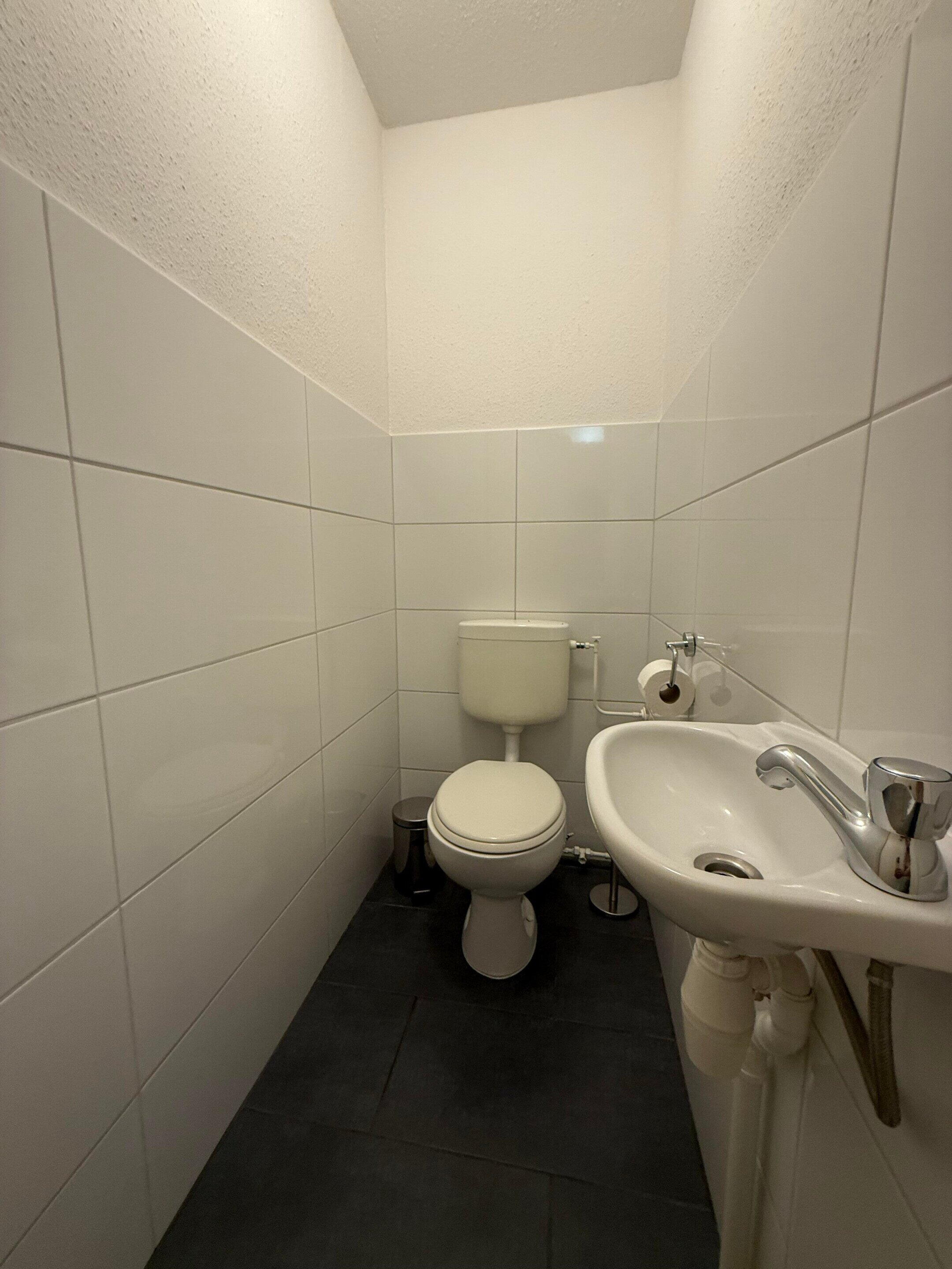 Het appartement beschikt over een toilet met een modern wandcloset, wat zorgt voor een strakke en ruimtebesparende afwerking.