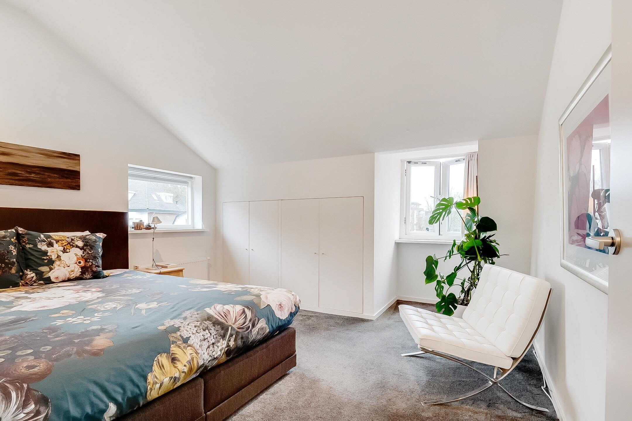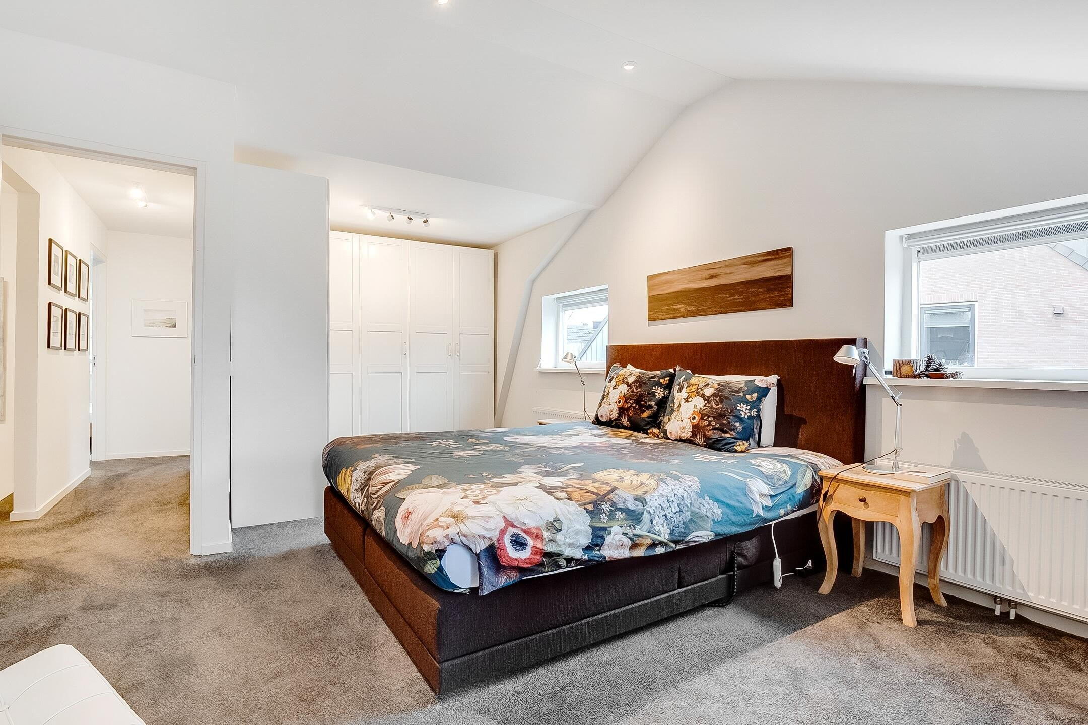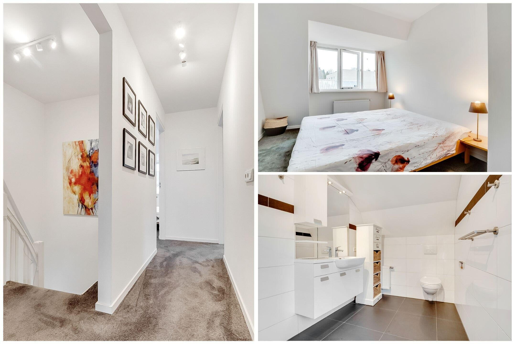 De overloop biedt toegang tot drie zeer ruime slaapkamers, waaronder een royale master bedroom aan de voorzijde. Aan de achterzijde bevinden zich twee volwaardige slaapkamers. De moderne badkamer is stijlvol uitgevoerd en voorzien van een inloopdouche en toilet.