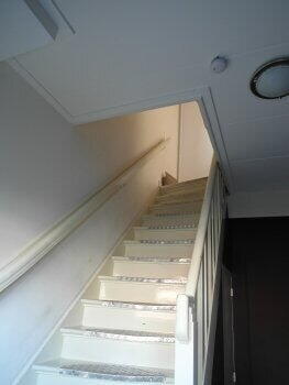 Entree begane grond, hal, kleine stahoge droge kelderruimte, vaste trap naar 1e verdieping, overloop met toegang naar het zonnige balkon, ruime lichte woonkamer met moderne keuken. Vaste trap naar 2e verdieping, badkamer voorzien van douche, een tweetal slaapkamers.