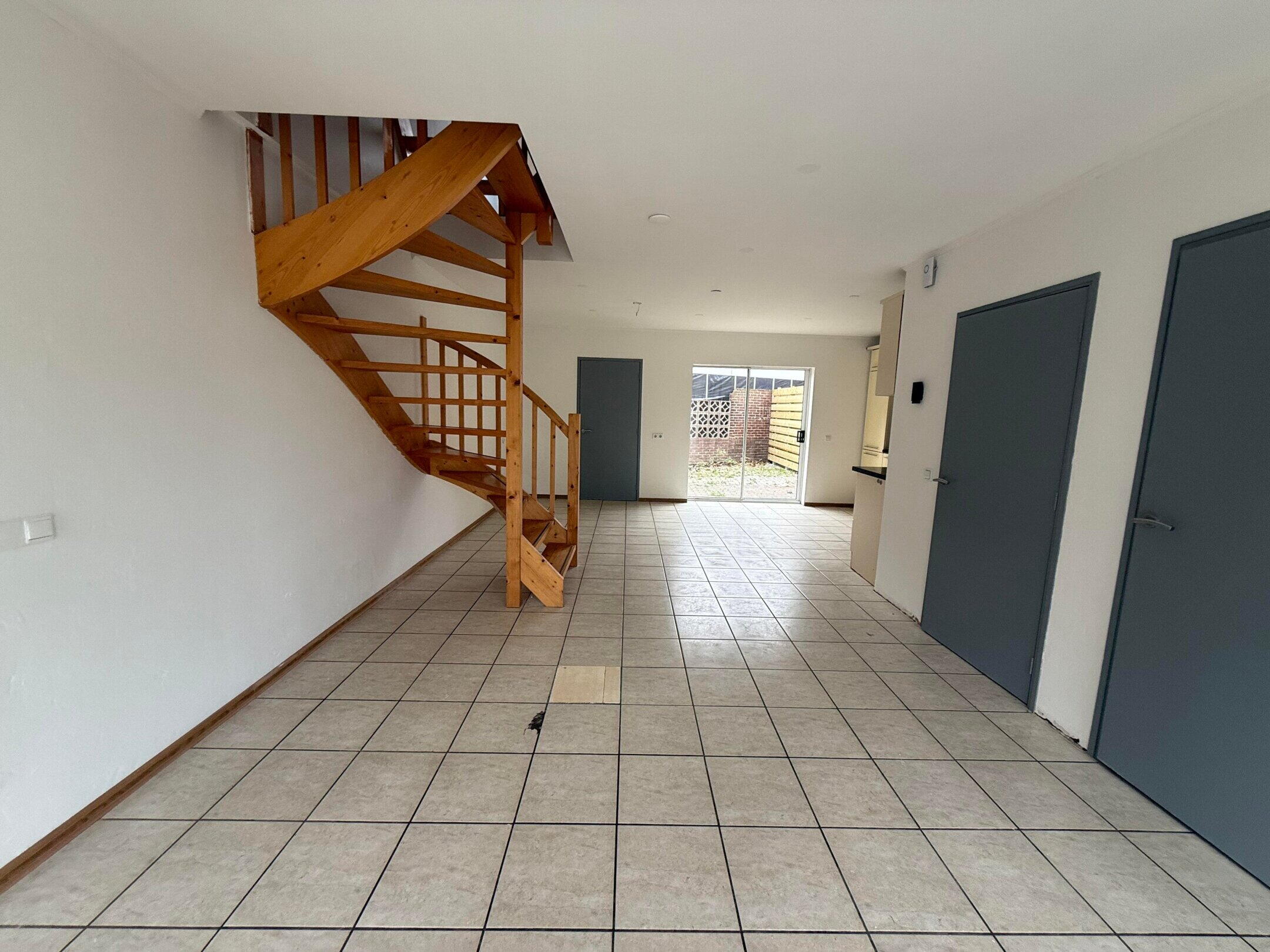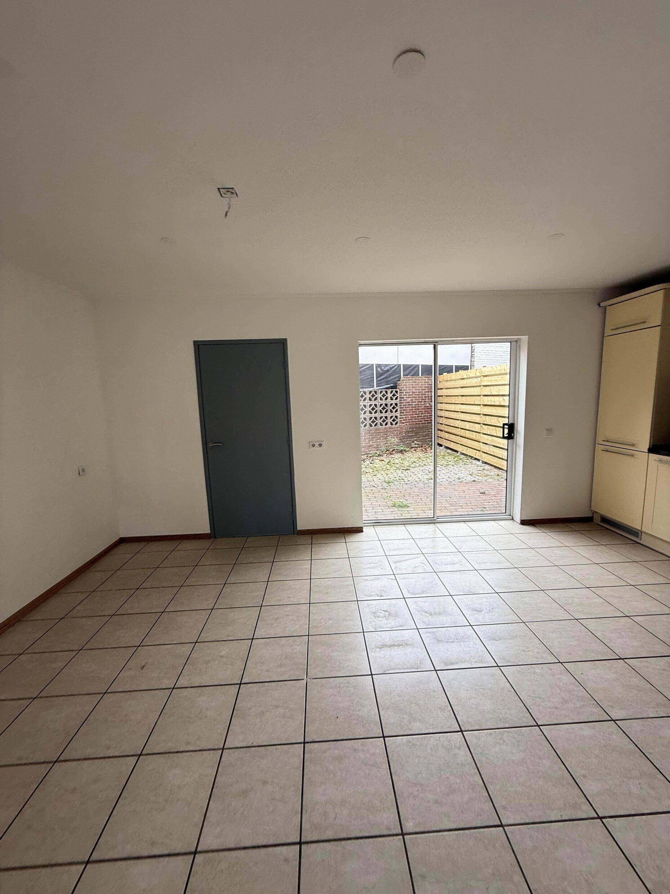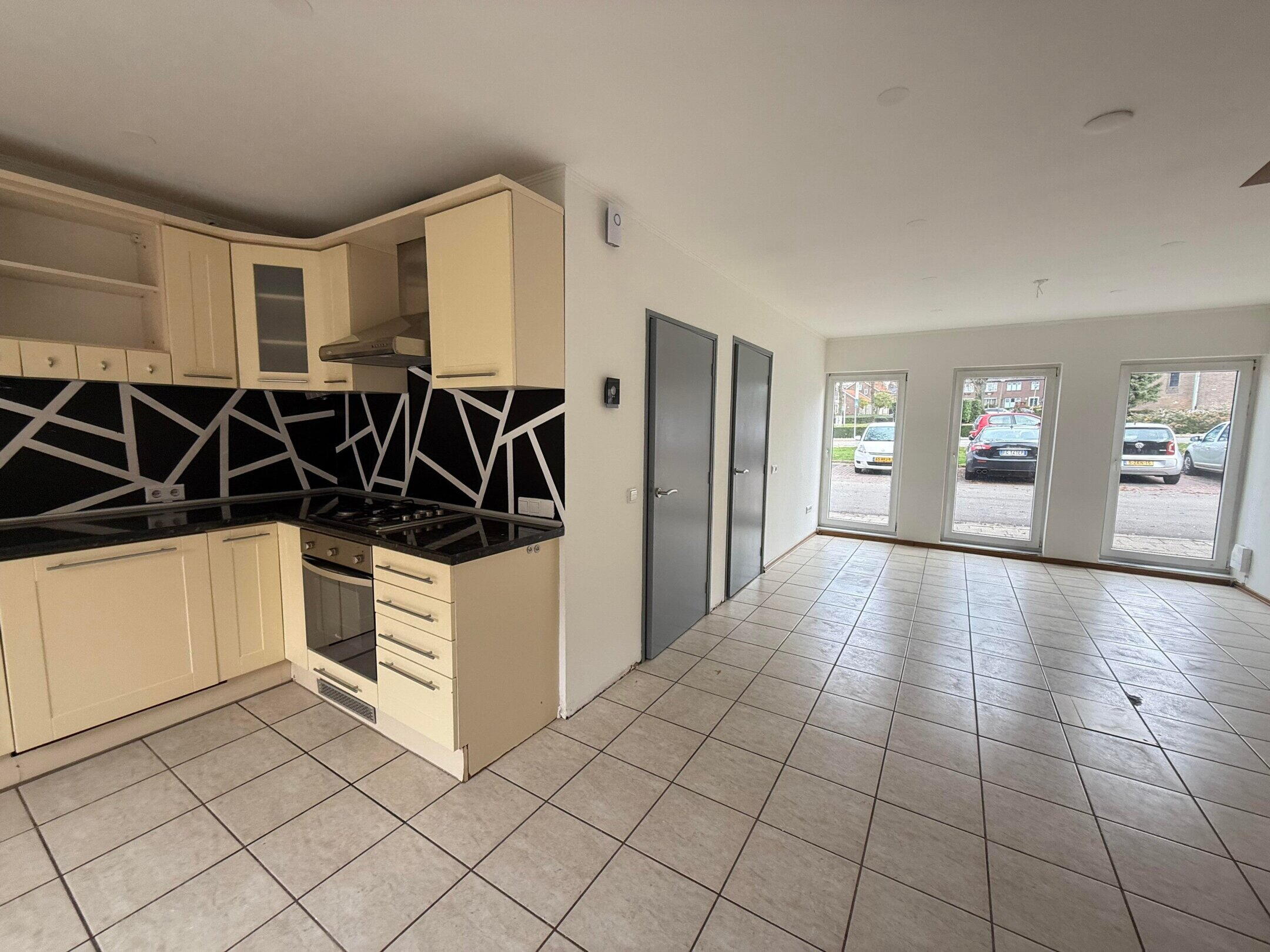 Via de entree komt u in de lichte woonkamer met **vloerverwarming** en een tegelvloer. De open keuken is uitgerust met diverse inbouwapparaten, waaronder een gaskookplaat, oven, afzuigkap, koelkast en vaatwasser. Vanuit de keuken heeft u via de schuifpui toegang tot de **onderhoudsarme patiotuin** met een ruime **berging** en nieuwe houten erfafscheiding.