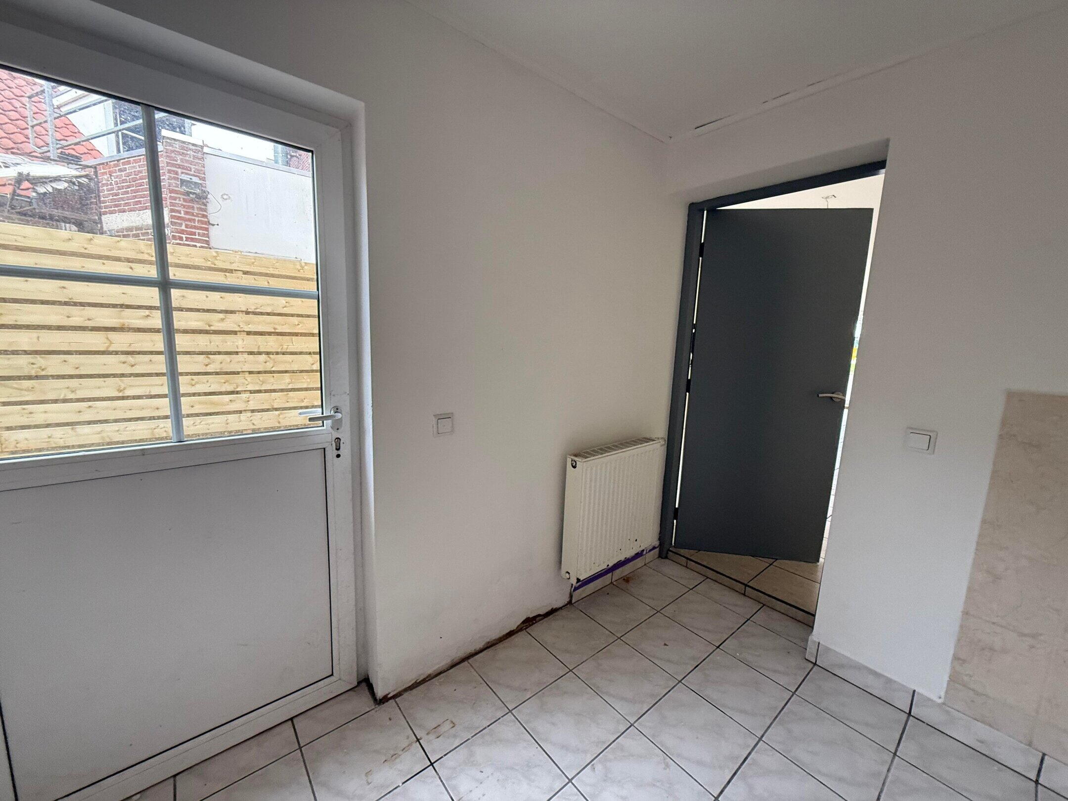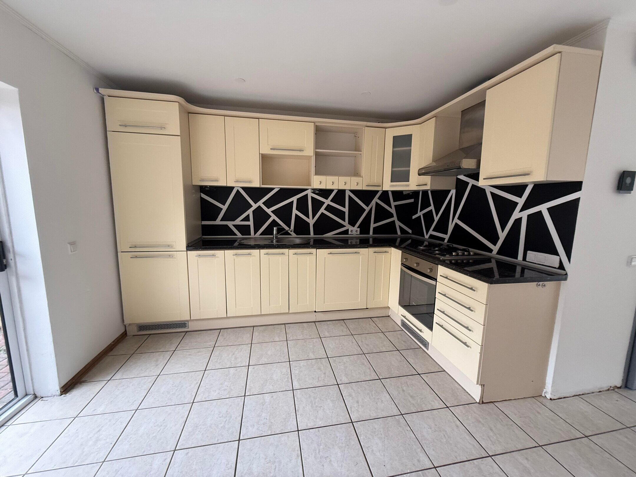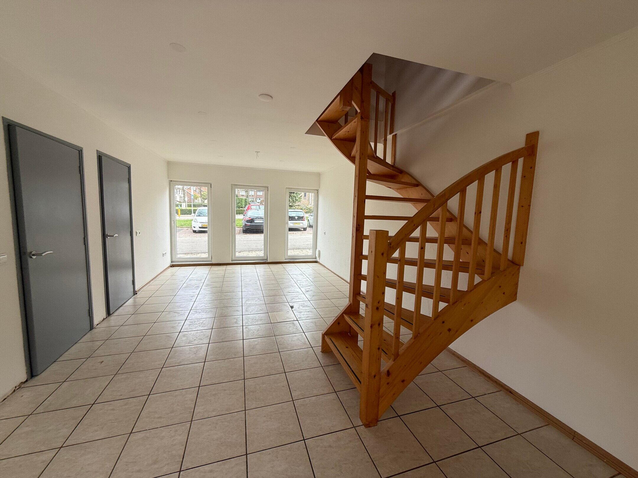 Via de entree komt u in de lichte woonkamer met **vloerverwarming** en een tegelvloer. De open keuken is uitgerust met diverse inbouwapparaten, waaronder een gaskookplaat, oven, afzuigkap, koelkast en vaatwasser. Vanuit de keuken heeft u via de schuifpui toegang tot de **onderhoudsarme patiotuin** met een ruime **berging** en nieuwe houten erfafscheiding.
