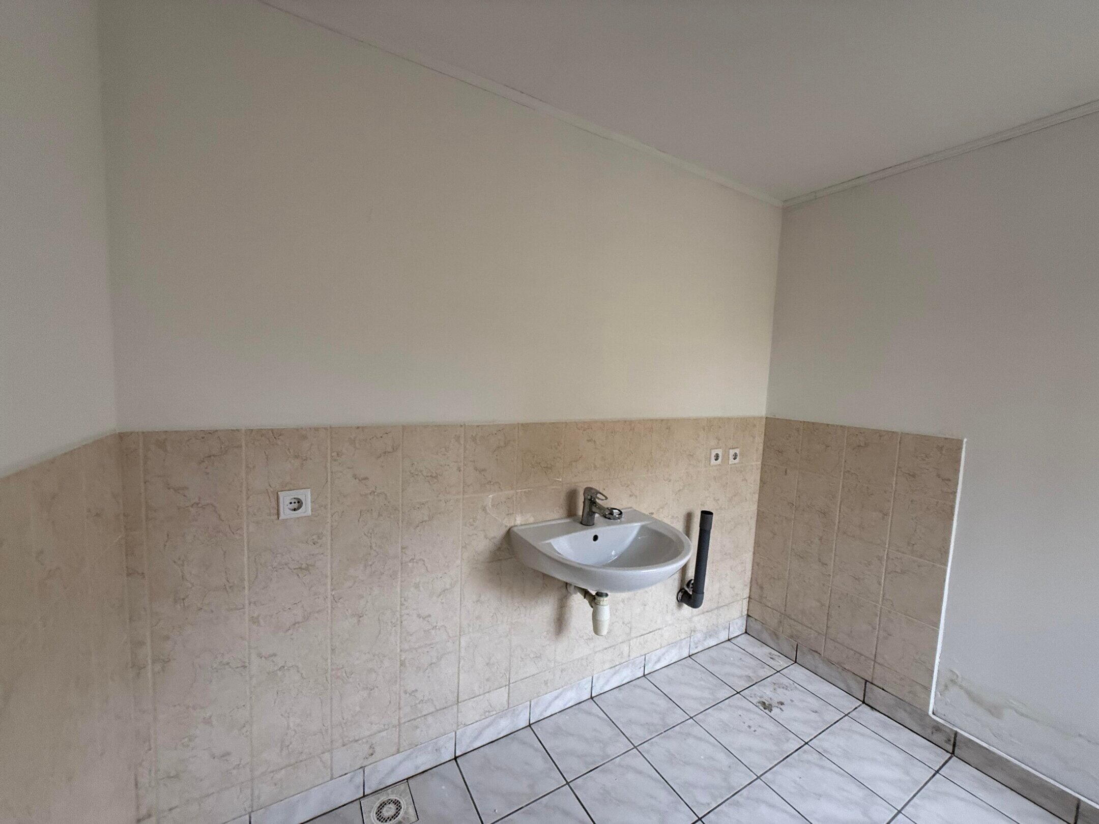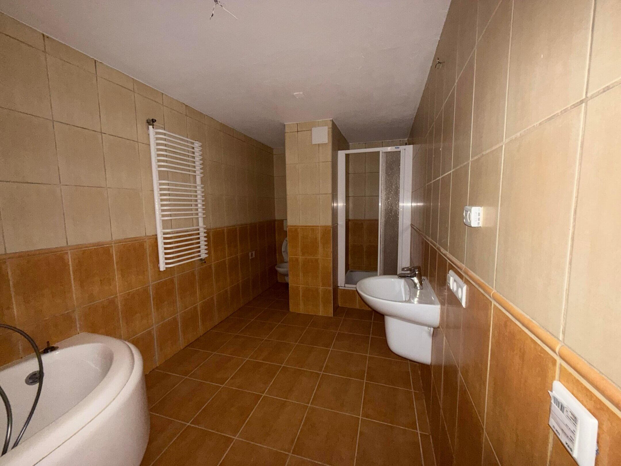 De betegelde **badkamer** is voorzien van een ligbad, wastafel en designradiator.
