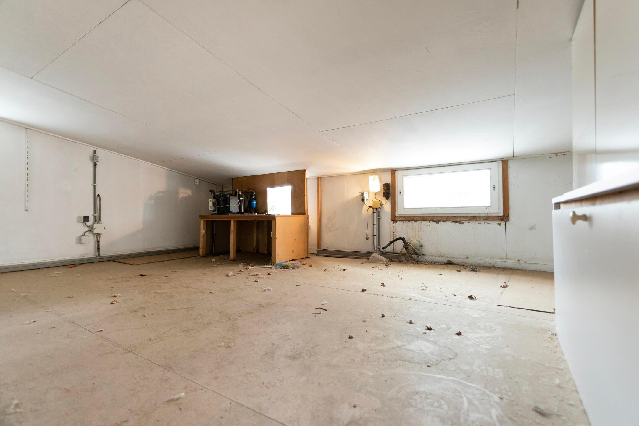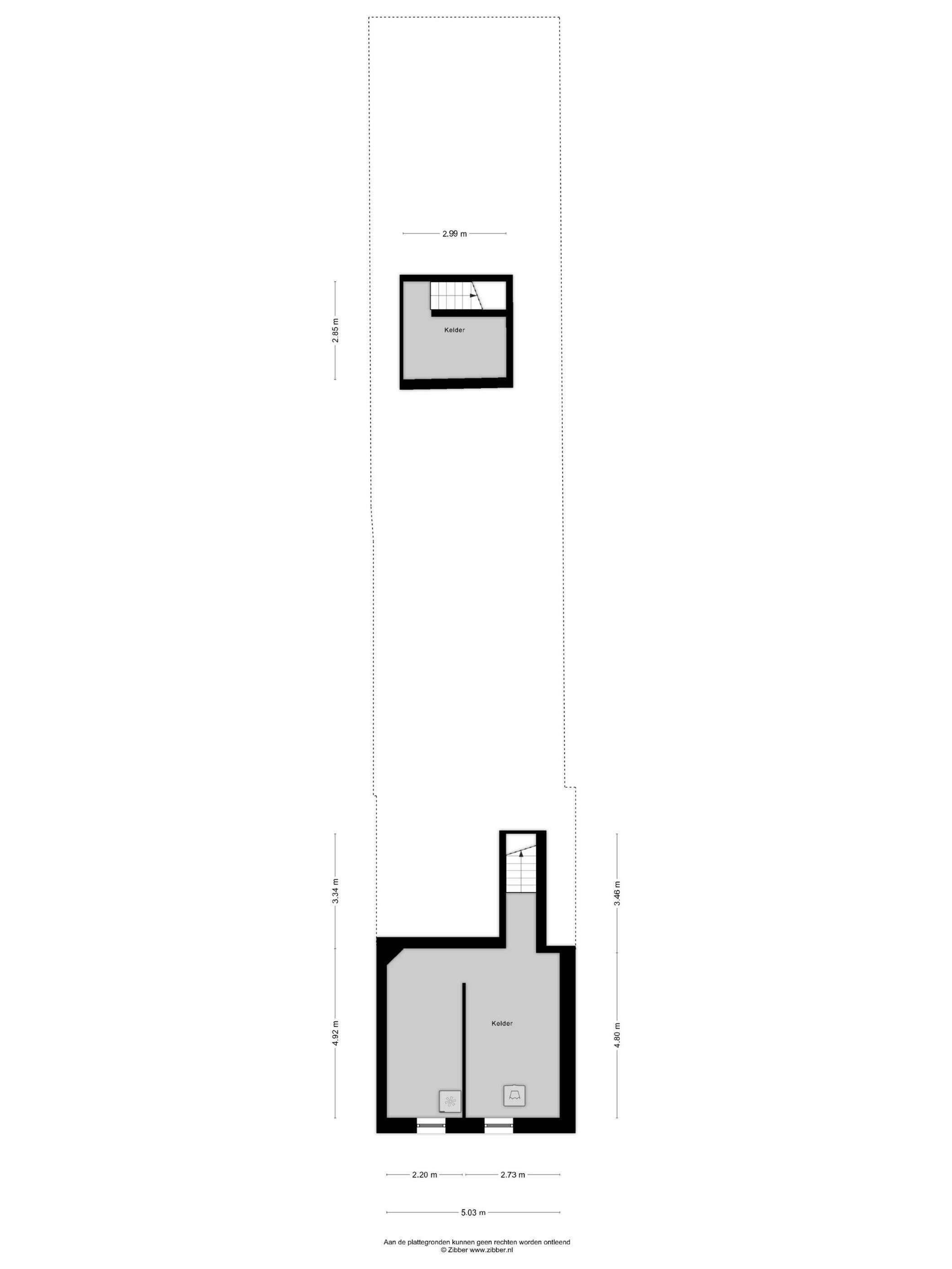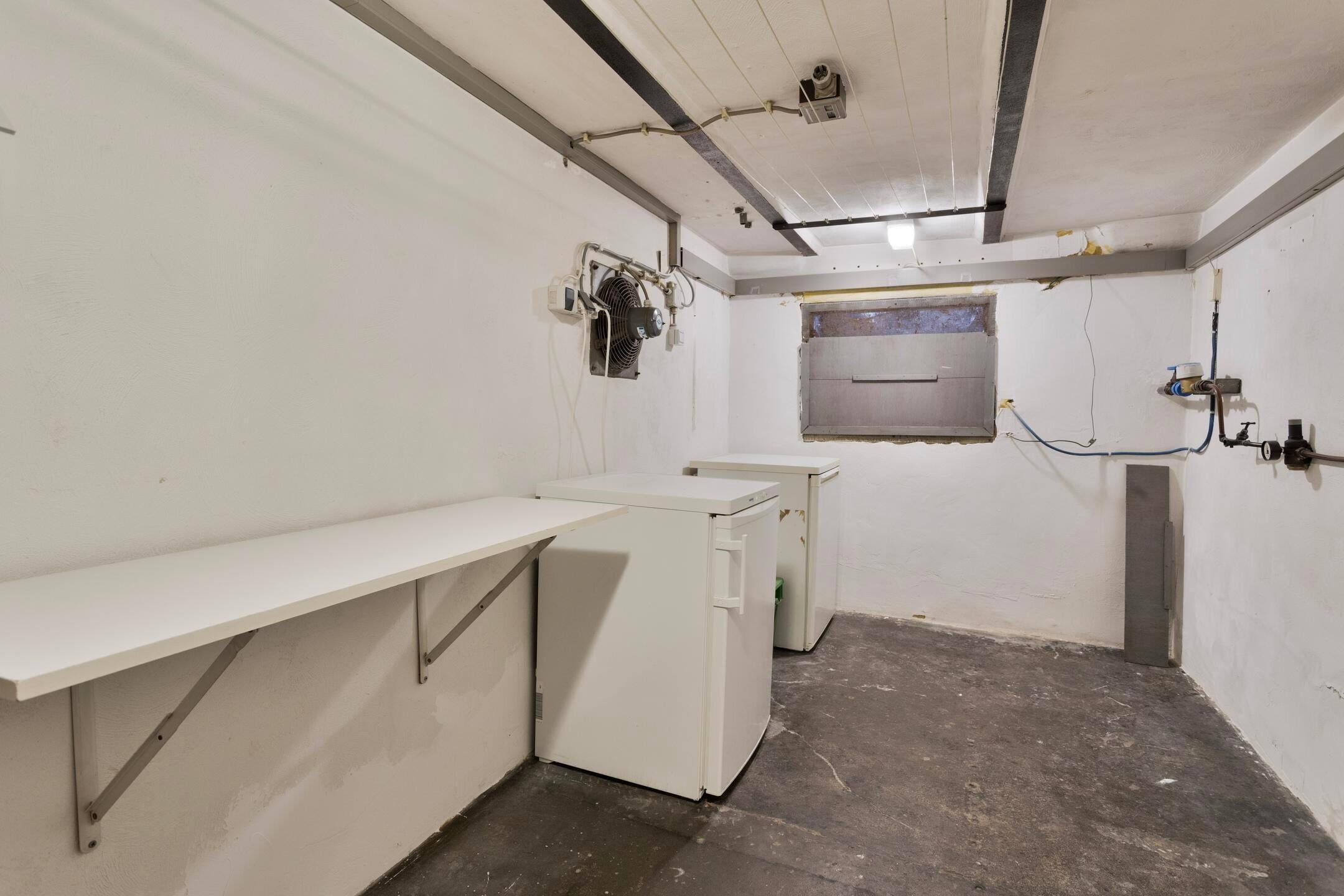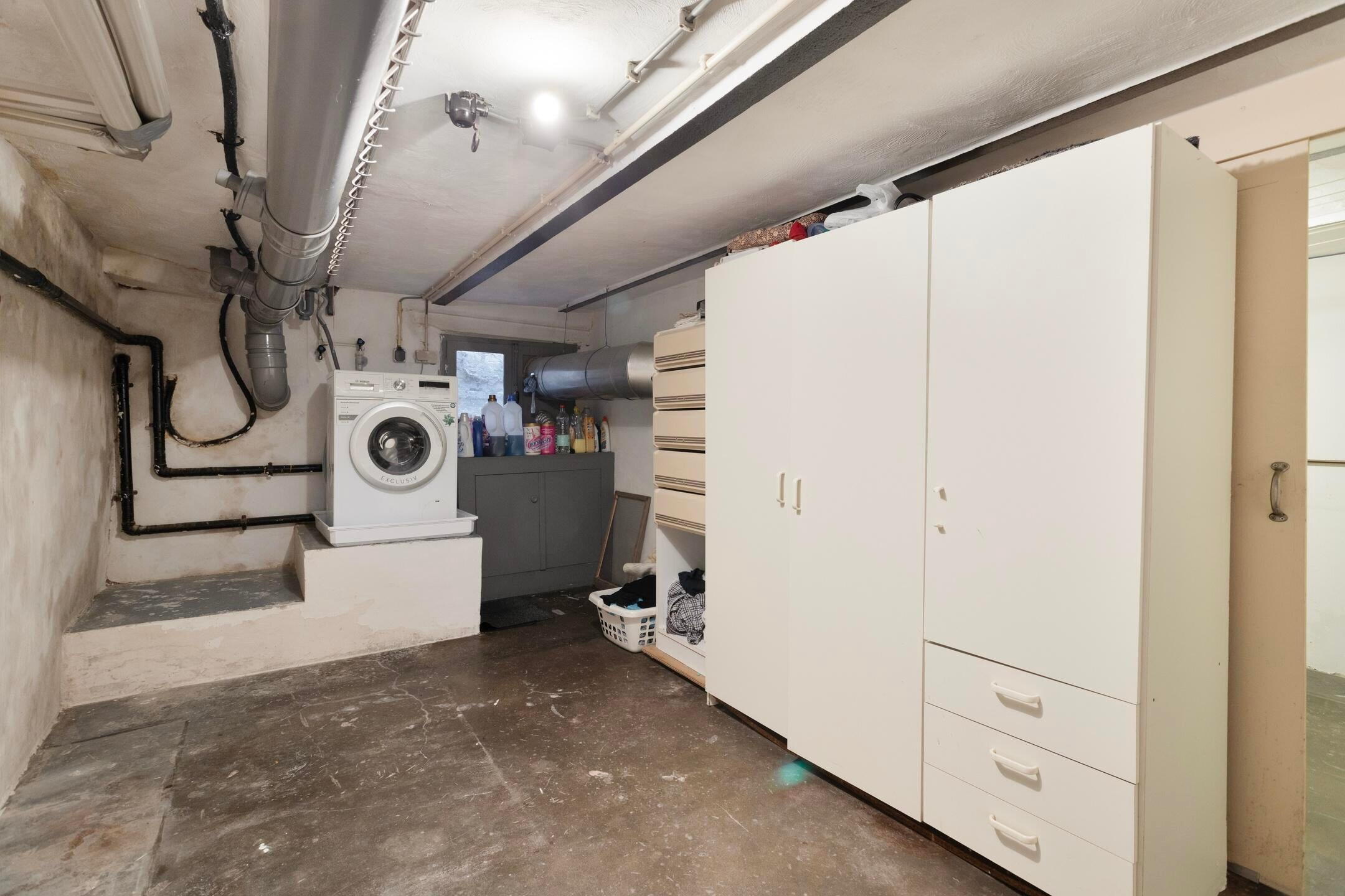 Kelder ingedeeld in 2 ruimtes waar zich tevens de aansluiting voor de wasmachine bevindt.