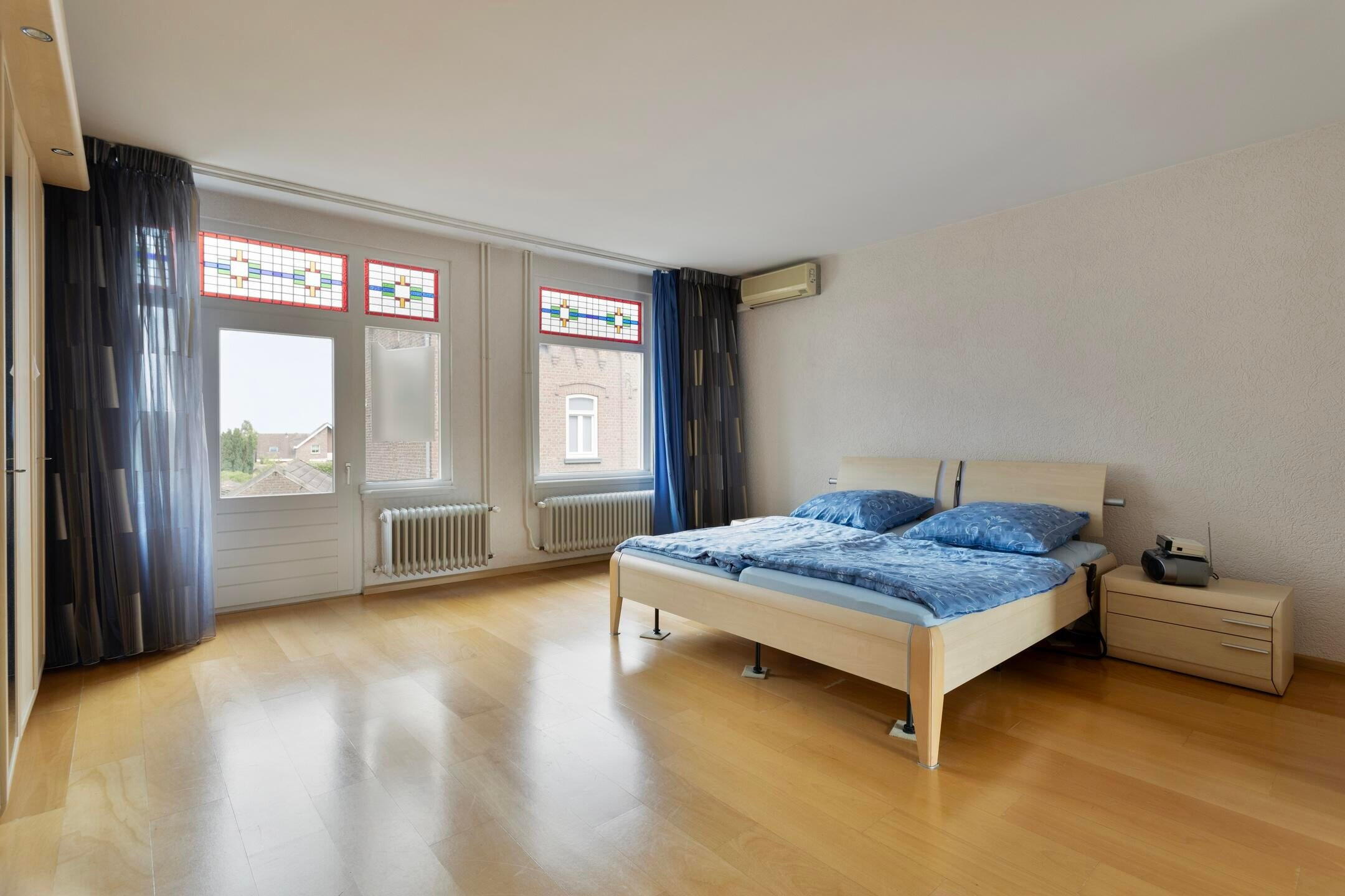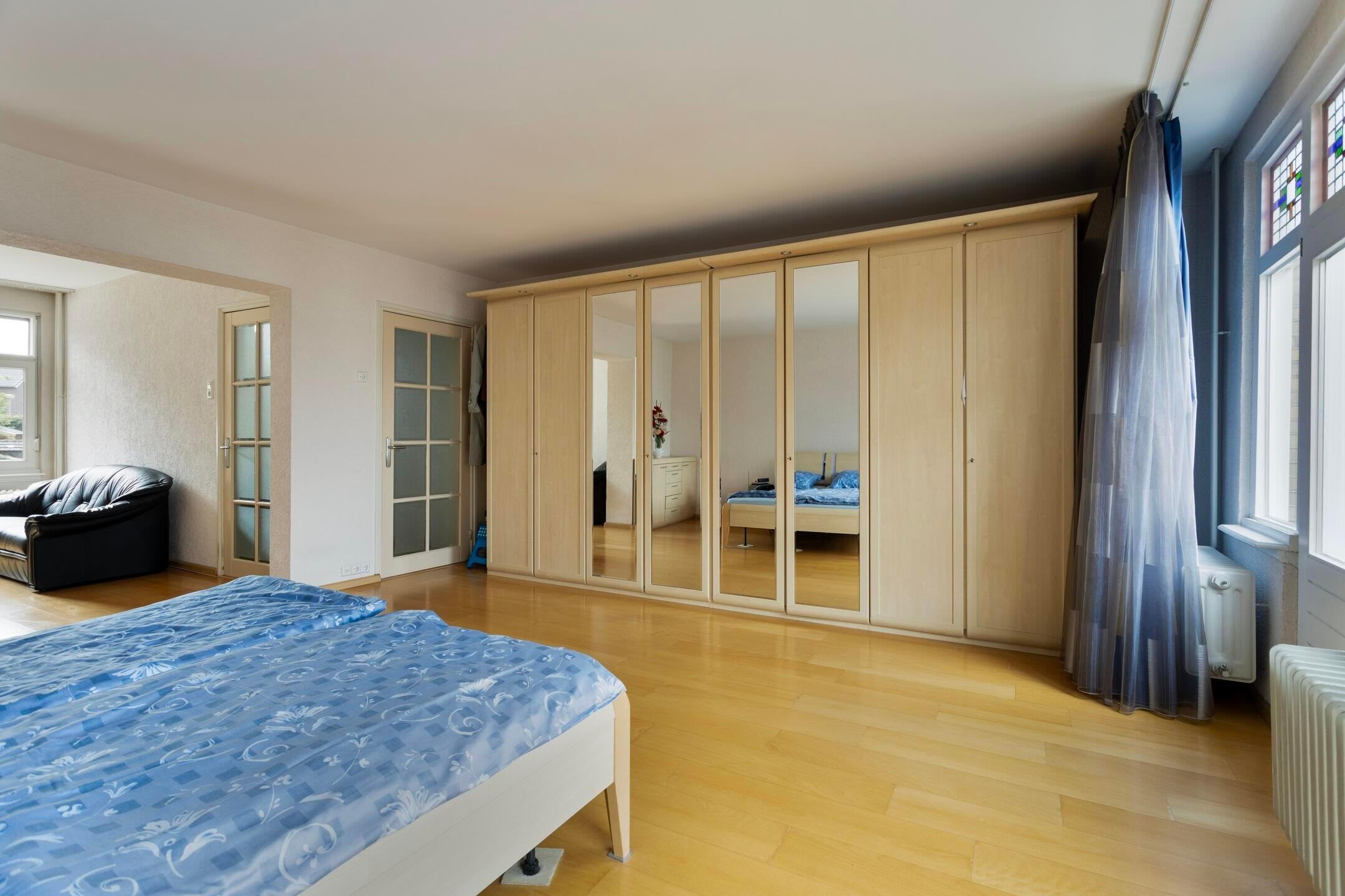 Ruime slaapkamer met 2 raampartijen en een afgesloten ruimte waar zich de CV ketel bevindt.