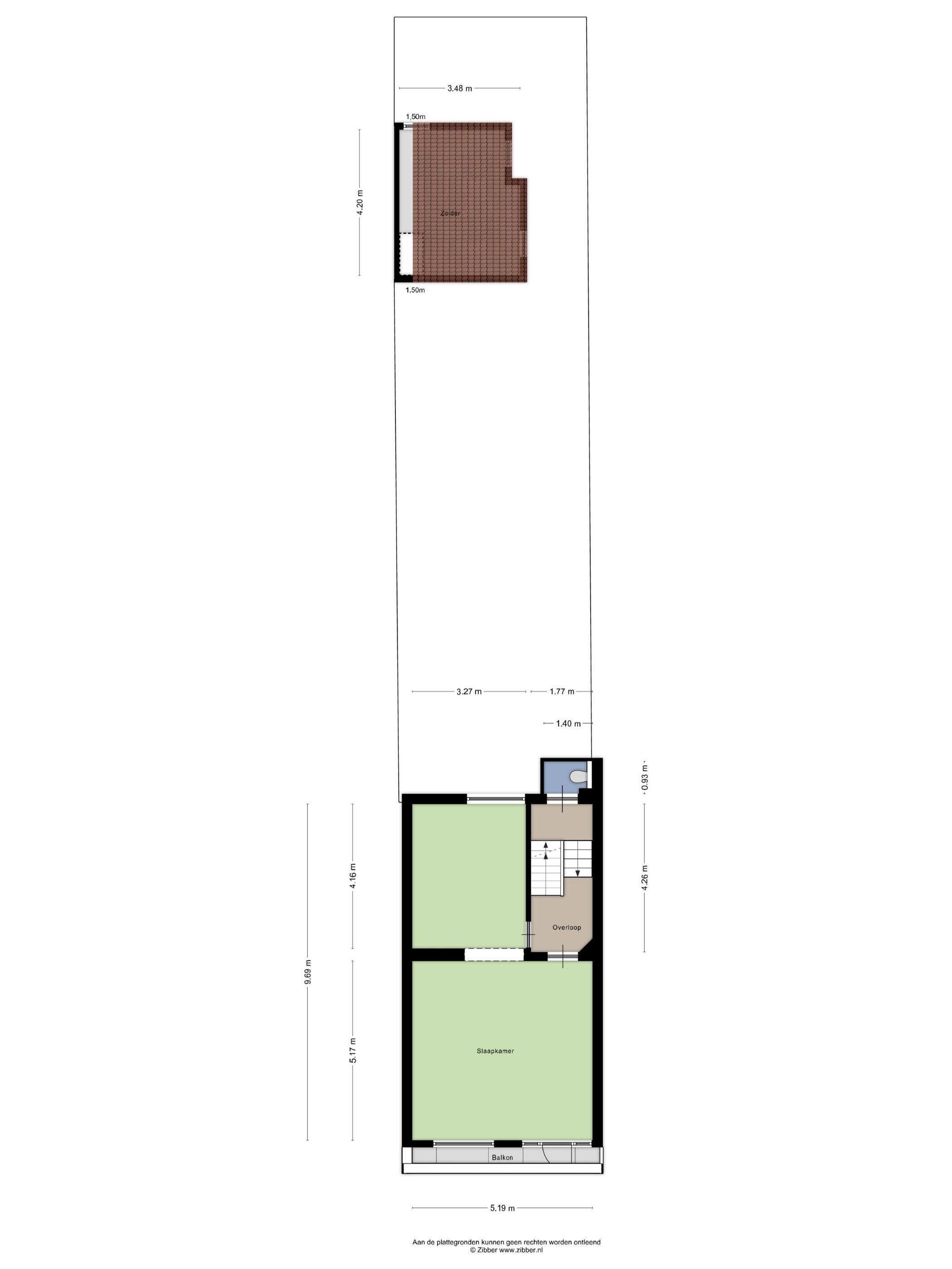 Momenteel is deze ruimte ingedeeld als slaapkamer(5.17 x 5.19 meter) en woonkamer(4.16 x 3.27 meter). De huidge eigenaar heeft de tussenmuur verwijderd. Deze kan relatief makkelijk worden teruggeplaatst.
